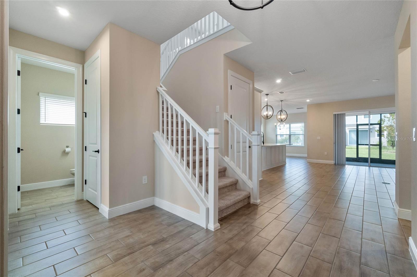 One or more photo(s) has been virtually staged. 5.25% ASSUMABLE RATE MORTGAGE AVAILABLE AS WELL! Welcome to 1352 Silo Dr, a beautiful newer construction home with 5 bedrooms, 3.5 bathrooms, plus an office/den and OVERSIZE UPSTAIRS LOFT! With just over 3,200 SqFt of living area, this home was BUILT IN 2023 and offers many custom features! Let's walk through the home: after walking up the pavered driveway and enter into the front door, you'll immediately notice the large spacious floor plan, WOOD LOOK TILE FLOORING, and PRIVATE OFFICE SPACE! Moving through into the main area, you can find the large great room, spacious GOURMET kitchen complete with oversized QUARTZ COUNTERS, all new upgraded stainless steel appliance, CUSTOM TILE BACKSPLASH, and large walk-in pantry, and additional dining room space. The primary bedroom suite is located on the first floor and offers a huge walk-in shower, soaking tub, dual vanity sinks with quartz counter tops, and generously sized walk-in closet space. The home also has a WHOLE HOUSE WATER FILTRATION SYSTEM with UV and WATER SOFTENER, as well as a RO WATER SYSTEM at the fridge. In addition, the backyard has a screened-in patio, offering a great outdoor living space! Moving on upstairs, the first room that you'll enter is the 19'x15' BONUS ROOM/LOFT, perfect for additional lounge space and game room! All bathrooms upstairs offer tiled showers with quartz counter vanities. The other 4 bedrooms upstairs offer an ample space for privacy. The HOA fee includes fiber optic cable! Close to major highways providing easy access to Orlando International Airport, the theme parks, Downtown Orlando, and the incredibly popular Lake Nona region which offers some of the best restaurants, shopping, and events in Orlando. Call now to schedule your private showing!