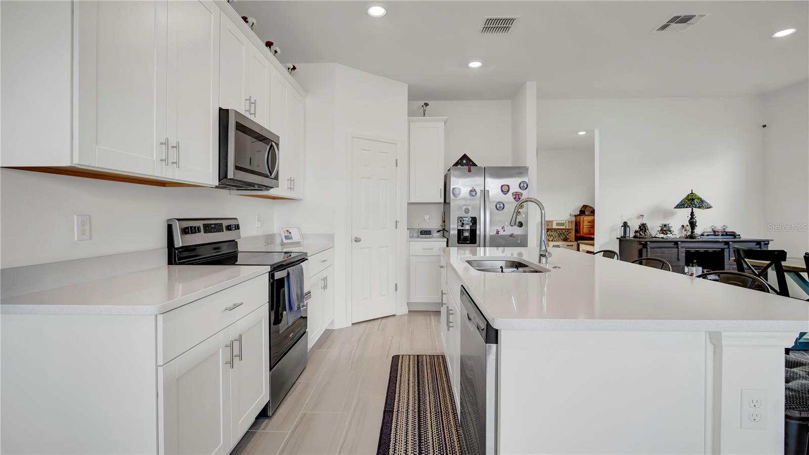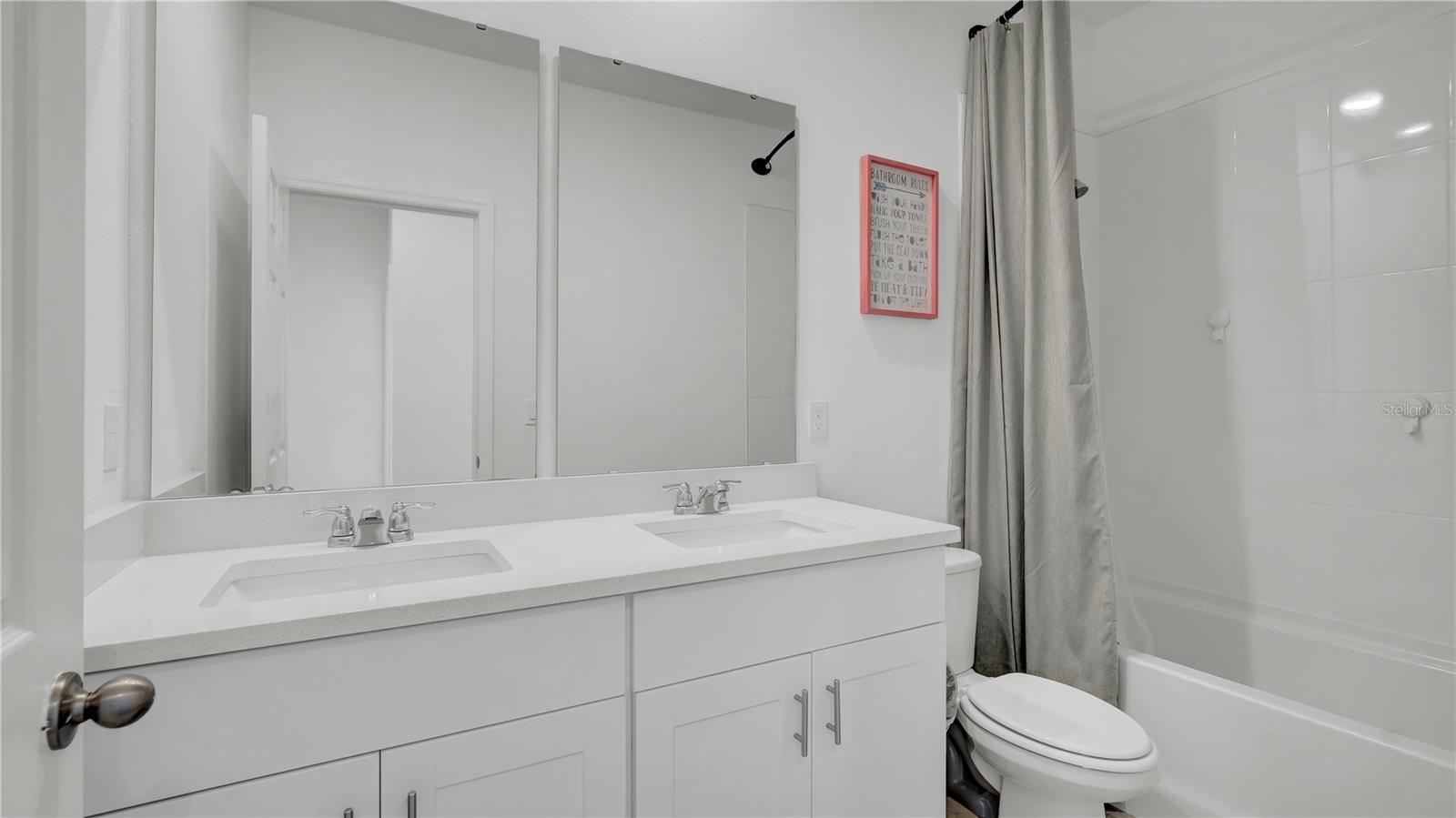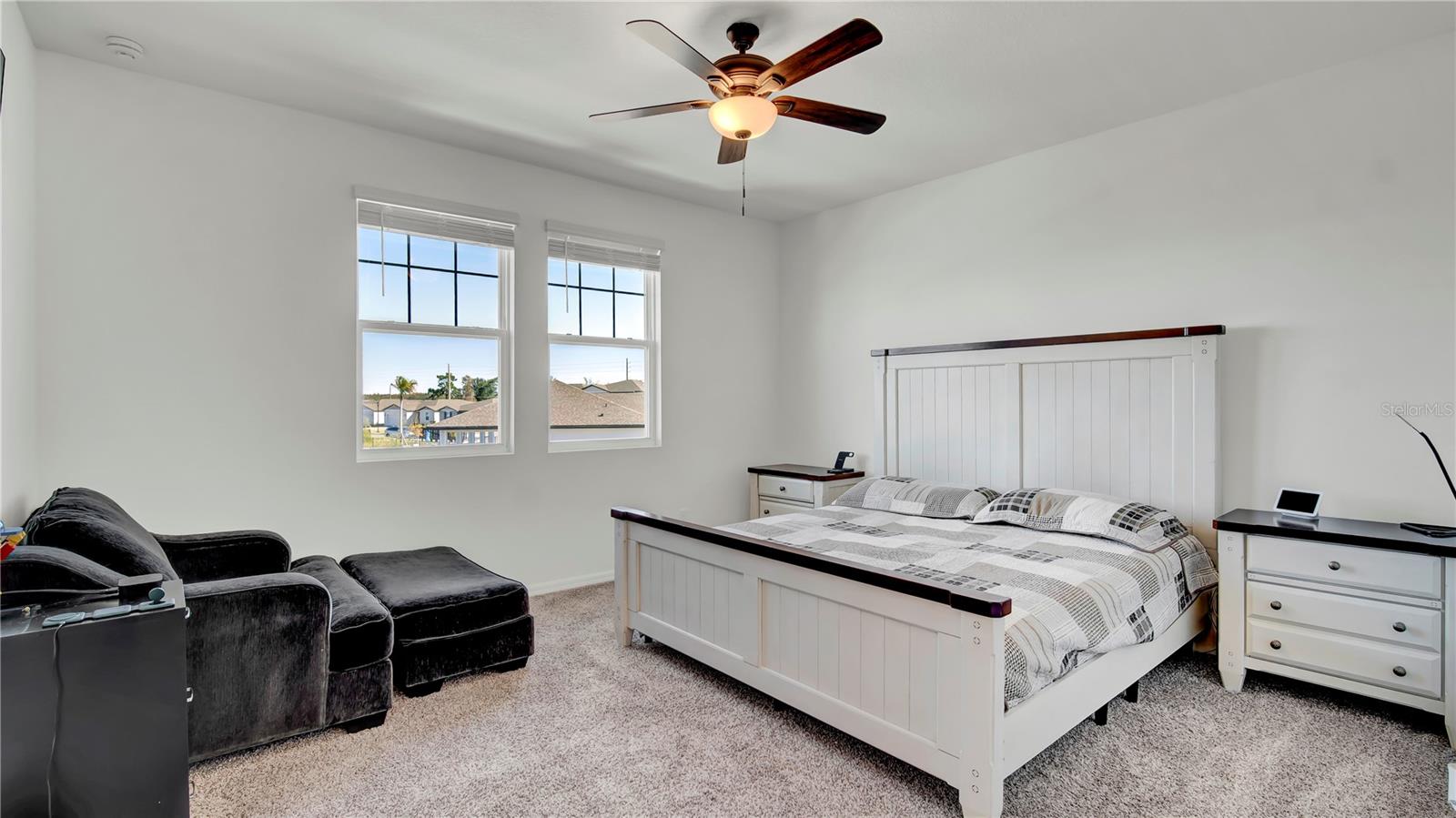 Welcome to this stunning 2023-built home, perfectly blending modern style, functionality, and convenience. Boasting 4 spacious bedrooms, 2.5 bathrooms, and thoughtfully designed living spaces across two levels, this home is tailored for today's lifestyle. The main level features a versatile flex room—ideal as an office, playroom, or workout space—and an open-concept layout that seamlessly connects the great room, dining area, and chef-inspired kitchen, complete with granite countertops, a walk-in pantry, and a countertop bar perfect for casual meals or gatherings. Upstairs, a spacious loft provides a second living area or media room, while the luxurious master suite offers a private retreat with a walk-in closet and a spa-like ensuite featuring dual sinks and a walk-in shower. Three additional bedrooms, a full bathroom, and a dedicated laundry room located near the master suite ensure convenience and privacy. Additional highlights include a 2-car garage, an energy-efficient design by renowned Meritage Homes, and an assumable loan with an incredible 5.875 interest rate for Veteran—perfect for investors. Situated less than 5 miles from the highly anticipated five-acre crystal freshwater lagoon—the first of its kind in Osceola—this home combines modern living with resort-style amenities. The lagoon will has endless opportunities for relaxation and recreation, while the area is also set to include four new schools, including two K-8 schools, a high school, and a charter school, making this an ideal choice for families. Steps from the community pool and playground, this home is ready to become your personal sanctuary. Schedule your showing today and experience it for yourself!