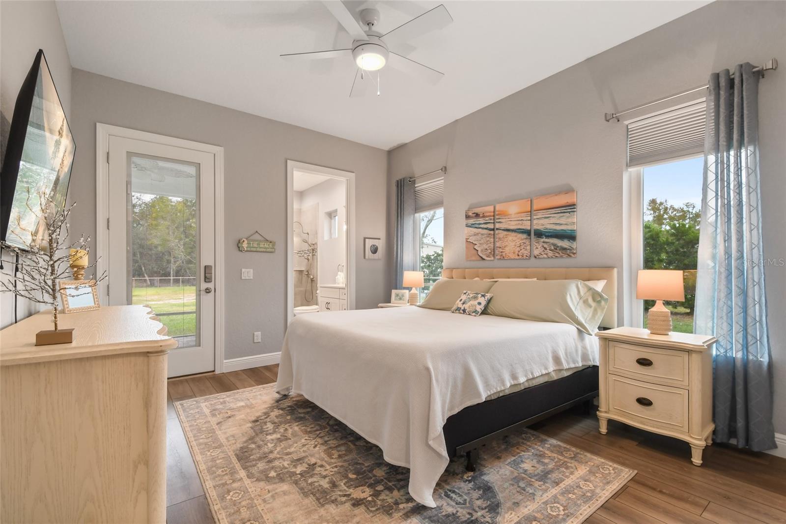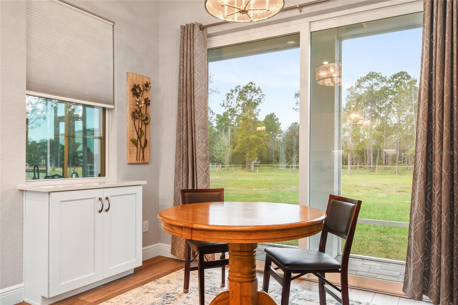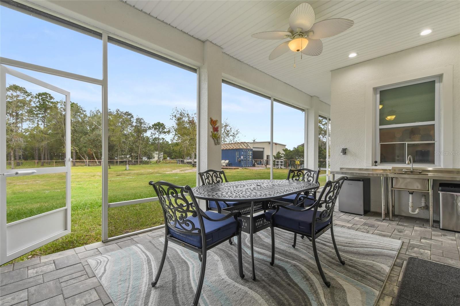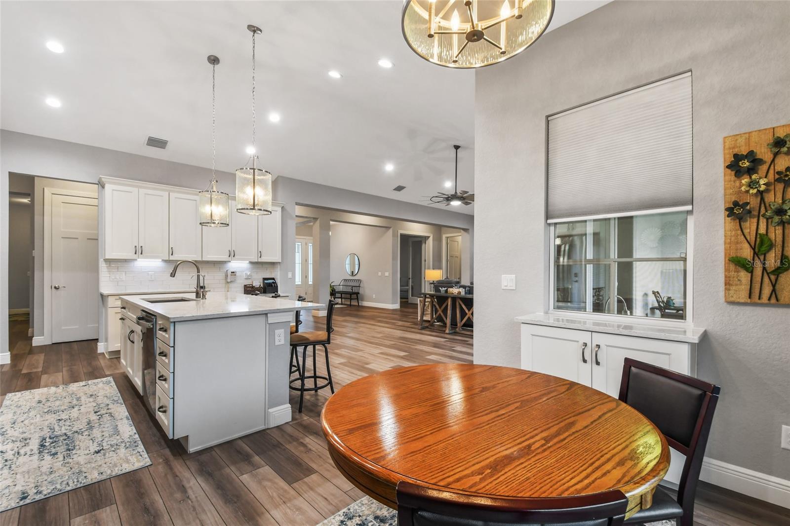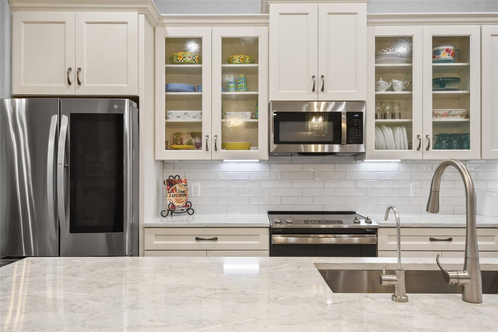 Nestled on a quiet, fully landscaped 1-acre lot, this stunning 2022-built dream home offers the perfect blend of modern luxury and peaceful retreat. Boasting FOUR spacious bedrooms and THREE and a half beautifully appointed bathrooms, this home is designed with a thoughtful open and split floor plan that maximizes space and comfort. The interior features SHAW luxury vinyl plank flooring throughout, offering both elegance and durability. The gourmet kitchen is a chef's dream, complete with an oversized island with breakfast bar, stainless steel sink, solid wood cabinets, built-in oven and microwave, and a beautiful subway tile backsplash that complements the stunning quartz countertops. The generous laundry room, located off the kitchen, includes built-in cabinets and a sink, leading directly to the garage. Large PELLA windows flood the space with natural light, highlighting the vaulted ceilings and creating an airy, open feel while offering picturesque views of the surrounding trees. Enjoy the tranquility of nature from the inviting covered front porch, the perfect spot for relaxing and taking in the gentle breeze. The home also features a fully finished garage with Shark Coating flooring, providing extra space for storage or hobbies. The extra-long driveway, featuring stylish pavers, offers additional parking. A unique shipping container in the backyard serves as additional storage or a potential office space. Located in a peaceful neighborhood with wooded surroundings, this home provides privacy and a serene lifestyle, all while being conveniently close to local attractions, theme parks, and other amenities. Schedule a showing today and make this incredible home yours!