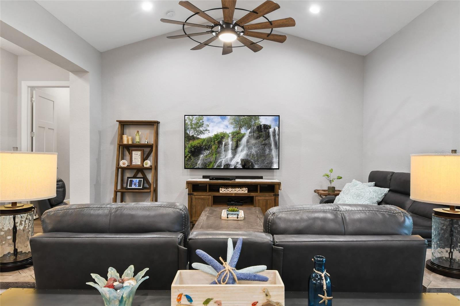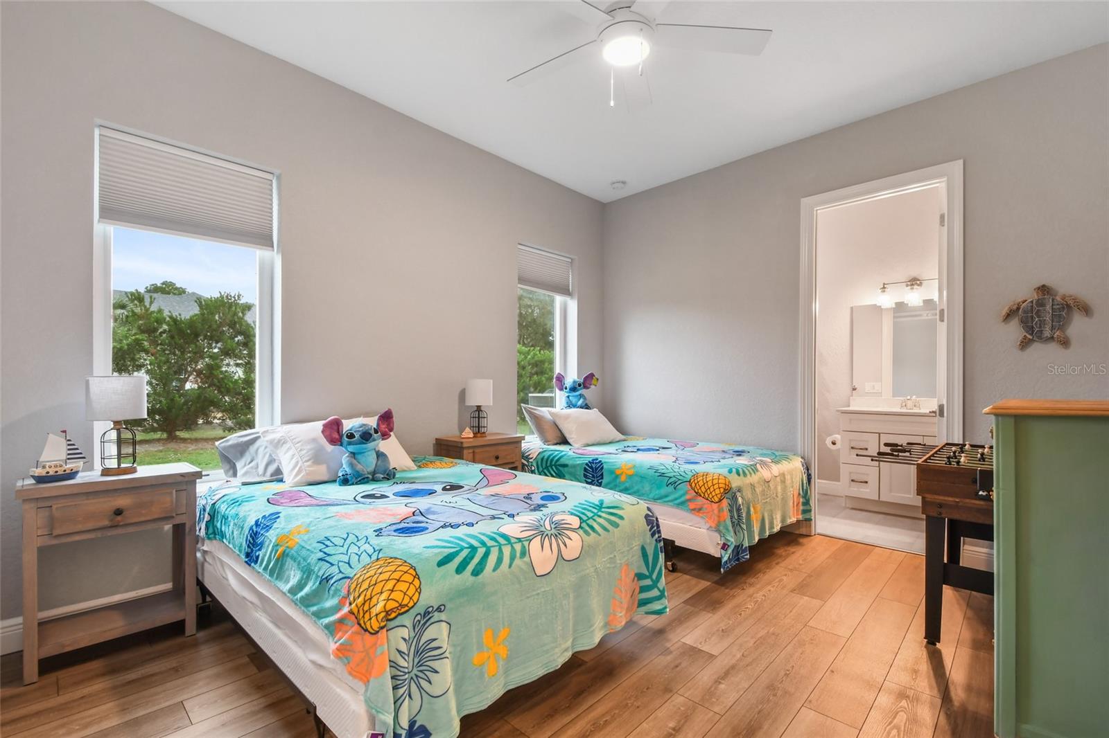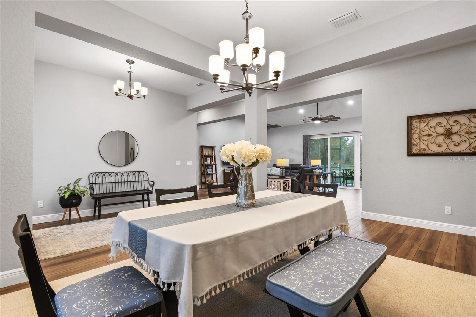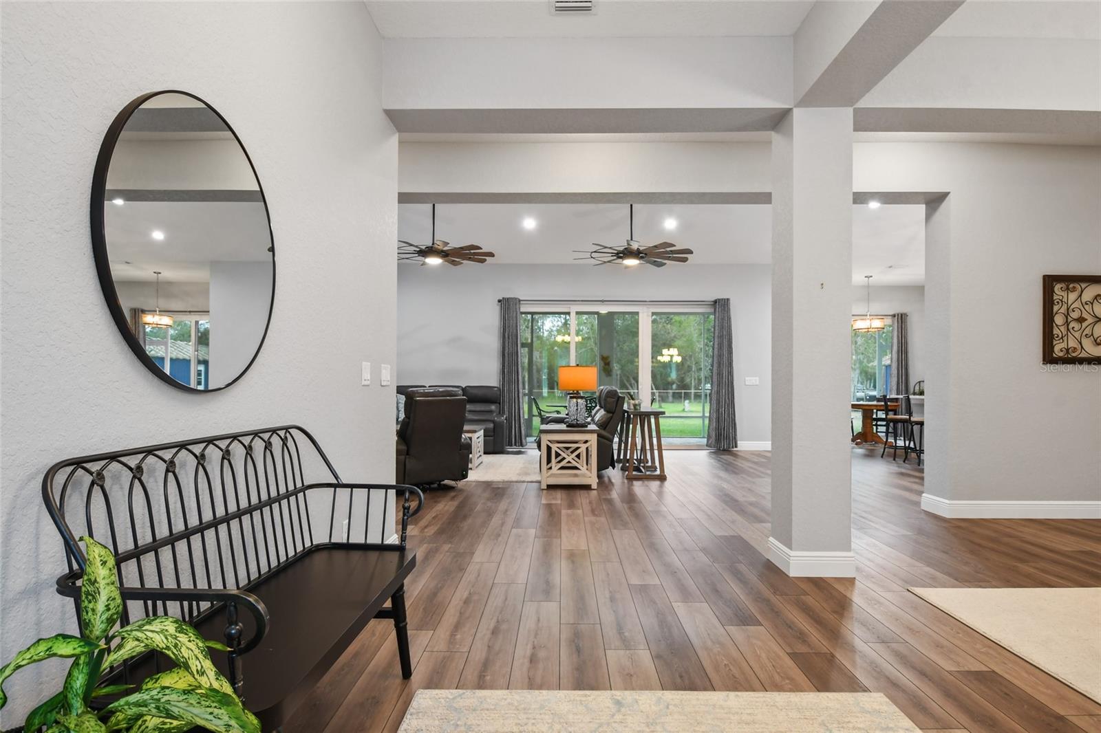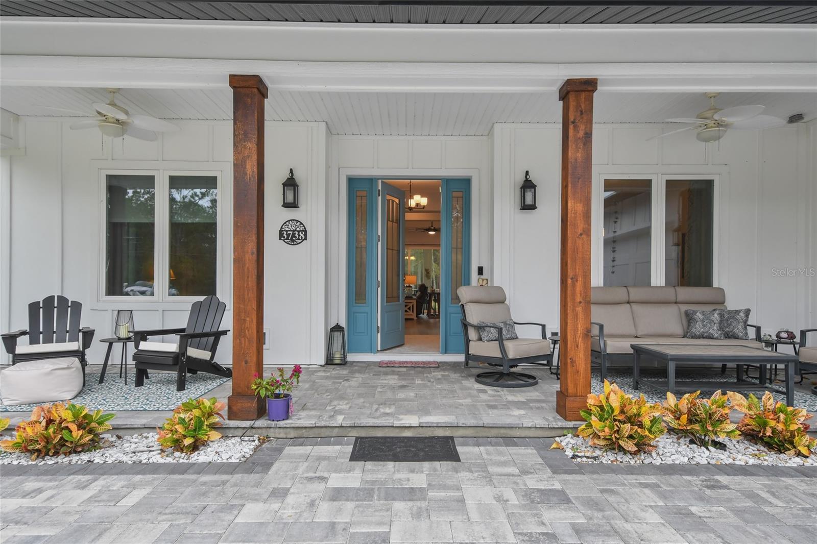 Nestled on a quiet, fully landscaped 1-acre lot, this stunning 2022-built dream home offers the perfect blend of modern luxury and peaceful retreat. Boasting FOUR spacious bedrooms and THREE and a half beautifully appointed bathrooms, this home is designed with a thoughtful open and split floor plan that maximizes space and comfort. The interior features SHAW luxury vinyl plank flooring throughout, offering both elegance and durability. The gourmet kitchen is a chef's dream, complete with an oversized island with breakfast bar, stainless steel sink, solid wood cabinets, built-in oven and microwave, and a beautiful subway tile backsplash that complements the stunning quartz countertops. The generous laundry room, located off the kitchen, includes built-in cabinets and a sink, leading directly to the garage. Large PELLA windows flood the space with natural light, highlighting the vaulted ceilings and creating an airy, open feel while offering picturesque views of the surrounding trees. Enjoy the tranquility of nature from the inviting covered front porch, the perfect spot for relaxing and taking in the gentle breeze. The home also features a fully finished garage with Shark Coating flooring, providing extra space for storage or hobbies. The extra-long driveway, featuring stylish pavers, offers additional parking. A unique shipping container in the backyard serves as additional storage or a potential office space. Located in a peaceful neighborhood with wooded surroundings, this home provides privacy and a serene lifestyle, all while being conveniently close to local attractions, theme parks, and other amenities. Schedule a showing today and make this incredible home yours!
