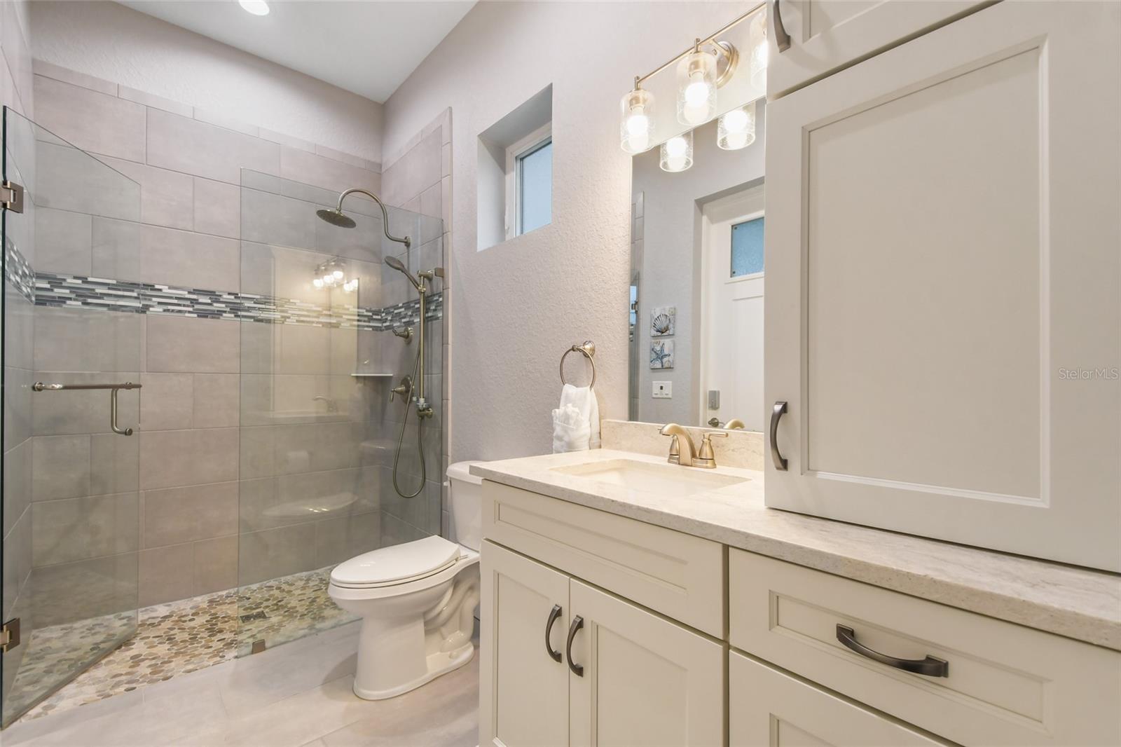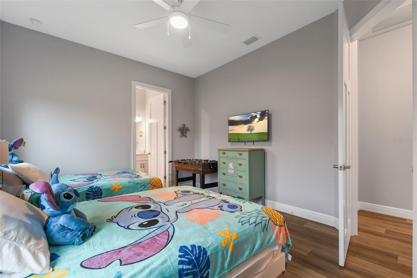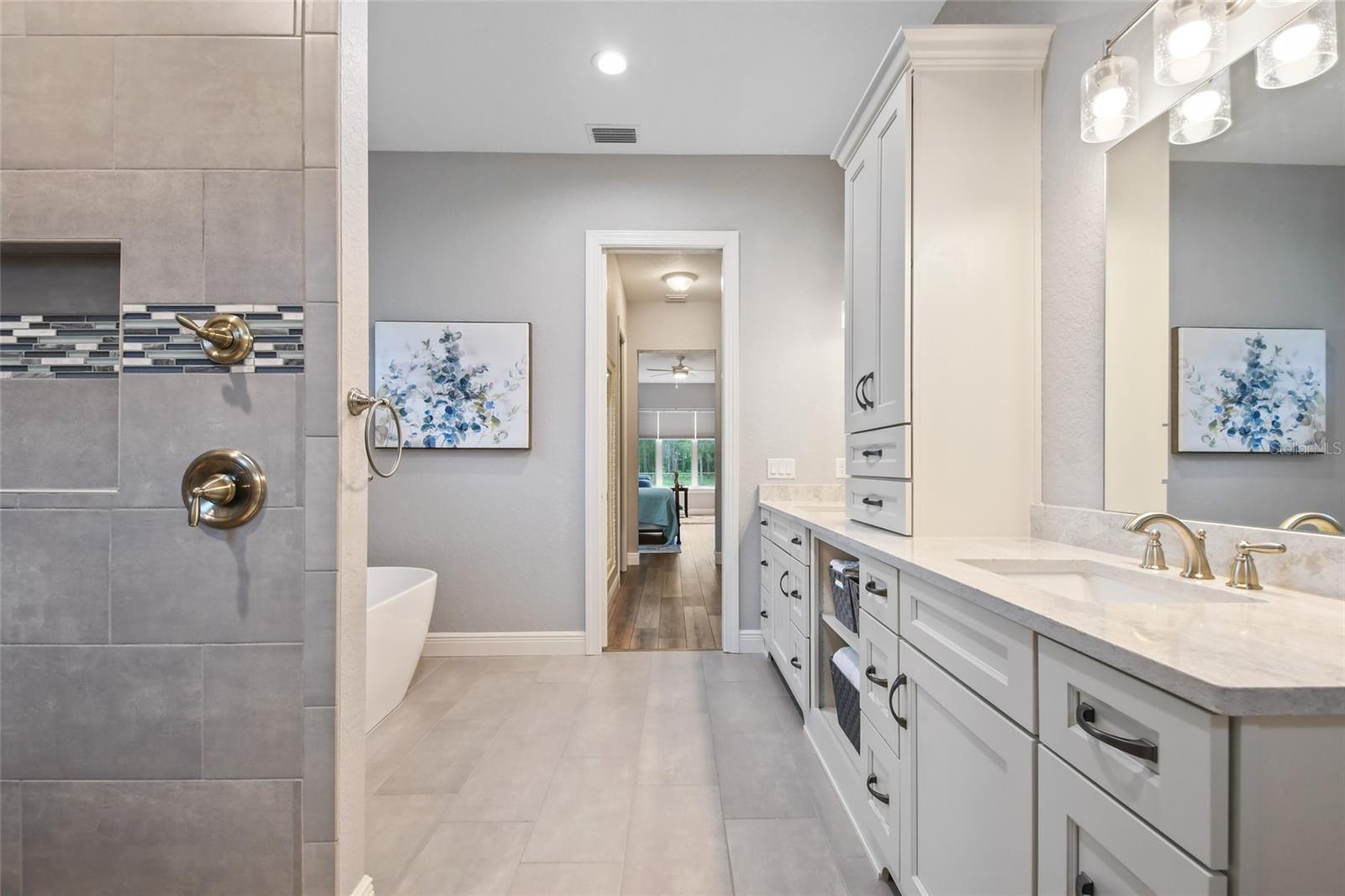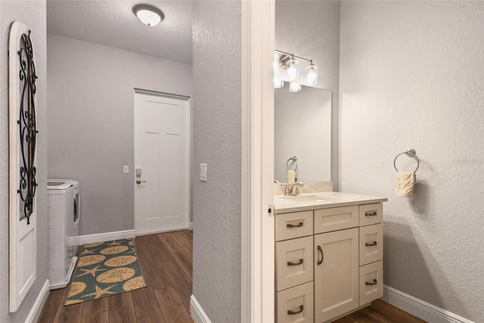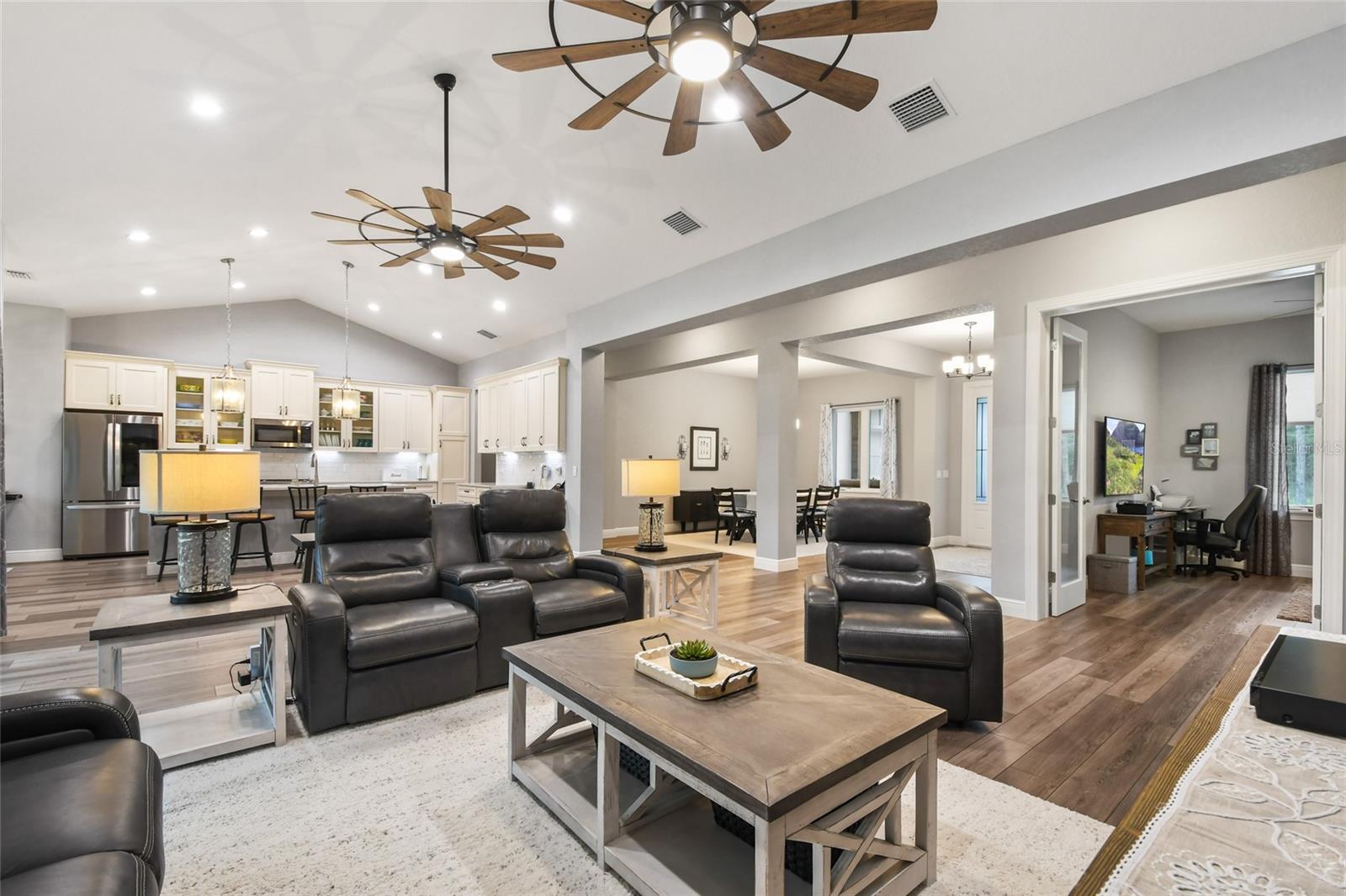 Nestled on a quiet, fully landscaped 1-acre lot, this stunning 2022-built dream home offers the perfect blend of modern luxury and peaceful retreat. Boasting FOUR spacious bedrooms and THREE and a half beautifully appointed bathrooms, this home is designed with a thoughtful open and split floor plan that maximizes space and comfort. The interior features SHAW luxury vinyl plank flooring throughout, offering both elegance and durability. The gourmet kitchen is a chef's dream, complete with an oversized island with breakfast bar, stainless steel sink, solid wood cabinets, built-in oven and microwave, and a beautiful subway tile backsplash that complements the stunning quartz countertops. The generous laundry room, located off the kitchen, includes built-in cabinets and a sink, leading directly to the garage. Large PELLA windows flood the space with natural light, highlighting the vaulted ceilings and creating an airy, open feel while offering picturesque views of the surrounding trees. Enjoy the tranquility of nature from the inviting covered front porch, the perfect spot for relaxing and taking in the gentle breeze. The home also features a fully finished garage with Shark Coating flooring, providing extra space for storage or hobbies. The extra-long driveway, featuring stylish pavers, offers additional parking. A unique shipping container in the backyard serves as additional storage or a potential office space. Located in a peaceful neighborhood with wooded surroundings, this home provides privacy and a serene lifestyle, all while being conveniently close to local attractions, theme parks, and other amenities. Schedule a showing today and make this incredible home yours!