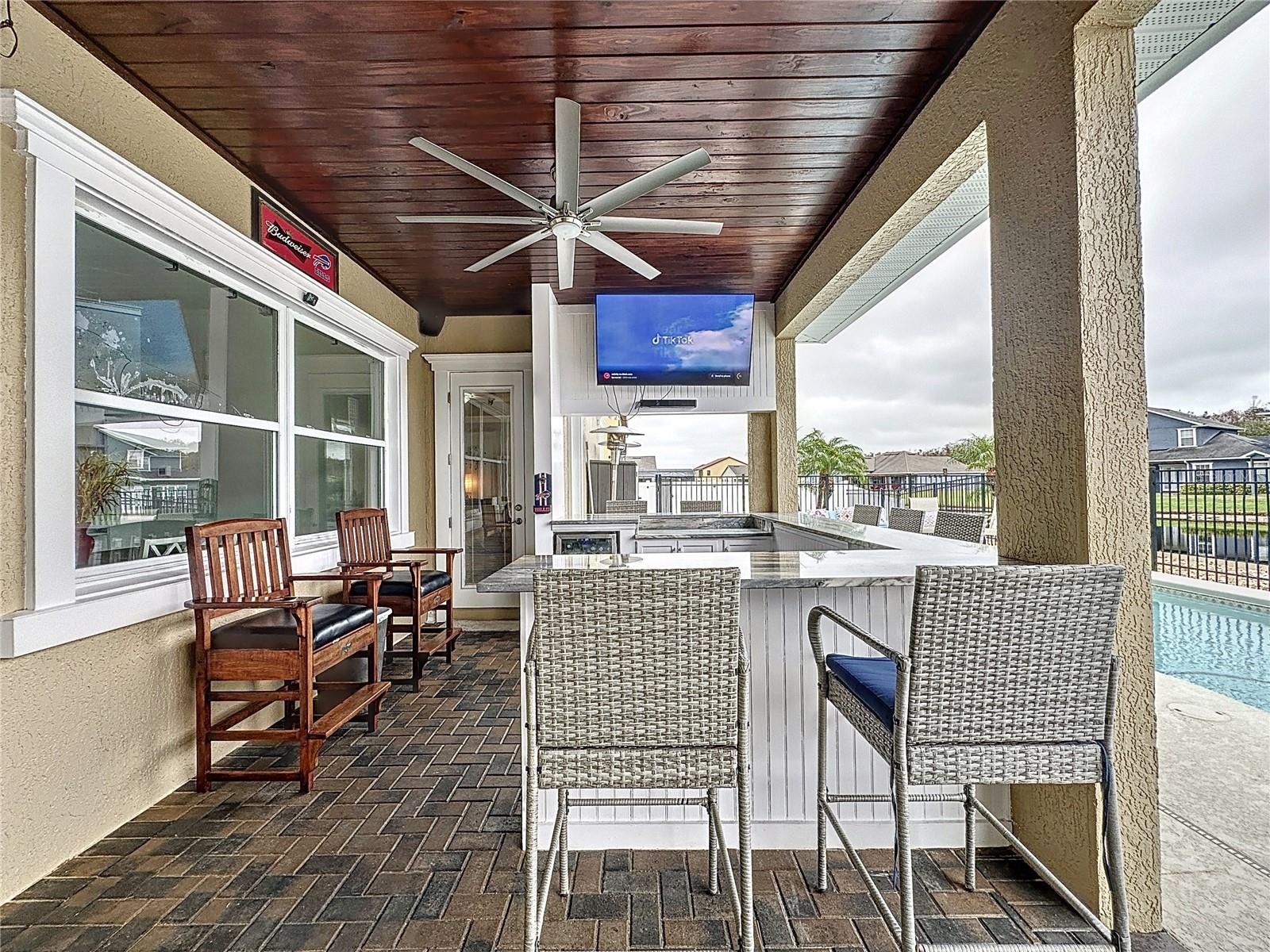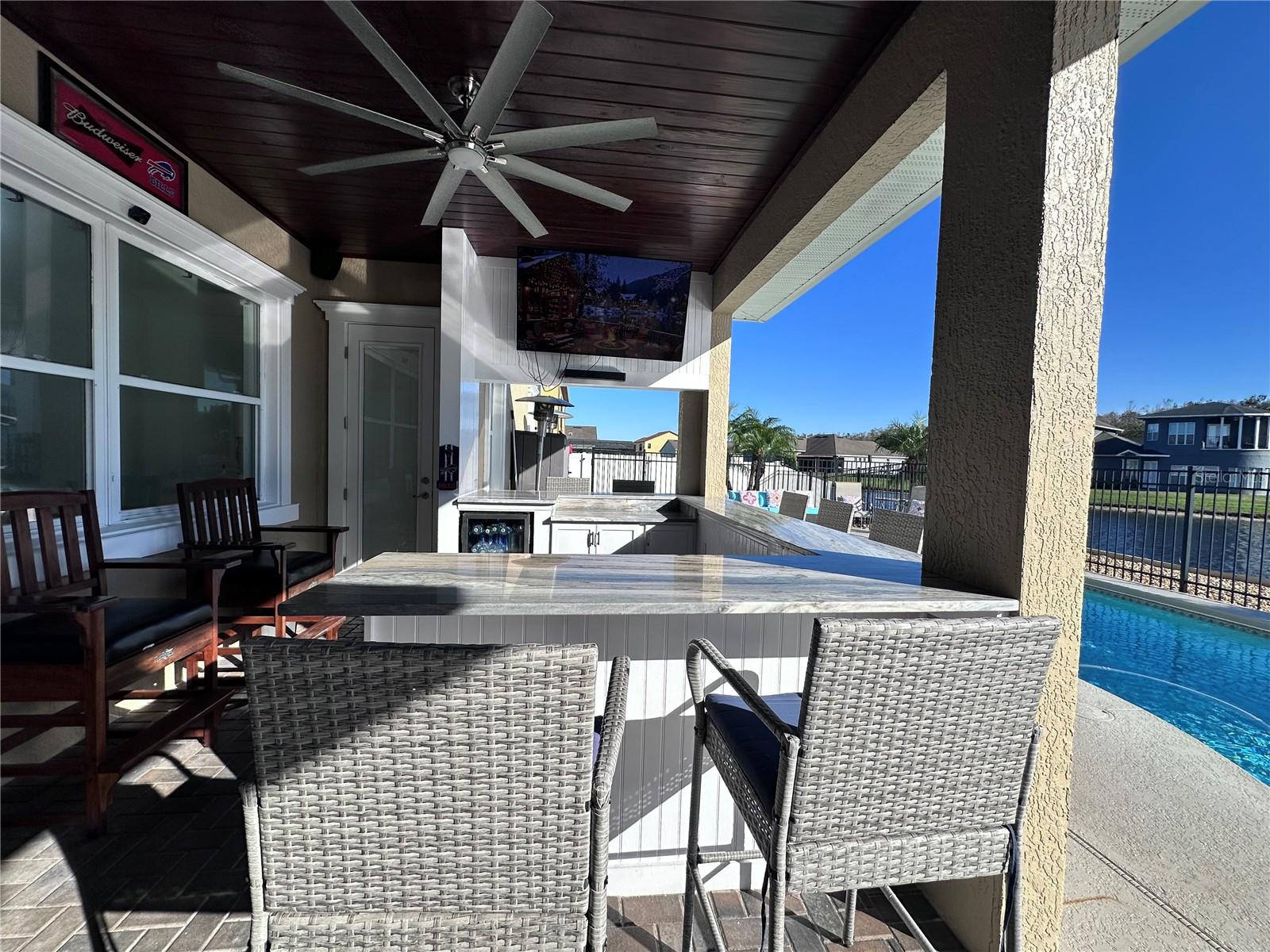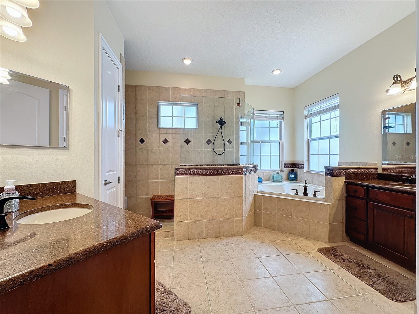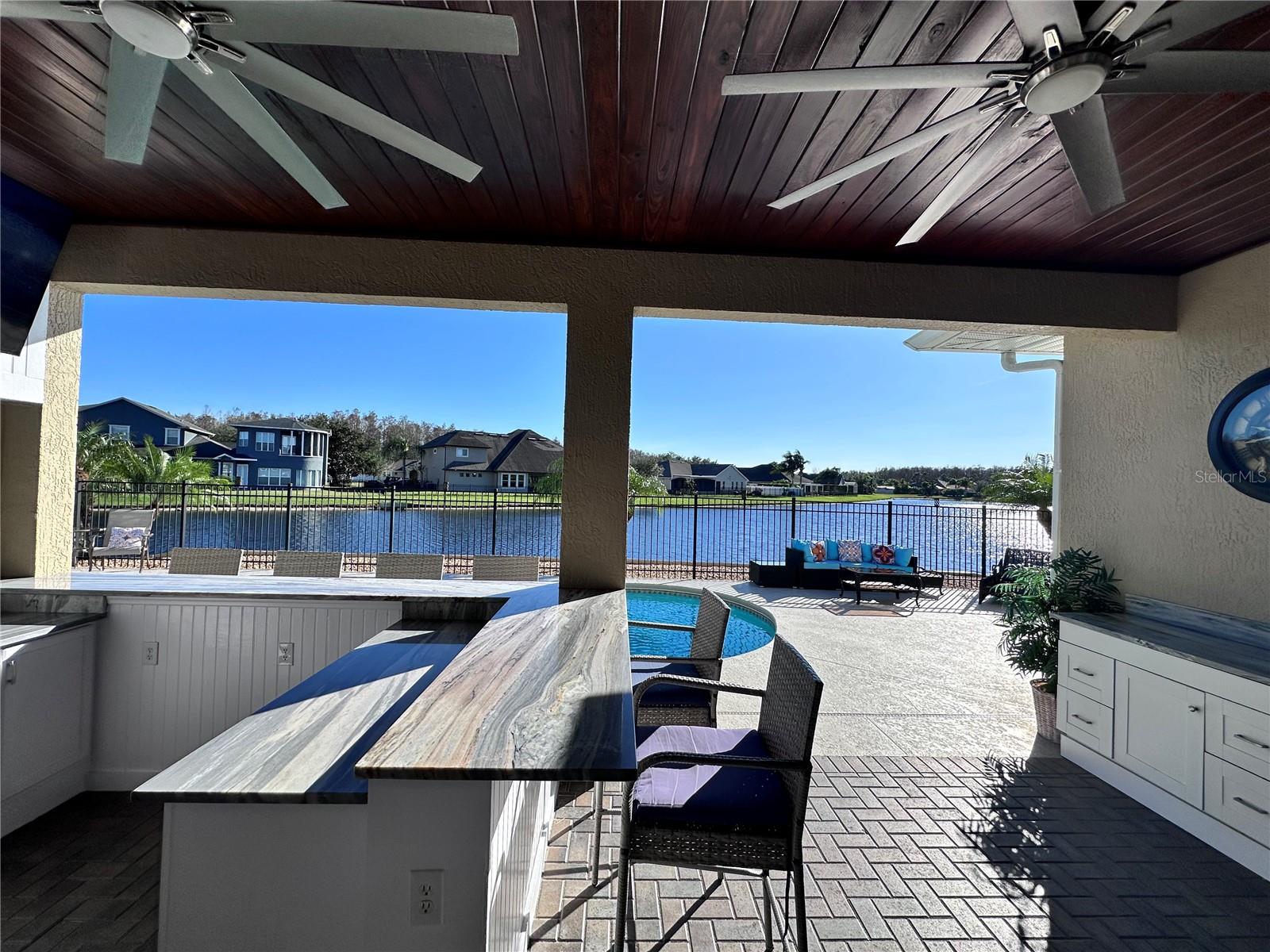 WATERFRONT WITH POOL custom 5-bedroom, 4-bathroom home with 2 additional overflow rooms on the lower level, and a BRAND NEW ROOF. Discover just under 3,700 sq. ft. of luxurious living space accompanied by an outdoor entertainment area overlooking a serene water view and nestled in the family-friendly community Estates at Stevens Plantation in Saint Cloud. This home has generous living space that is thoughtfully laid out to ensures privacy and comfort for the entire family and all your guests. The expansive lower-level primary bedroom is a true retreat, featuring an expansive en-suite bath, with a hot-tub, walk-in shower and dual walk-in closets. Also on the lower level, you will find an additional bedroom and a fully remodeled bathroom for guests or multi-generational living, as well as two additional rooms ideal for an office and overflow storage. The upper level offers three more bedrooms and two full baths with plenty of space for the entire family and all your guests. The landing area adds to the homes open air feel and makes a great gaming area for family gathering. Enjoy the peace and tranquility of the water with a fully fenced-in backyard, perfect for relaxing and unwinding by the pool. The outdoor Oasis also includes a newly added outdoor sporting area, with high-top seating for 10, beautifully designed with granite tops throughout, an outdoor frig and plenty of space to accommodate all your needs. Enjoy a brand-new roof, newer A/C, fresh appliances throughout and a newly installed composite garage floor. Located in a wonderful, safe, and highly sought-after Stevens Plantation, and within close proximity to the FL Turnpike, top-rated schools, parks, and plenty of shopping. The mature landscaping and brick driveway provide stunning curb appeal setting the tone for this exceptional home. Don't miss the opportunity to make this incredible waterfront custom pool property your home, in Stevens Plantation Estates.