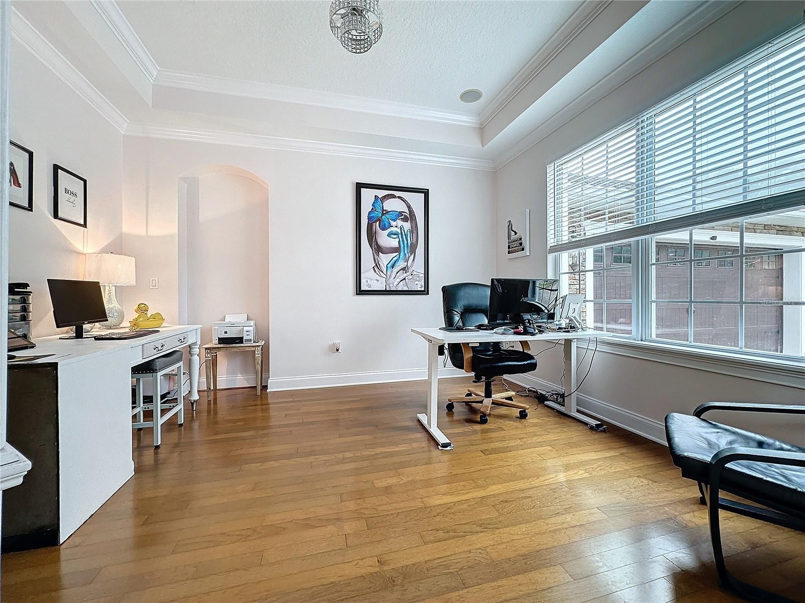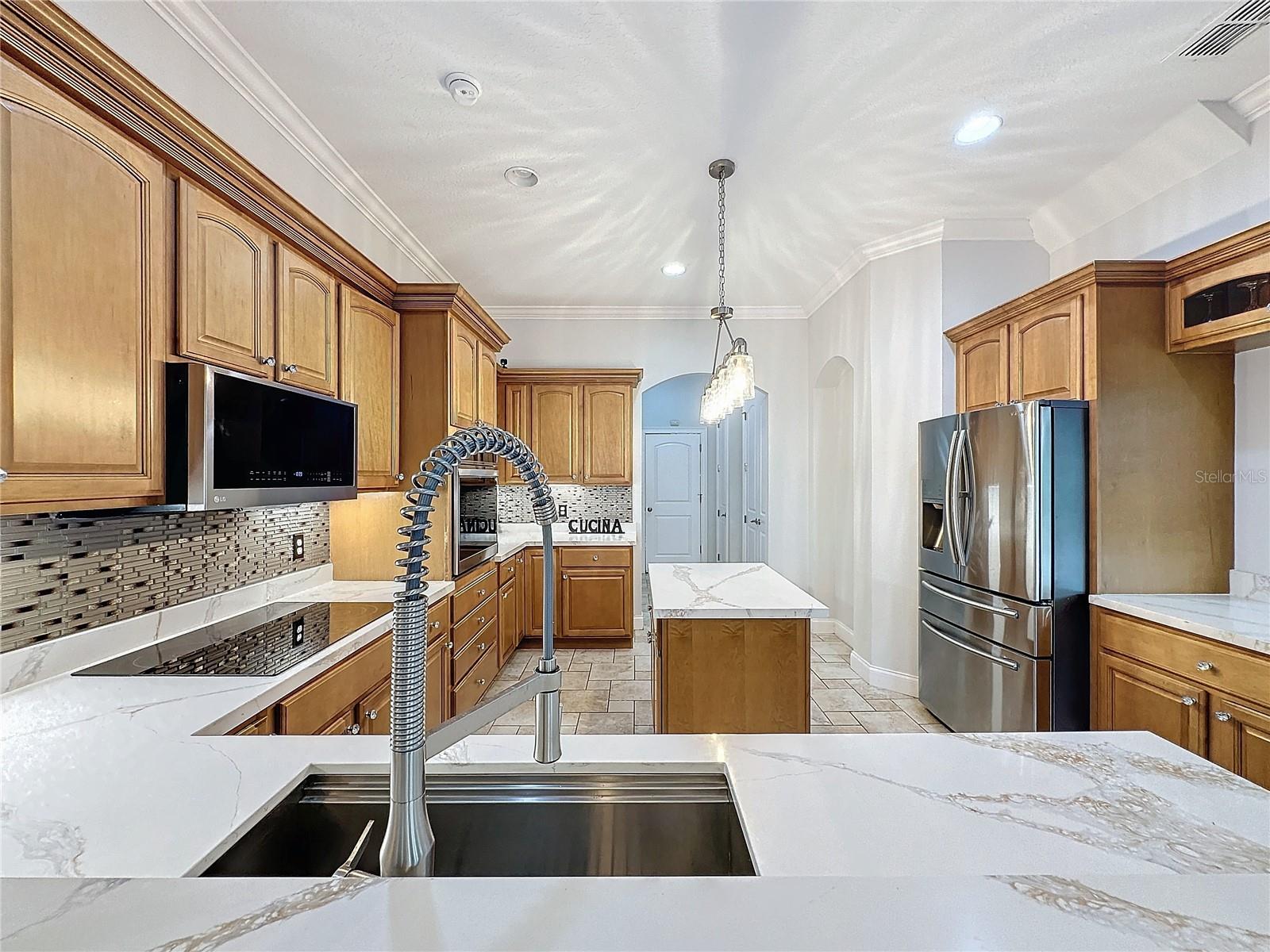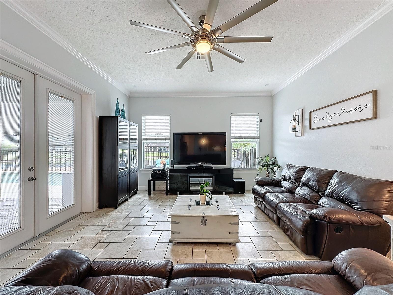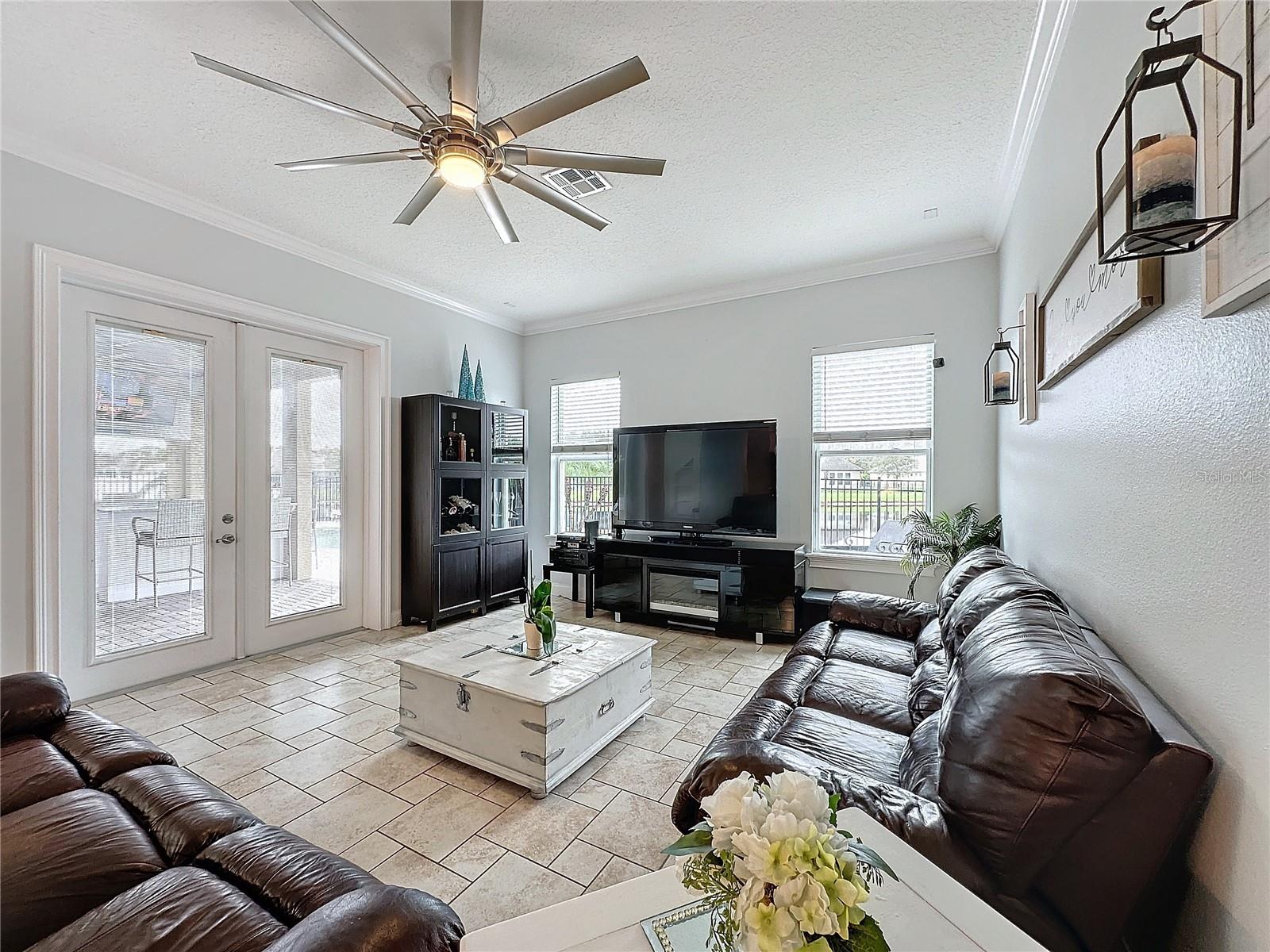WATERFRONT WITH POOL custom 5-bedroom, 4-bathroom home with 2 additional overflow rooms on the lower level, and a BRAND NEW ROOF. Discover just under 3,700 sq. ft. of luxurious living space accompanied by an outdoor entertainment area overlooking a serene water view and nestled in the family-friendly community Estates at Stevens Plantation in Saint Cloud. This home has generous living space that is thoughtfully laid out to ensures privacy and comfort for the entire family and all your guests. The expansive lower-level primary bedroom is a true retreat, featuring an expansive en-suite bath, with a hot-tub, walk-in shower and dual walk-in closets. Also on the lower level, you will find an additional bedroom and a fully remodeled bathroom for guests or multi-generational living, as well as two additional rooms ideal for an office and overflow storage. The upper level offers three more bedrooms and two full baths with plenty of space for the entire family and all your guests. The landing area adds to the homes open air feel and makes a great gaming area for family gathering. Enjoy the peace and tranquility of the water with a fully fenced-in backyard, perfect for relaxing and unwinding by the pool. The outdoor Oasis also includes a newly added outdoor sporting area, with high-top seating for 10, beautifully designed with granite tops throughout, an outdoor frig and plenty of space to accommodate all your needs. Enjoy a brand-new roof, newer A/C, fresh appliances throughout and a newly installed composite garage floor. Located in a wonderful, safe, and highly sought-after Stevens Plantation, and within close proximity to the FL Turnpike, top-rated schools, parks, and plenty of shopping. The mature landscaping and brick driveway provide stunning curb appeal setting the tone for this exceptional home. Don't miss the opportunity to make this incredible waterfront custom pool property your home, in Stevens Plantation Estates.