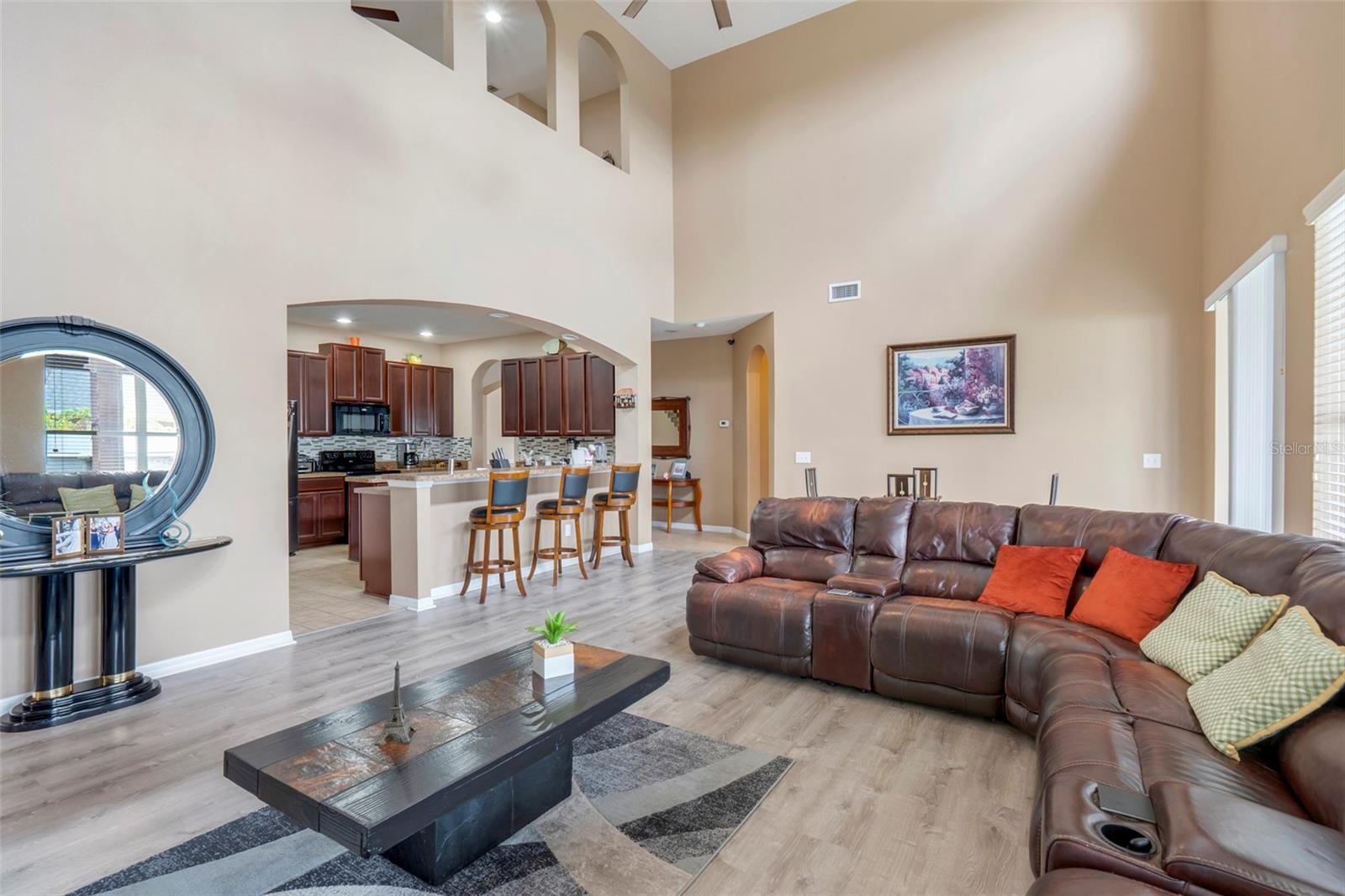 Welcome to the exceptional 351 Michigan Estates Circle in the highly sought-after Michigan Estates community of Saint Cloud, FL! This expansive 6-bedroom, 5-bathroom POOL HOME is the perfect blend of space, comfort, and energy efficiency, offering everything you need for modern Florida living. From the moment you arrive, you'll be captivated by the home's impressive curb appeal, enhanced by a BRAND-NEW ROOF (12/2024) that offers both durability and peace of mind for years to come. Step inside and be welcomed by an open and inviting floor plan designed for both everyday living and entertaining. The formal living room and elegant formal dining area feature luxury vinyl flooring, creating a warm ambiance. <br> <br> The heart of the home is the spacious kitchen, complete with ample cabinetry, modern appliances, and a generous island, ideal for meal preparation and gathering with family and friends. Adjacent to the kitchen, the family room provides a comfortable space to unwind with beautiful high ceilings and lots of natural daylight. Retreat to the luxurious master suite, a true sanctuary with a spa-like ensuite bathroom and plenty of closet space that has a private access to the backyard. On the opposite side of the first floor, you will find the secondary bedroom with private bathroom. Four additional bedrooms, and an EXPANSIVE LOFT on the second floor ensure there’s room for everyone, whether for family, guests, or a dedicated home office. <br> <br> Step outside to your personal backyard oasis, where a PRIVATE SPARKLING POOL invites you to relax and soak up the Florida sunshine. The spacious covered patio is perfect for outdoor dining, entertaining, or simply unwinding after a long day. This home is as practical as it is beautiful, featuring solar panels that drastically reduce energy costs and promote sustainable living. Enjoy the added benefit of a WATER SOFTENING SYSTEM, providing clean and high-quality water throughout the entire home. Situated in a peaceful neighborhood, yet conveniently close to top-rated schools, shopping, dining, major highways, this home offers the best of both worlds—tranquility and accessibility. Great proximity to the Florida Turnpike, new state of the art elementary and middle school, St. Cloud High School, restaurants, shopping and few minutes drive Lake Nona & Medical City, Historic Downtown Kissimmee, high-tech NeoCity, Lakefront Park in St. Cloud, Disney, SeaWorld, Universal Studios, Orlando International Airport, and beaches. Don’t miss your opportunity to own this extraordinary property where thoughtful upgrades and modern comforts come together seamlessly. Schedule your private tour today and fall in love with 351 Michigan Estates Circle!