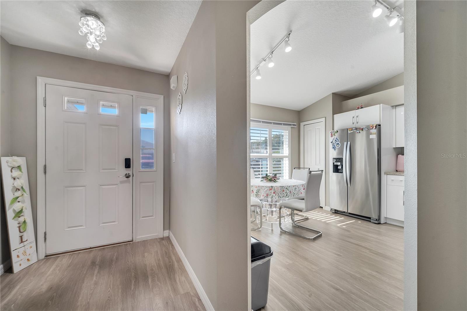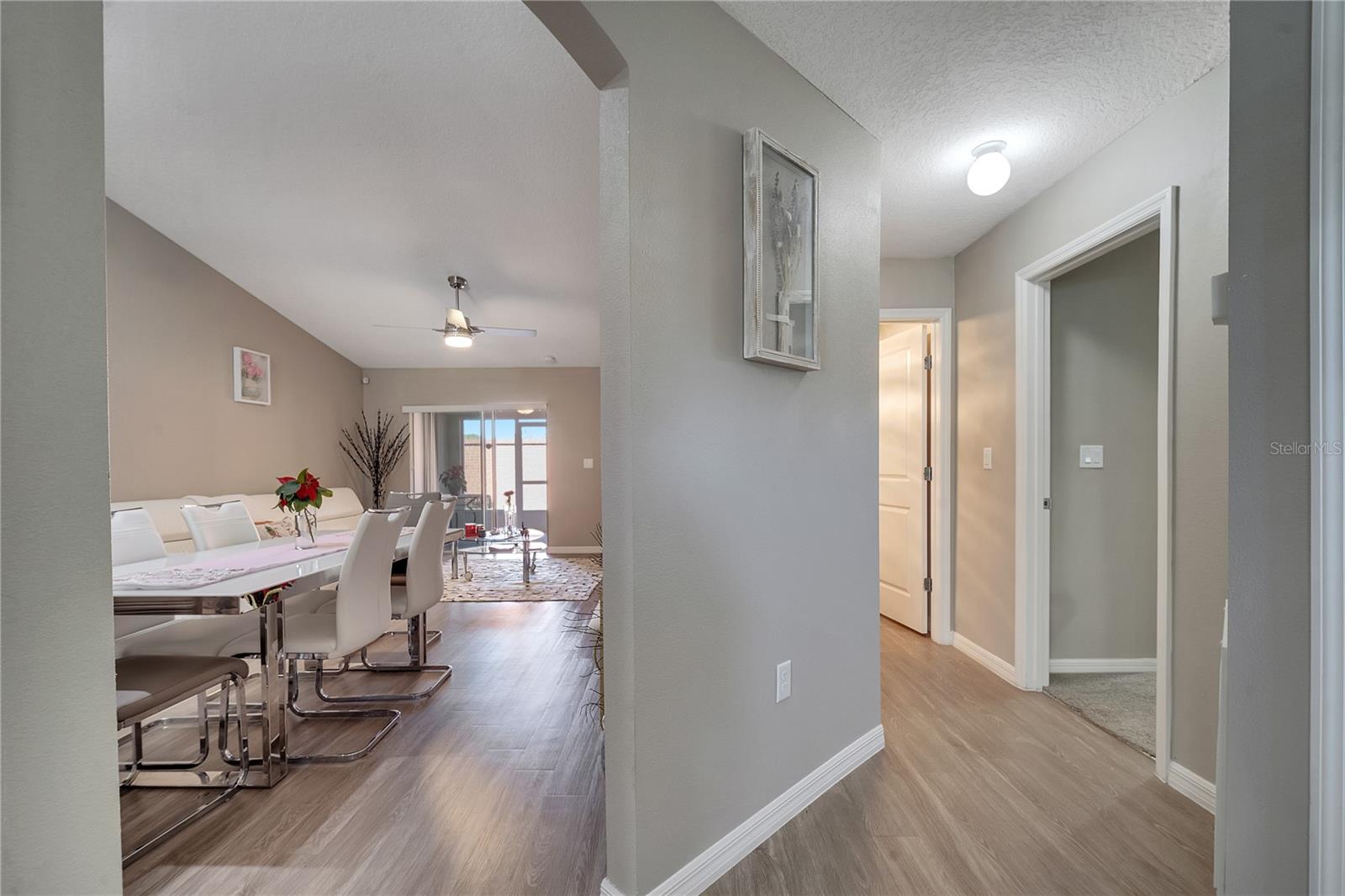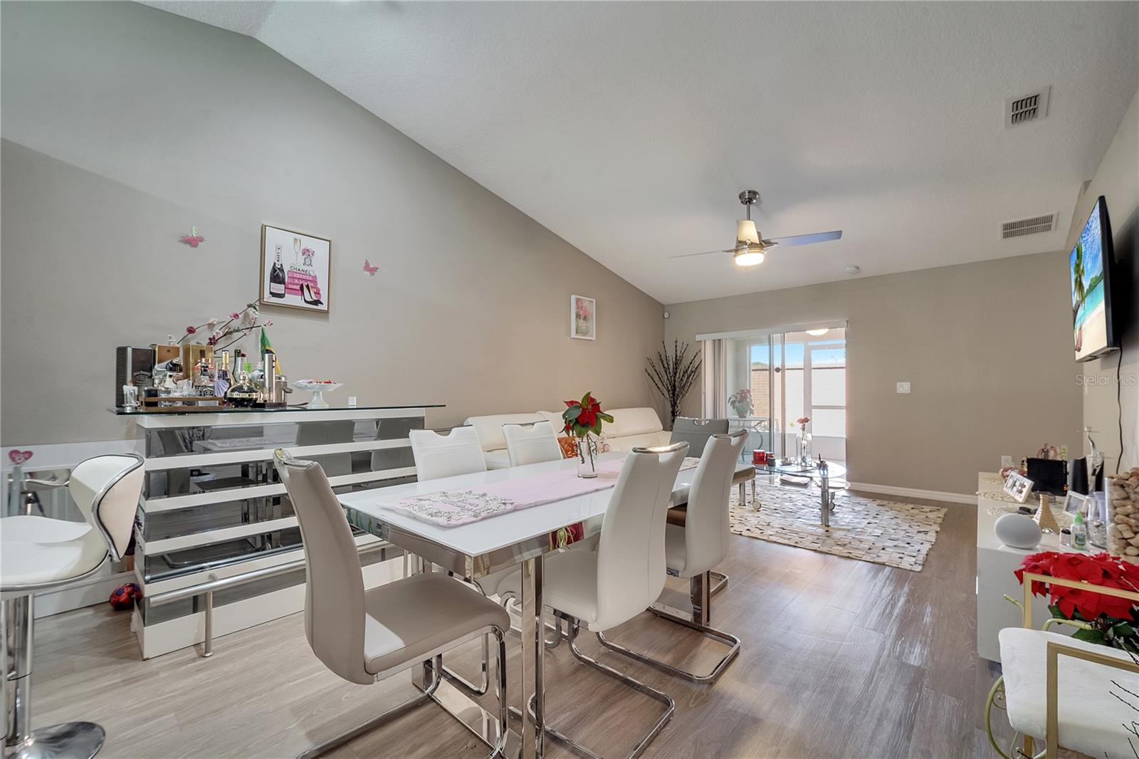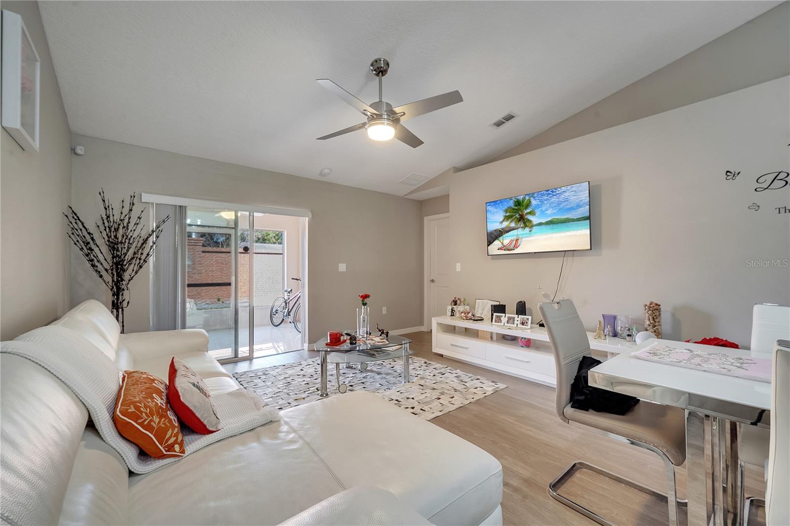 This stunning townhouse offers 3 bedrooms, 2 bathrooms, and wood laminate flooring throughout. The master suite includes two spacious closets and elegant Italian cabinets in the bathrooms. The bright living room features modern lighting, a remote-controlled stainless steel fan, and a charming brick counter, perfect for quick meals or drinks. The porcelain-tiled patio provides a great space for relaxation or entertaining activities with friends. The kitchen includes NEW Italian cabinets, a large counter with a built-in wine cellar, and ample pantry space. All appliances are in excellent working condition. The garage includes a laundry area, with dryer and a brand new washer. Central AC with a thermostat ensures year-round comfort. A lovely garden with pine trees and flowers greets you at the entrance. The community amenities include a swimming pool, a scenic lake for walks or pet outings, and a playground. Conveniently located near great schools, Publix, Walmart, and just 30 minutes from Orlando International Airport, Disney, Universal, Downtown Orlando, and more. Furniture can be negotiated. Don’t miss this opportunity, whether you’re a resident or investor. Schedule your visit today!