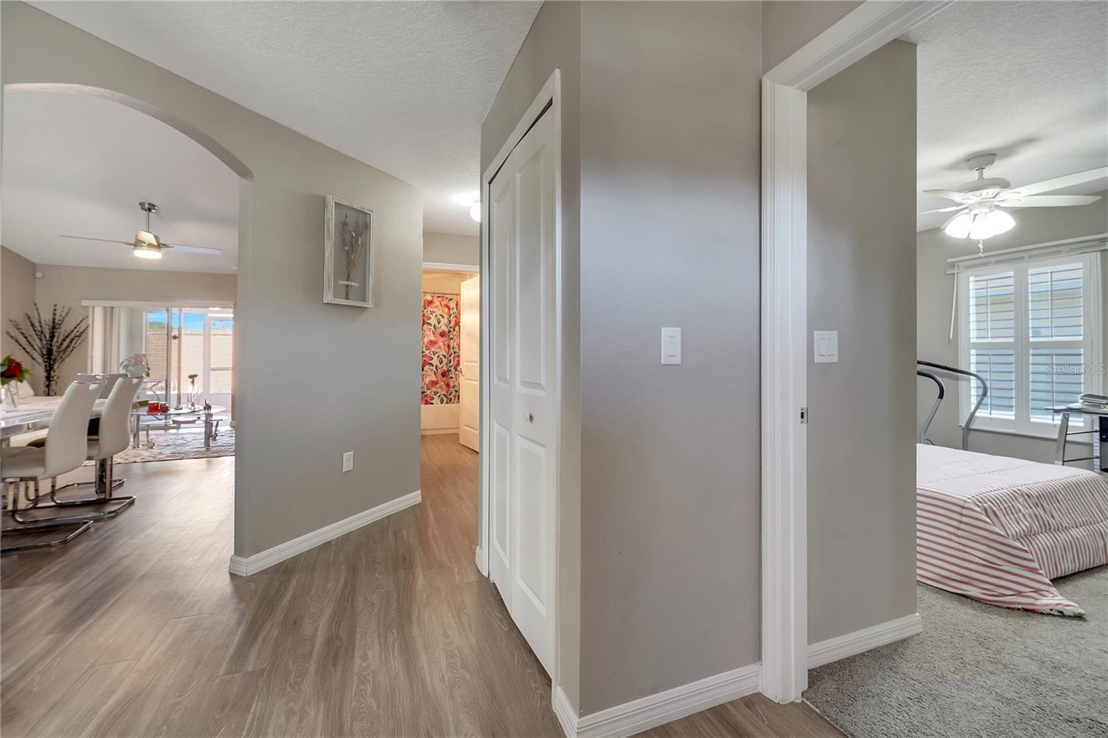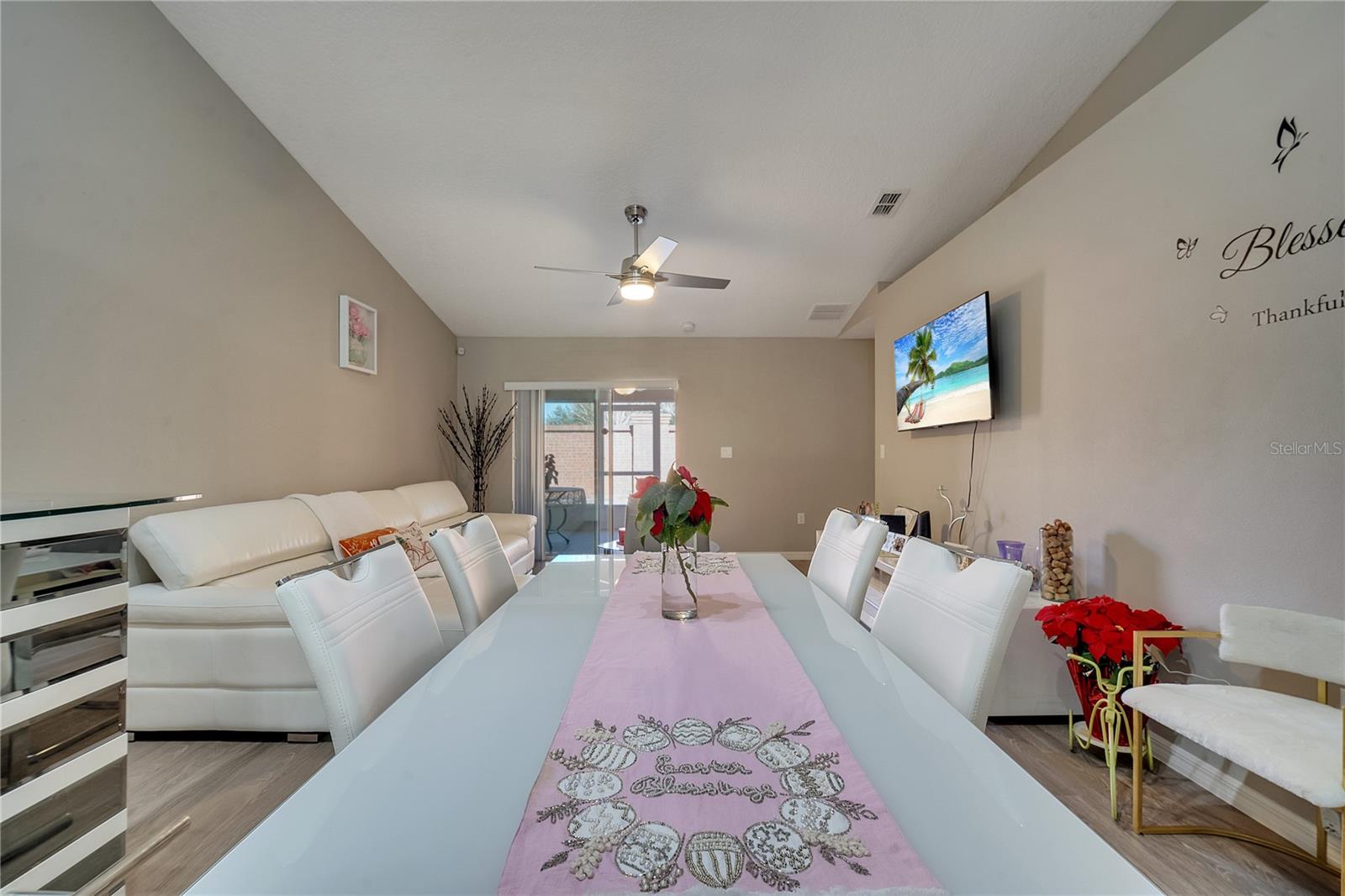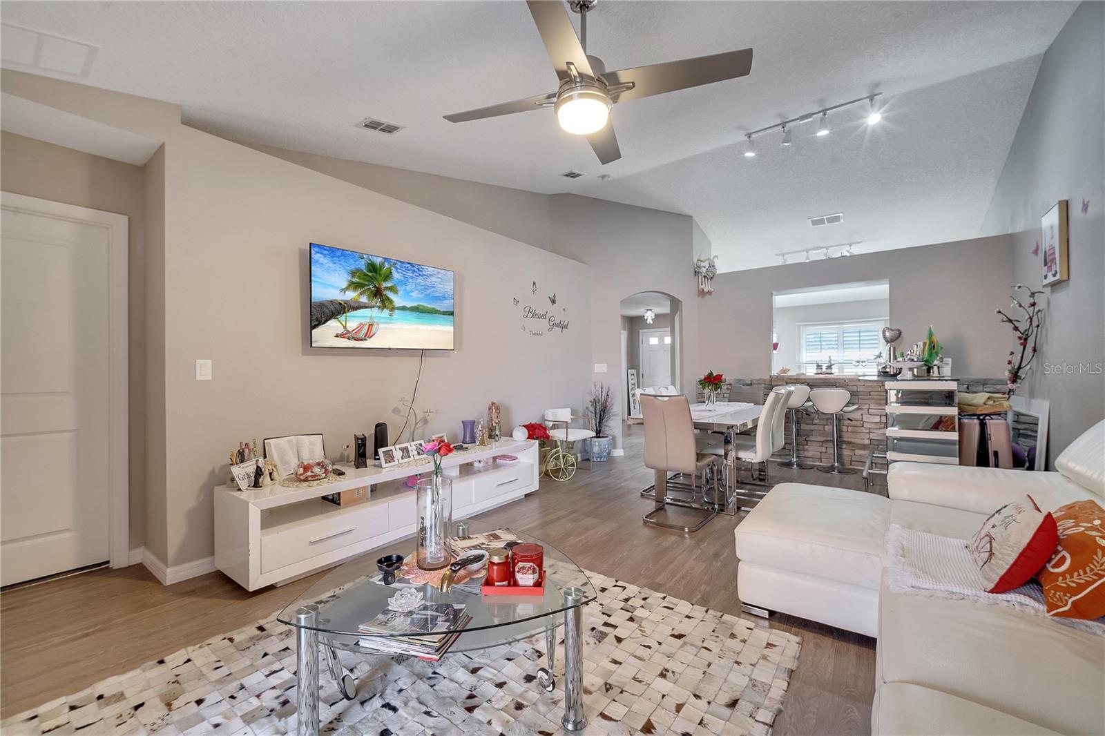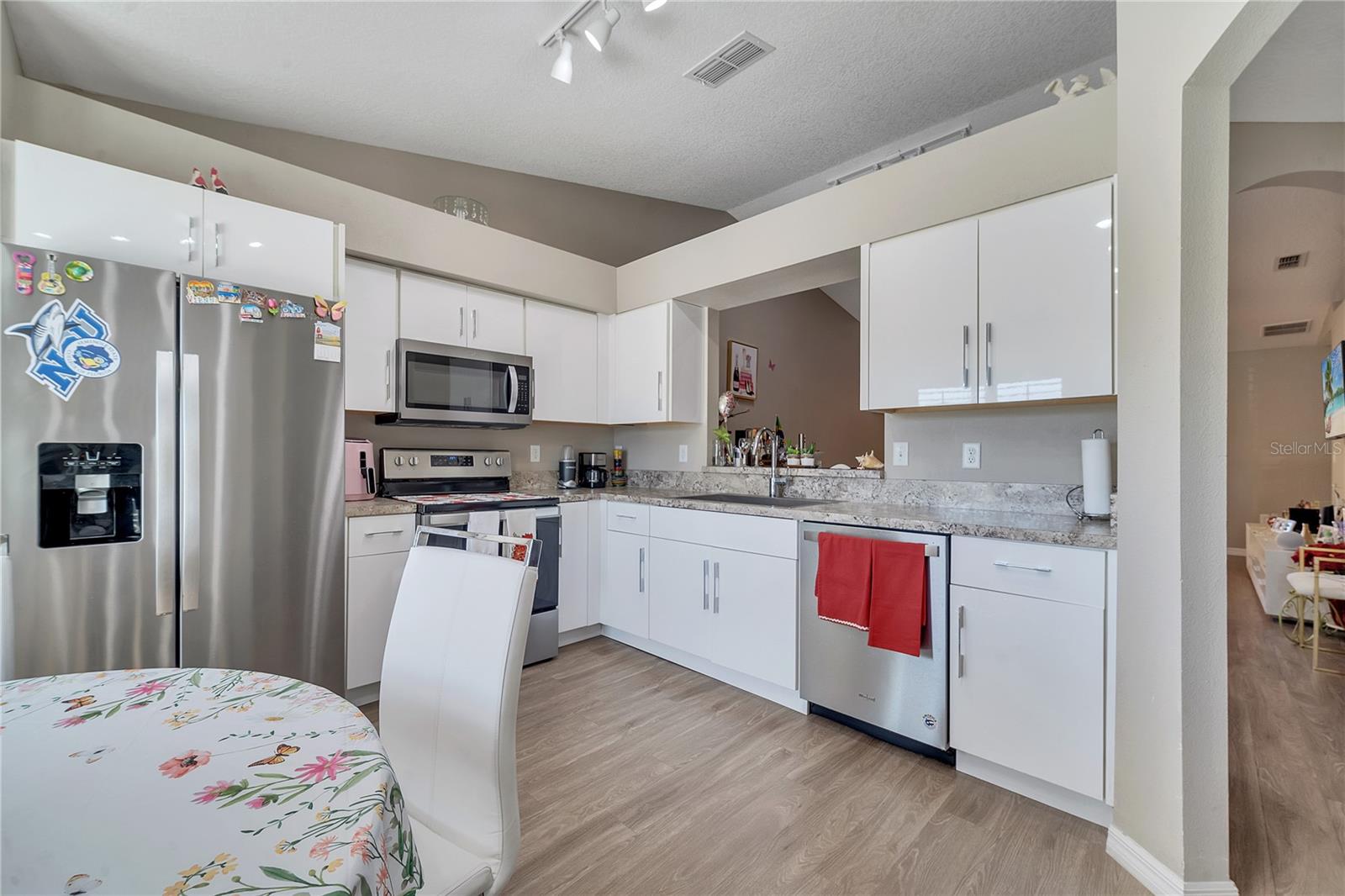 This stunning townhouse offers 3 bedrooms, 2 bathrooms, and wood laminate flooring throughout. The master suite includes two spacious closets and elegant Italian cabinets in the bathrooms. The bright living room features modern lighting, a remote-controlled stainless steel fan, and a charming brick counter, perfect for quick meals or drinks. The porcelain-tiled patio provides a great space for relaxation or entertaining activities with friends. The kitchen includes NEW Italian cabinets, a large counter with a built-in wine cellar, and ample pantry space. All appliances are in excellent working condition. The garage includes a laundry area, with dryer and a brand new washer. Central AC with a thermostat ensures year-round comfort. A lovely garden with pine trees and flowers greets you at the entrance. The community amenities include a swimming pool, a scenic lake for walks or pet outings, and a playground. Conveniently located near great schools, Publix, Walmart, and just 30 minutes from Orlando International Airport, Disney, Universal, Downtown Orlando, and more. Furniture can be negotiated. Don’t miss this opportunity, whether you’re a resident or investor. Schedule your visit today!