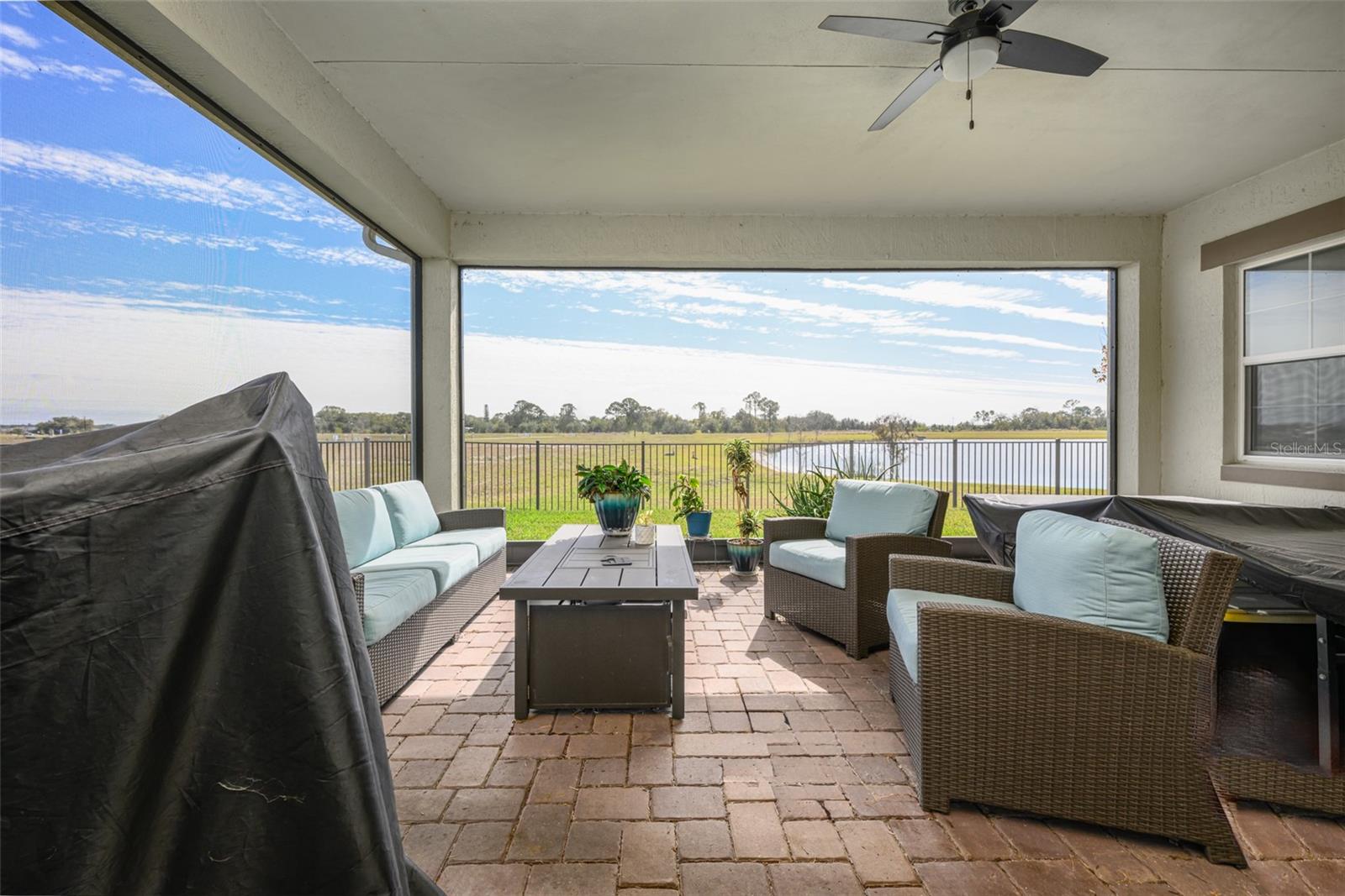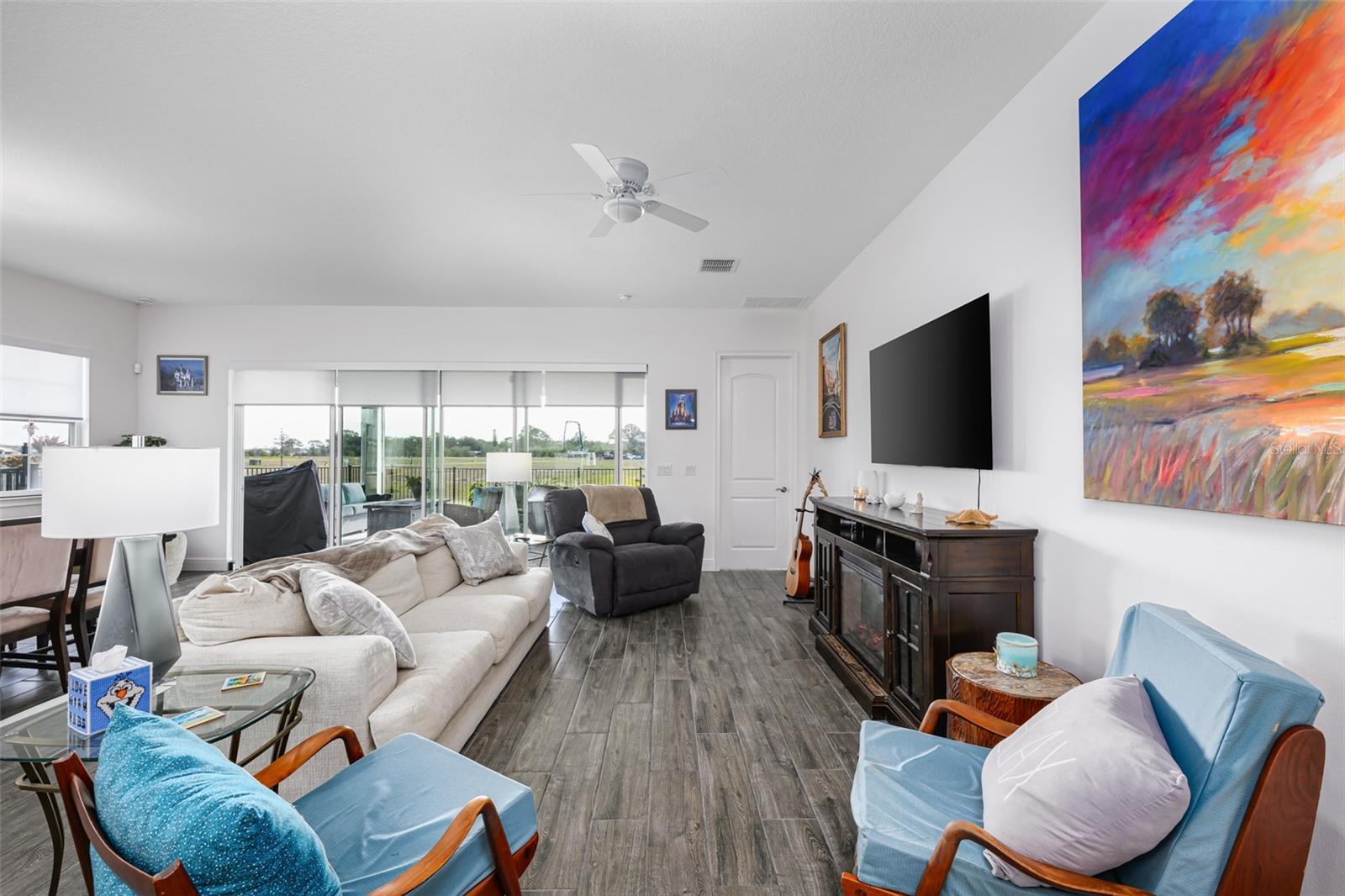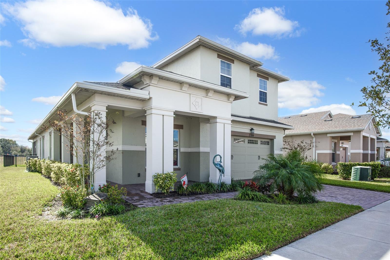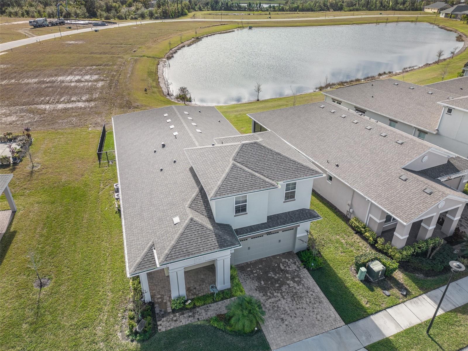 Beautiful 4 bedroom, 4 bathroom home in the highly sought after Twin Lakes 55+ Active lifestyle community. The Marco 2 is a two story beautiful home with a versatile floor plan. When you step inside, you will be greeted with 10 foot ceilings and upgraded ceramic tile throughout the home. As you enter the kitchen you will be greeted with an upgraded kitchen with stainless steel appliances, convection oven, gas stove, 42" upgraded cabinets, quartz countertops, glass tile backsplash, walk-in pantry and a 10 foot island with upgraded pendant lights that easily seats 6 people. The Living Room/Dining Room combo has upgraded light fixtures and recess lighting. The sliding glass doors that lead out to the screened porch, open all the way for the ultimate indoor/outdoor Florida living. Out on the screened porch you can sit and enjoy the view of the pond in the back while drinking your morning coffee. The master bedroom has a large walk-in shower with glass doors and a large walk-in closet with a newly installed closet organizing system. There are two more bedrooms on the first floor. Bedroom 2 includes a full bath and a walk-in closet. The 3rd full bath is in the hallway to also be used as a guest bathroom. Bedroom 3 is just down the hall with a nice size closet. Off Bedroom 3 you'll find the office area that is already piped for water if you would like to add a wet bar. The stairs lead up to the second floor where you will find the 4th bedroom and 4th bathroom. This flexible room is currently being used as the owner's media room and office. Amenities include a resort style pool and lap pool, 20,000 square foot Clubhouse, fitness center, tennis courts, putting green, walking trails, pickle ball court, fishing and pontoon boats to use on Live Oak Lake. The community has many active and socializing activities for residents to connect with each other. This versatile home could be a wonderful space for multiple family members or friends who wish to live together. Close to Lake Nona Medical City, Orlando International airport, Theme parks, beaches and downtown Orlando. This house is a must see.