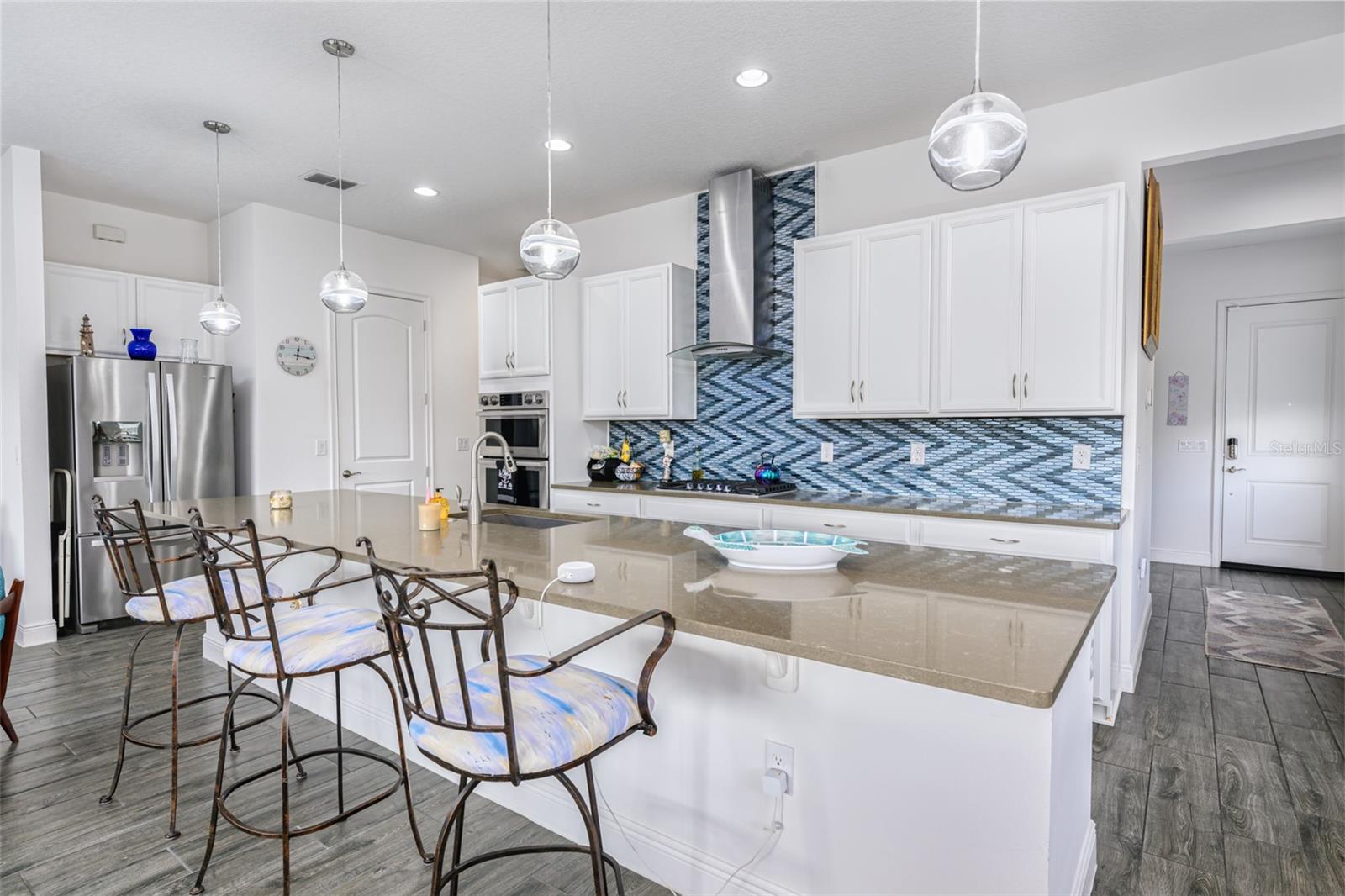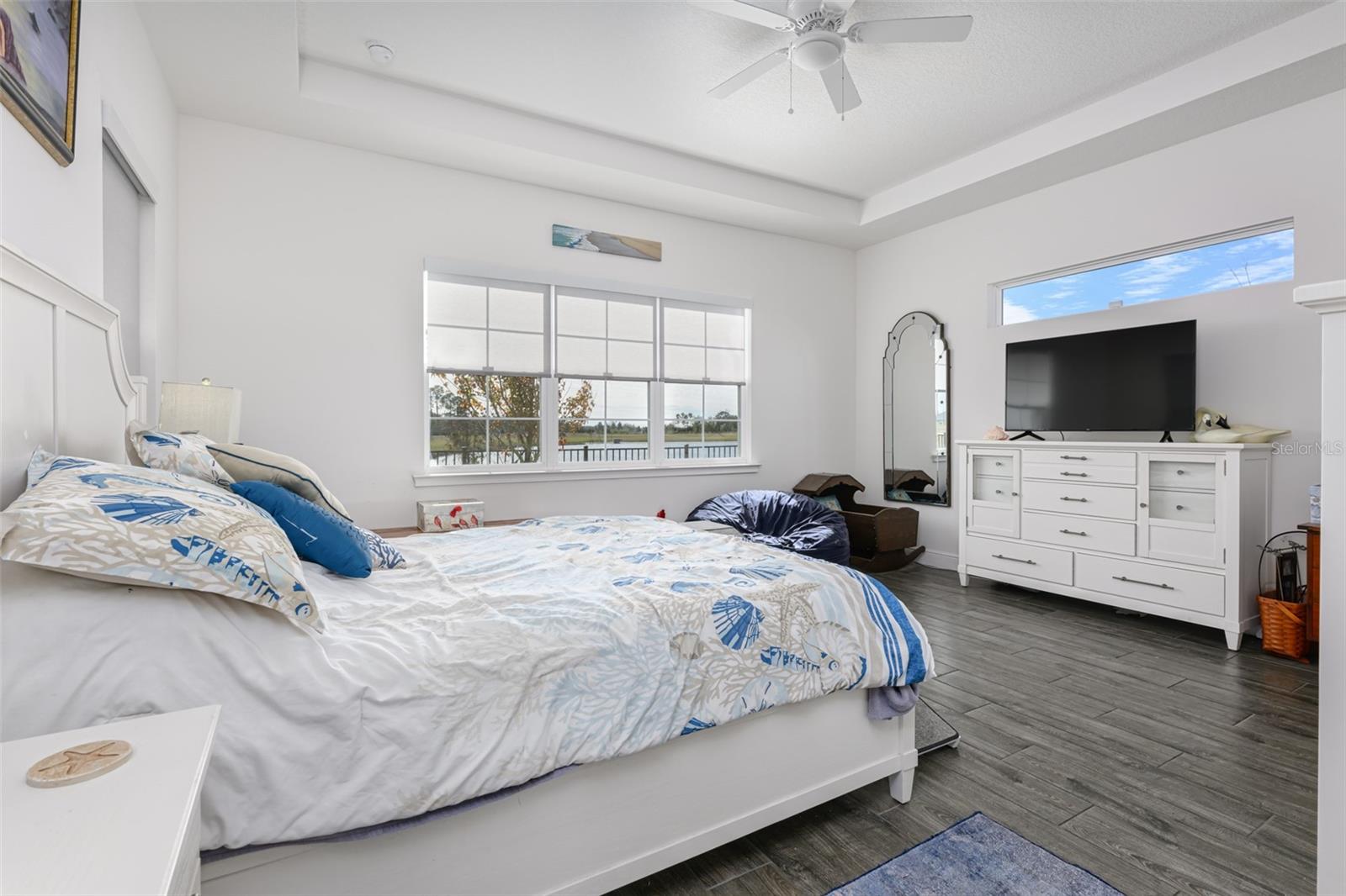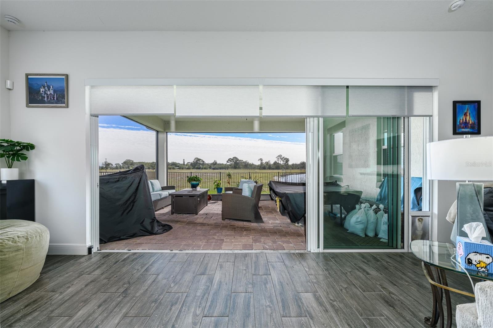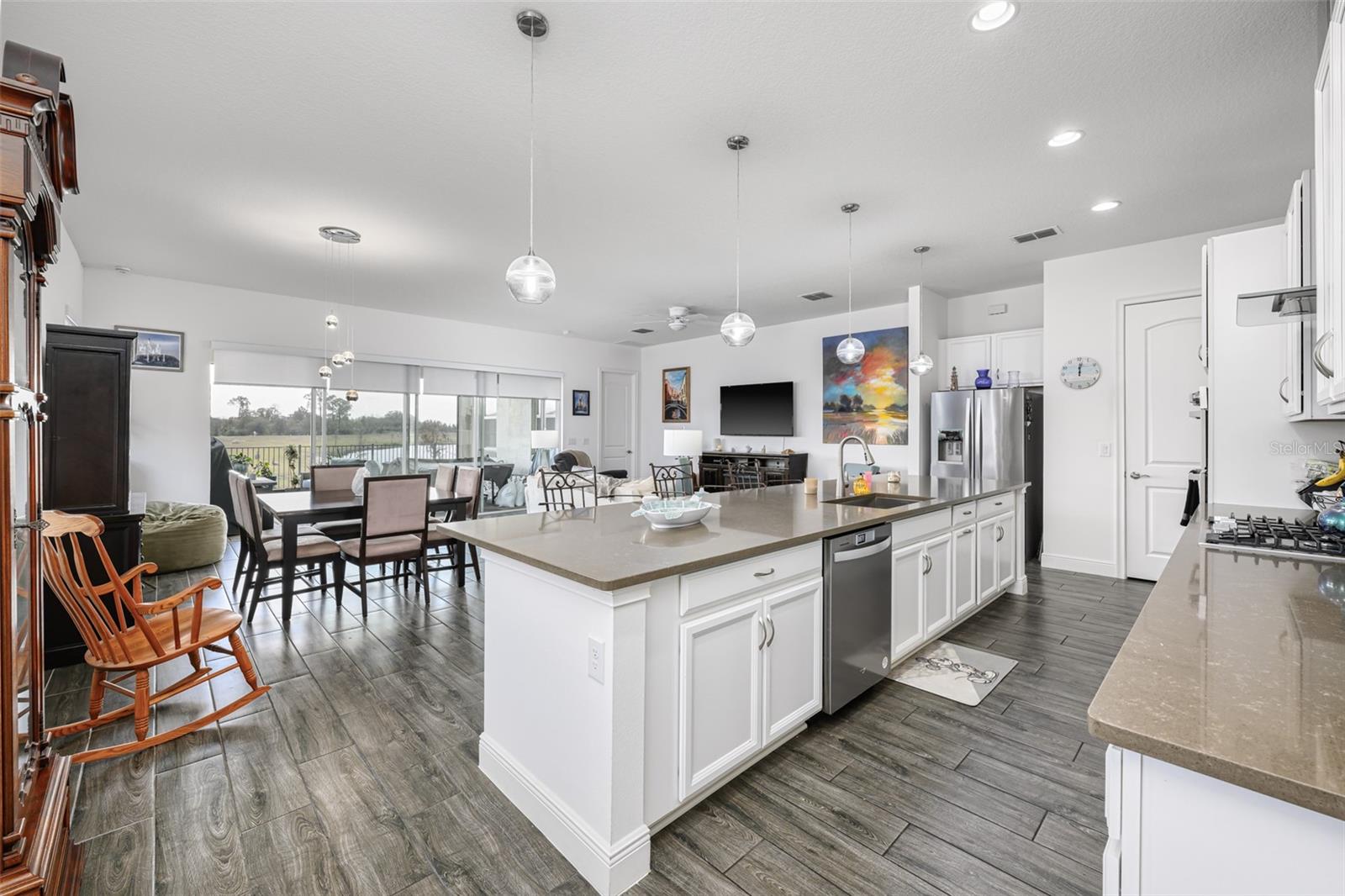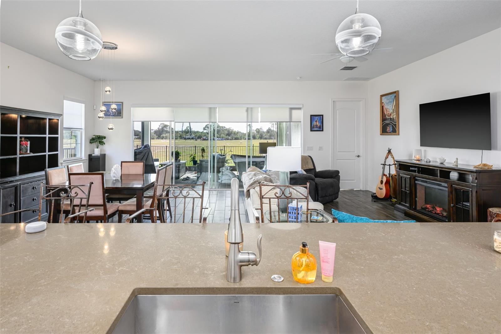 Beautiful 4 bedroom, 4 bathroom home in the highly sought after Twin Lakes 55+ Active lifestyle community. The Marco 2 is a two story beautiful home with a versatile floor plan. When you step inside, you will be greeted with 10 foot ceilings and upgraded ceramic tile throughout the home. As you enter the kitchen you will be greeted with an upgraded kitchen with stainless steel appliances, convection oven, gas stove, 42" upgraded cabinets, quartz countertops, glass tile backsplash, walk-in pantry and a 10 foot island with upgraded pendant lights that easily seats 6 people. The Living Room/Dining Room combo has upgraded light fixtures and recess lighting. The sliding glass doors that lead out to the screened porch, open all the way for the ultimate indoor/outdoor Florida living. Out on the screened porch you can sit and enjoy the view of the pond in the back while drinking your morning coffee. The master bedroom has a large walk-in shower with glass doors and a large walk-in closet with a newly installed closet organizing system. There are two more bedrooms on the first floor. Bedroom 2 includes a full bath and a walk-in closet. The 3rd full bath is in the hallway to also be used as a guest bathroom. Bedroom 3 is just down the hall with a nice size closet. Off Bedroom 3 you'll find the office area that is already piped for water if you would like to add a wet bar. The stairs lead up to the second floor where you will find the 4th bedroom and 4th bathroom. This flexible room is currently being used as the owner's media room and office. Amenities include a resort style pool and lap pool, 20,000 square foot Clubhouse, fitness center, tennis courts, putting green, walking trails, pickle ball court, fishing and pontoon boats to use on Live Oak Lake. The community has many active and socializing activities for residents to connect with each other. This versatile home could be a wonderful space for multiple family members or friends who wish to live together. Close to Lake Nona Medical City, Orlando International airport, Theme parks, beaches and downtown Orlando. This house is a must see.