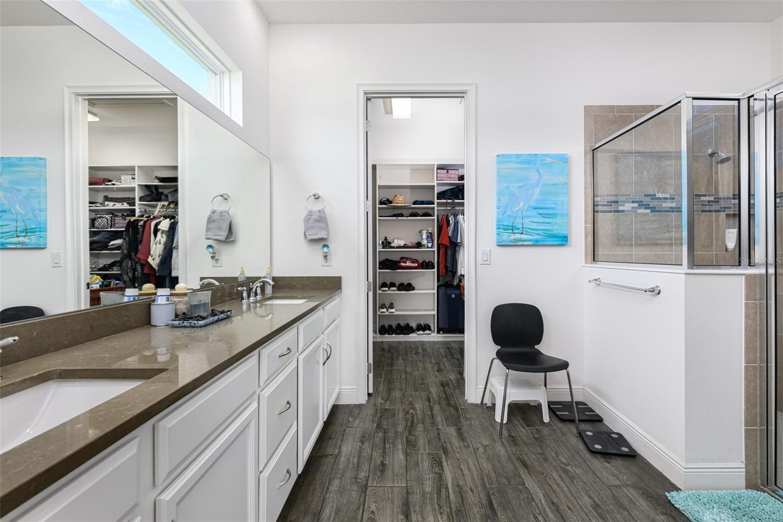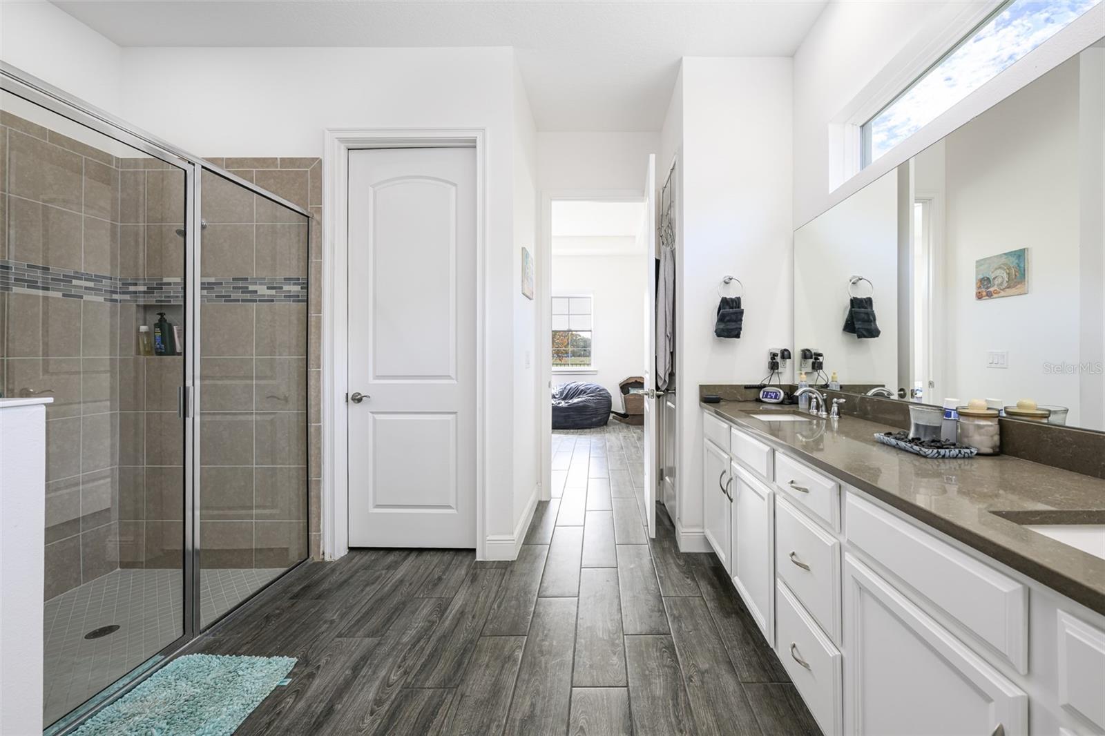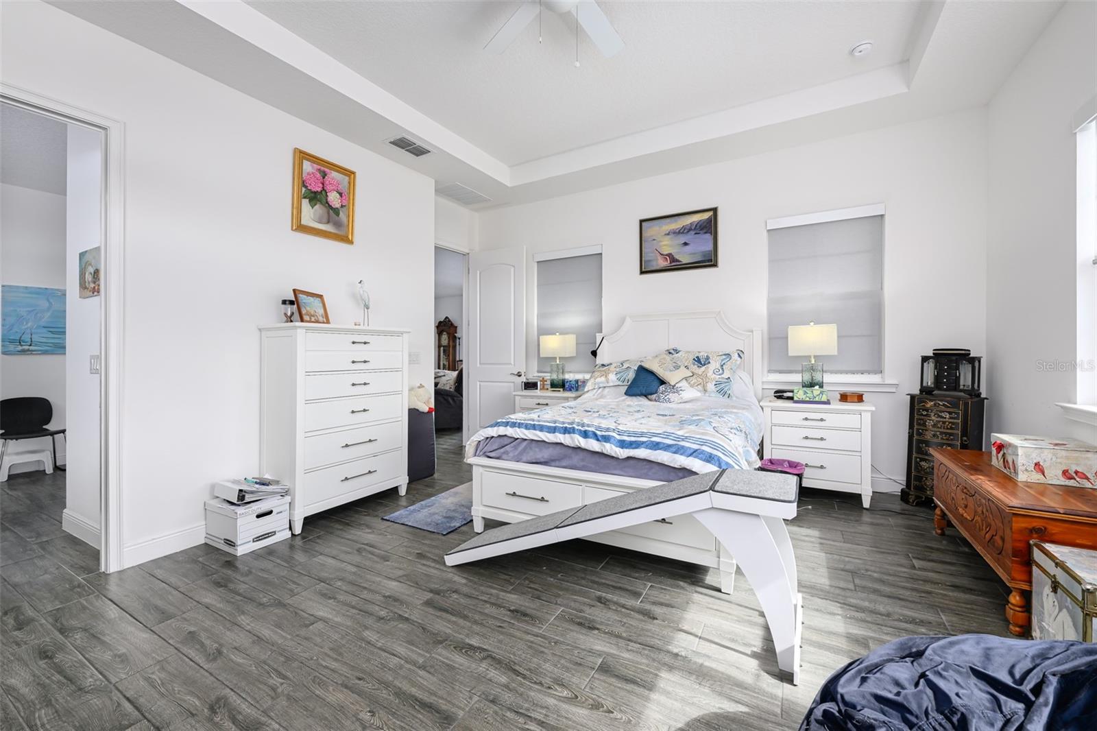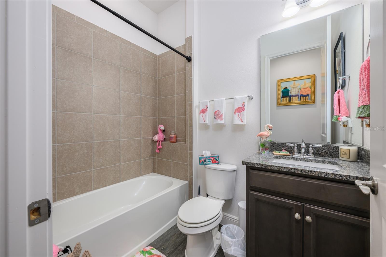 Beautiful 4 bedroom, 4 bathroom home in the highly sought after Twin Lakes 55+ Active lifestyle community. The Marco 2 is a two story beautiful home with a versatile floor plan. When you step inside, you will be greeted with 10 foot ceilings and upgraded ceramic tile throughout the home. As you enter the kitchen you will be greeted with an upgraded kitchen with stainless steel appliances, convection oven, gas stove, 42" upgraded cabinets, quartz countertops, glass tile backsplash, walk-in pantry and a 10 foot island with upgraded pendant lights that easily seats 6 people. The Living Room/Dining Room combo has upgraded light fixtures and recess lighting. The sliding glass doors that lead out to the screened porch, open all the way for the ultimate indoor/outdoor Florida living. Out on the screened porch you can sit and enjoy the view of the pond in the back while drinking your morning coffee. The master bedroom has a large walk-in shower with glass doors and a large walk-in closet with a newly installed closet organizing system. There are two more bedrooms on the first floor. Bedroom 2 includes a full bath and a walk-in closet. The 3rd full bath is in the hallway to also be used as a guest bathroom. Bedroom 3 is just down the hall with a nice size closet. Off Bedroom 3 you'll find the office area that is already piped for water if you would like to add a wet bar. The stairs lead up to the second floor where you will find the 4th bedroom and 4th bathroom. This flexible room is currently being used as the owner's media room and office. Amenities include a resort style pool and lap pool, 20,000 square foot Clubhouse, fitness center, tennis courts, putting green, walking trails, pickle ball court, fishing and pontoon boats to use on Live Oak Lake. The community has many active and socializing activities for residents to connect with each other. This versatile home could be a wonderful space for multiple family members or friends who wish to live together. Close to Lake Nona Medical City, Orlando International airport, Theme parks, beaches and downtown Orlando. This house is a must see.