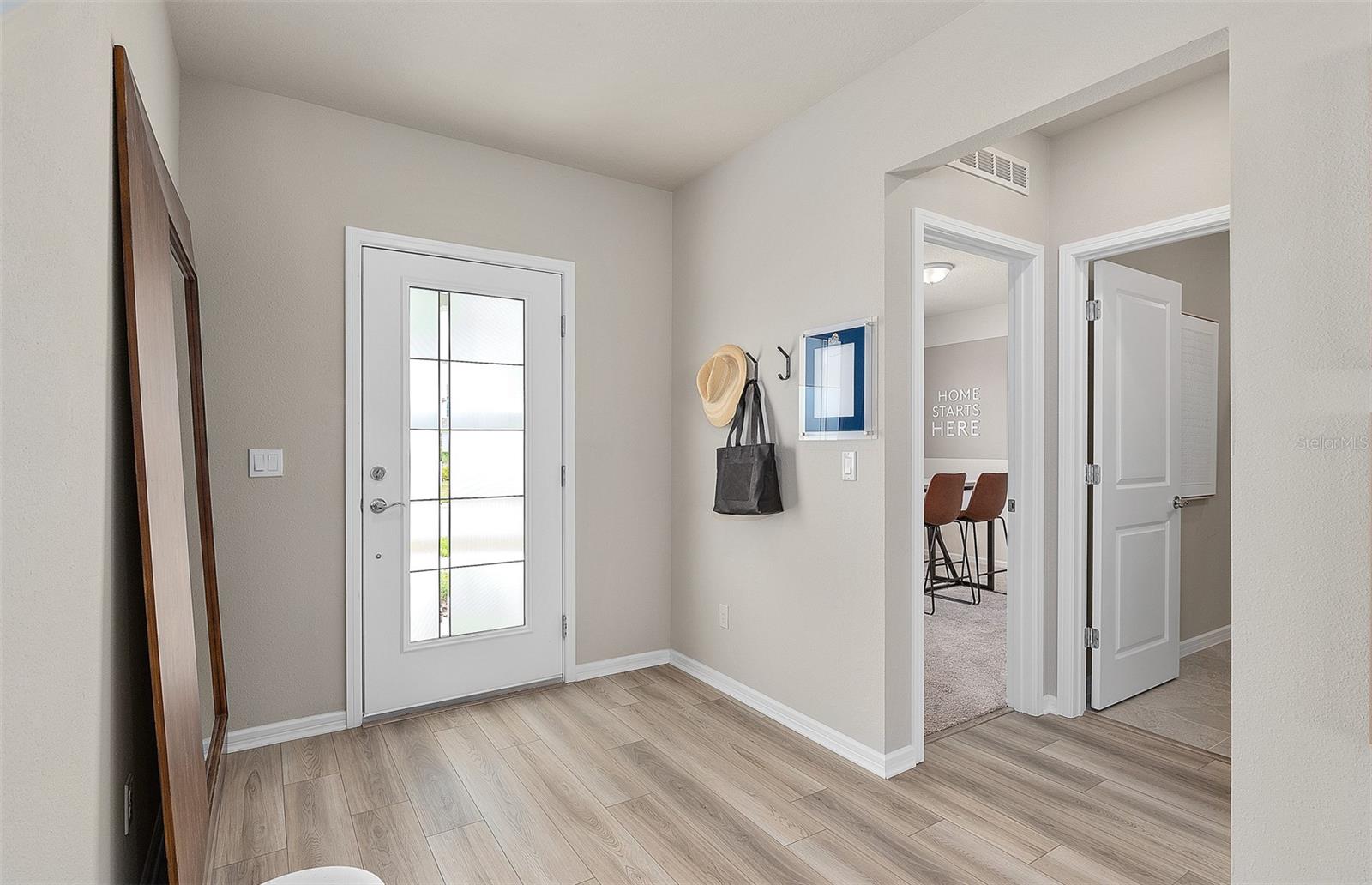 Under Construction. Explore The Landings at Live Oak Lake, a new single-family home community blending city charm with a distinct identity, all without a CDD. Situated between downtown St. Cloud and Lake Nona, it offers private amenities such as a pool & cabana, playground, trails, and playfield amidst serene ponds and conservation homesites. Now Selling Onsite. Introducing the Talbot bungalow by Pulte, a luxurious new construction home that masterfully blends modern design with everyday convenience. This Coastal-inspired home offers 5 bedrooms, 3 bathrooms, a loft, a covered lanai, and a 2-car rear-load garage—creating a space that is both stylish and functional. As you enter, a stunning wrap-around staircase sets the tone, leading into an open-concept living area designed for effortless flow. A private hallway off the foyer features a guest bedroom and full bath, providing a perfect space for visitors. The heart of the home is an expansive kitchen, café, and gathering room, all with seamless access to the covered lanai, ideal for indoor-outdoor living. The chef’s kitchen is a standout with its large center island, corner walk-in pantry, and Whirlpool stainless steel appliances, including a vented microwave and refrigerator. Elkin stone gray cabinetry, a decorative tile backsplash, and Lagoon quartz countertops add sophistication and practicality to the space. Upstairs, the luxurious owner’s suite is tucked away at the front of the home for ultimate privacy. The spa-inspired en suite bathroom features a glass-enclosed shower, a quartz-topped dual vanity, and a spacious walk-in closet, offering a true sanctuary. Three additional bedrooms, located down their own private hallway, share a full bathroom, ensuring comfort and privacy. The second floor also boasts two linen closets, a laundry room, and a large loft area, perfect for flexible living. Thoughtful luxury touches throughout the home include porcelain tile flooring on the first floor (except for the first-floor bedroom, which is carpeted with plush, stain-resistant Shaw brand carpet), carpeting on the staircase and second-floor bedrooms, a washer/dryer, 2” faux wood blinds, and pre-wiring for pendant lighting. Smart home features like a smart thermostat, smart doorbell, and additional LED downlights make this home as connected as it is beautiful. With its combination of luxury, convenience, and modern design, the Talbot bungalow is the perfect place to live and unwind in style.