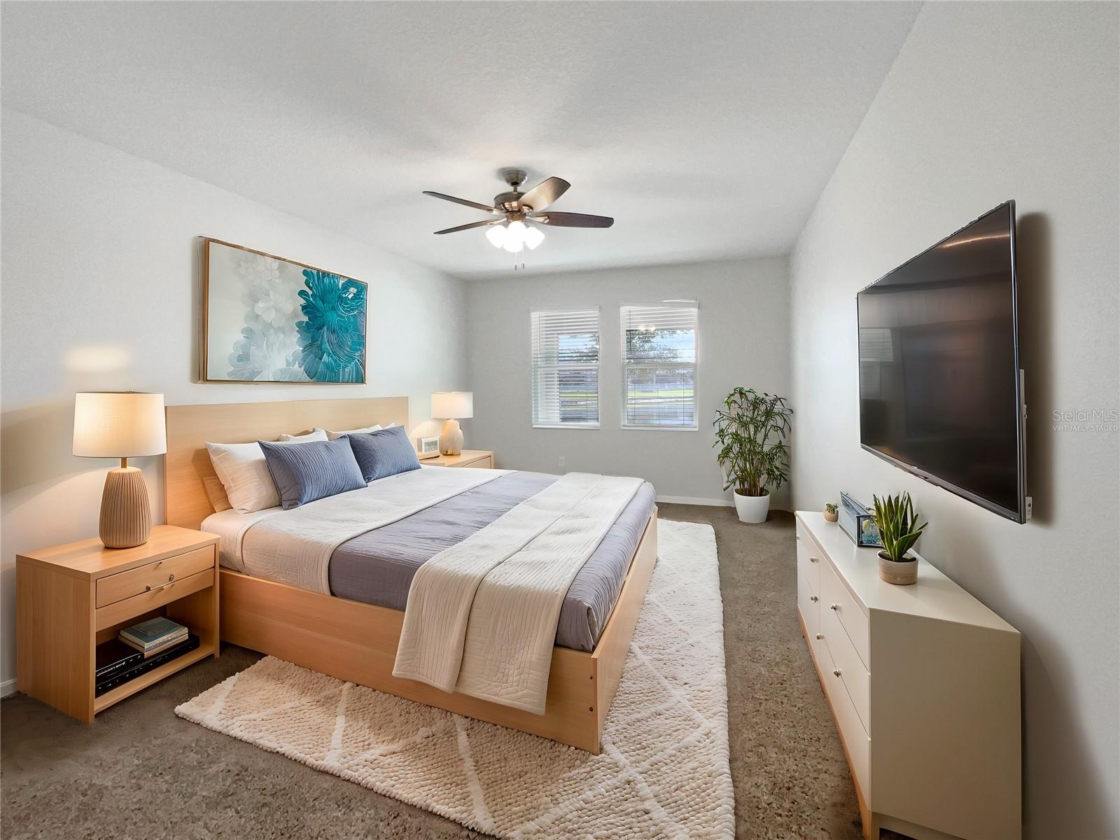 One or more photo(s) has been virtually staged. Welcome to this beautiful property featuring a natural color palette throughout, highlighting the center island in the kitchen and the nice backsplash. The primary bedroom boasts a walk-in closet and the primary bathroom offers double sinks and good under sink storage. Enjoy the covered sitting area in the backyard, perfect for relaxing outdoors. Recent updates include fresh interior and exterior paint, as well as partial flooring replacement in some areas. Don't miss out on this stunning home with modern touches and great amenities!