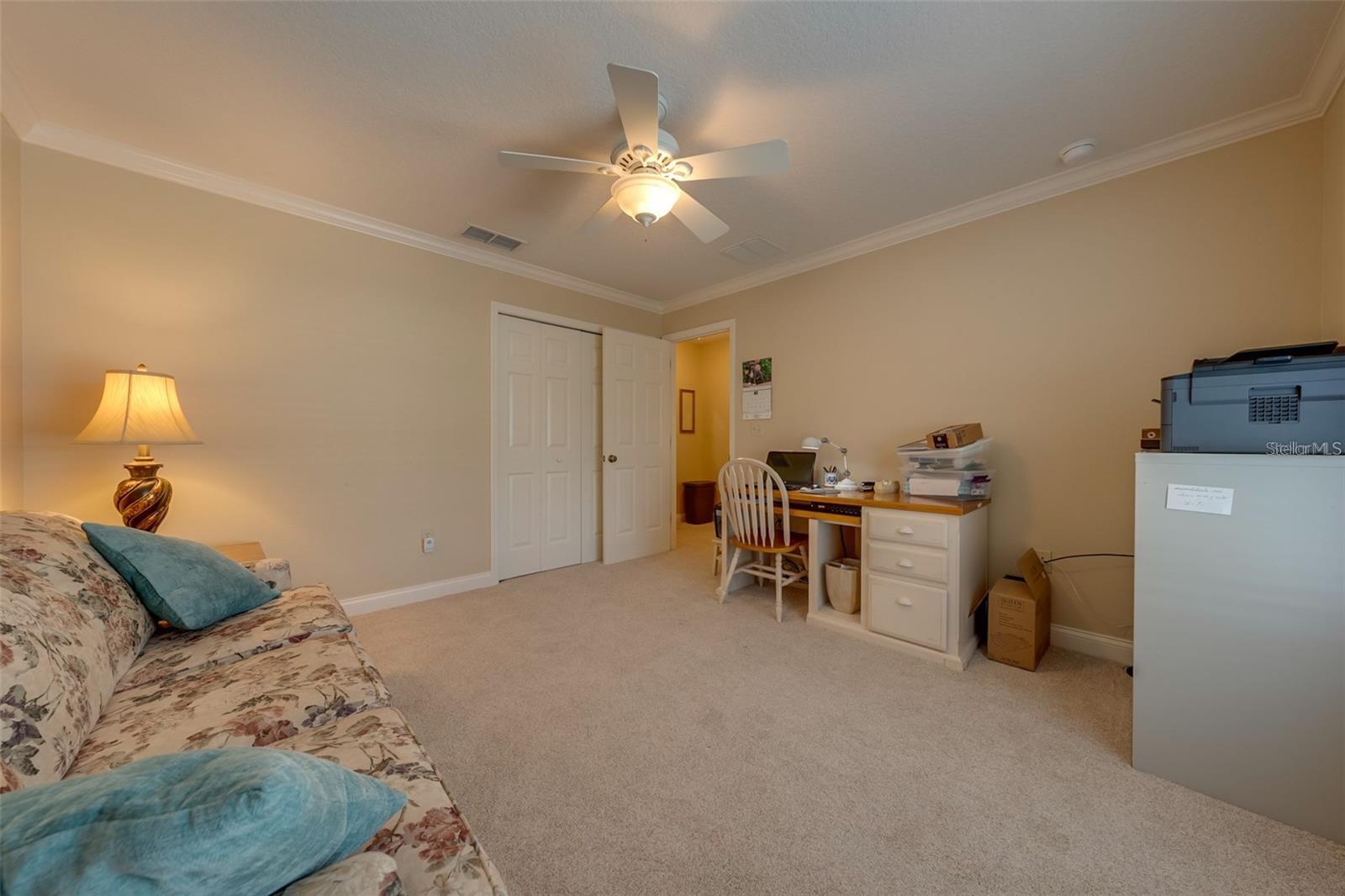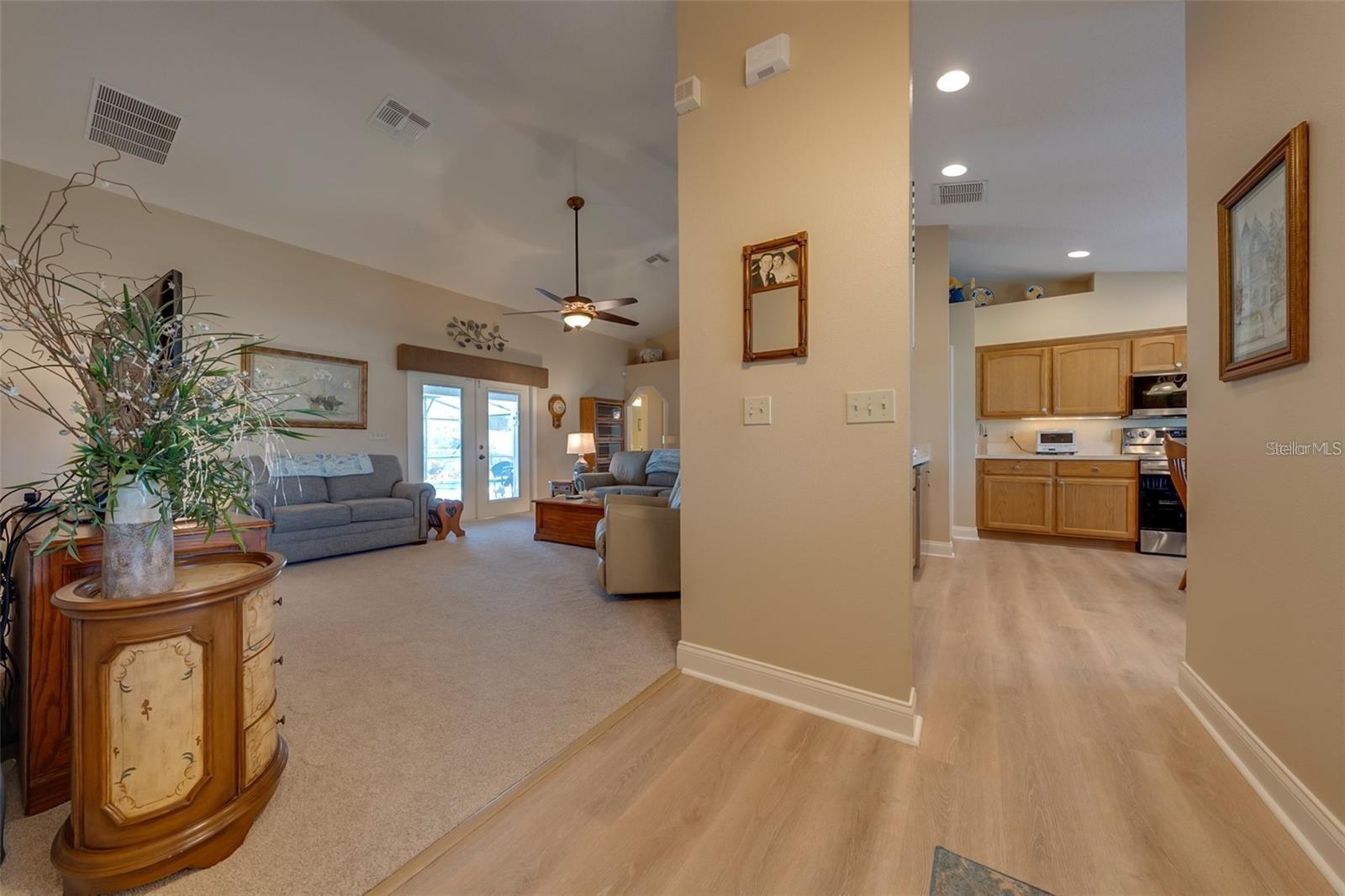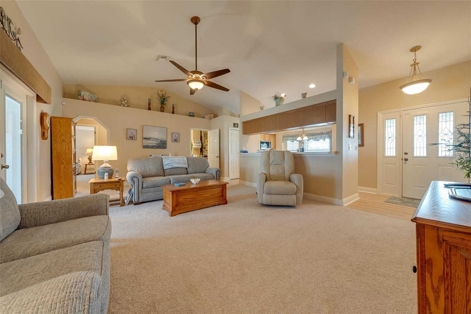 SELLER TO PAY 5,000.00 TOWARDS BUYERS CLOSING COSTS. Seller Motivated" This home is impeccably maintained and as clean as can be. This three-bedroom 2 bath pool home features a formal living room, eat in kitchen, split bedroom plan, covered lanai, bath access to pool area, an inside laundry room, and 2 car garage. The formal dining room can be used as a home office, an additional living room, a child’s playroom or any other purpose you may need if a formal dining room is unnecessary for your family. The room is currently used as a living room and features crown molding, chair rail and 5 ¼ inch baseboards. As you enter the home the dining room is on the left and the kitchen is on your right. The kitchen features a pass through to the living room, an eating space, pull out shelves, a closet pantry, all appliances were replaced in 2023 to include a convection/air fryer oven, a new faucet, garbage disposal replaced 2021, double sinks with reverse osmosis. To the right of the kitchen is the laundry room with shelving and a washer and dryer that were replaced in 2021. Straight through from the entrance is the large living room overlooking the oversized pool and patio area both wired for surround sound. The primary bedroom and bath are off to the left and feature his and her closets, dual sinks, a huge walk-in shower, a bathtub, and a linen closet. The other bedrooms and bath are on the right of the living room and both bedrooms have ceiling fans and crown molding. In the hall you have another linen closet. The owner has replaced the following: Pool Heater 2022, HVAC system inside and out 2018, Water heater 2018, garage door opener 2023, Roof 2022, top of the line carpet. <iframe width="966" height="543" src="https://my.matterport.com/show/?m=aYqwjomc6tE" title="Property Address" frameborder="0" allow="accelerometer; autoplay; clipboard-write; encrypted-media; gyroscope; picture-in-picture; web-share" referrerpolicy="strict-origin-when-cross-origin" allowfullscreen></iframe>