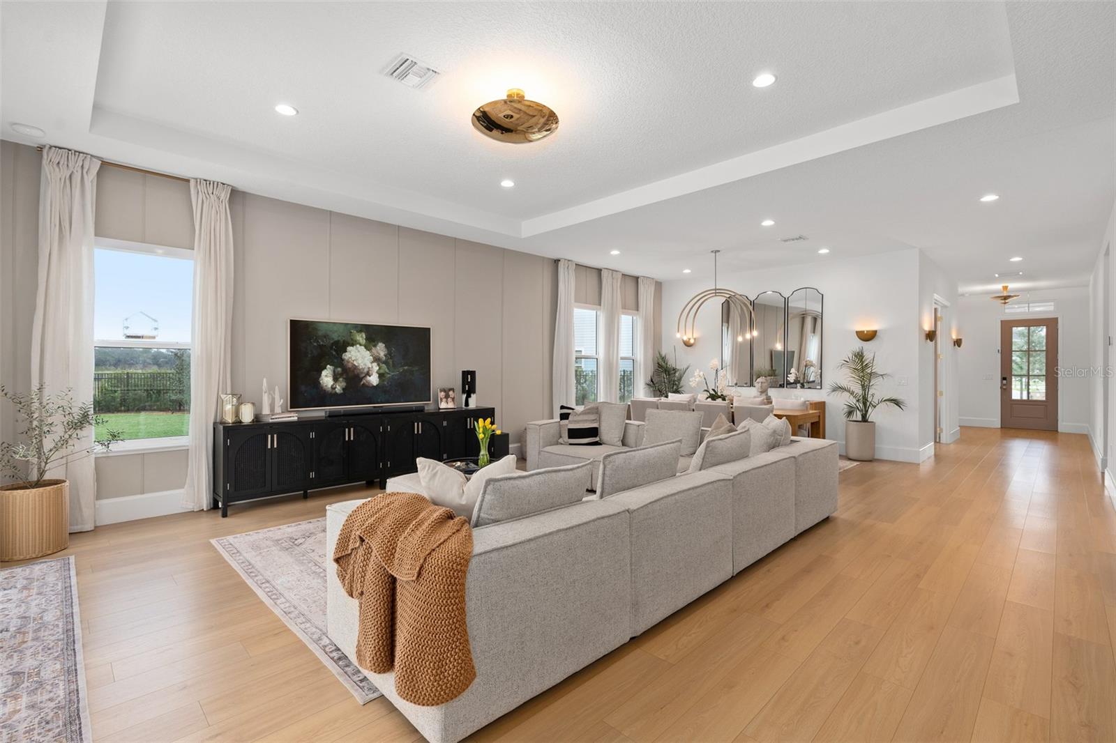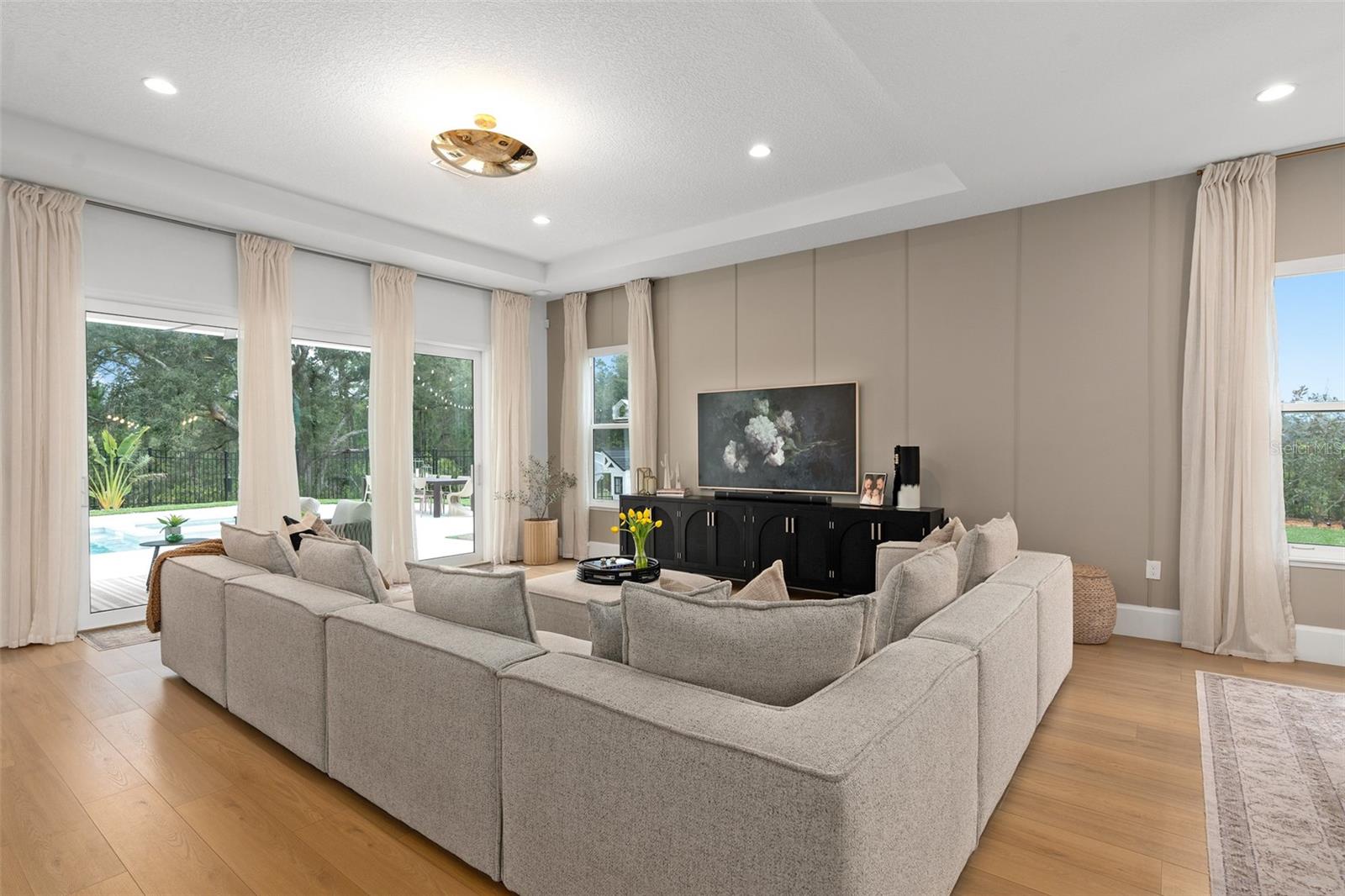 Welcome to the NatureHood. Discover the perfect blend of luxury and nature in this exquisite Toll Brothers home, nestled in the highly sought-after Weslyn Park community inside Sunbridge—a place where modern living meets the beauty of the outdoors. This 4-bedroom + office (5th bedroom), 3.5-bathroom home is situated on one of the largest cul-de-sac lots, backing up to the serene Split Oak Forest for ultimate privacy and breathtaking views. Designed for both elegance and functionality, the home offers a spacious 3-car garage with a drop zone, an oversized saltwater pool and spa with a sun shelf, and a fenced backyard with extended patio, upgraded landscaping, irrigation, and gutters. Modern conveniences include a water softener, solar panels, EV charger, automated blinds and smart appliances. The home boasts with seamless flooring throughout, with no transitions between rooms, 7-inch baseboards, 8-foot doors, and upgraded brass door handles that add a refined touch. Designer chandeliers and additional recessed lighting elevate the ambiance, while all bathrooms have been tastefully upgraded. The primary suite is a true retreat, featuring dual shower heads and a freestanding tub. Step into a home where luxury meets sustainability, and nature is at your doorstep. Experience Naturehood in the heart of Sunbridge.
