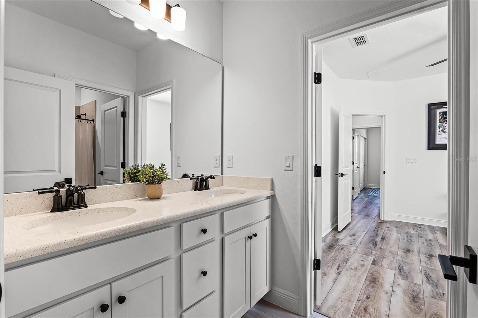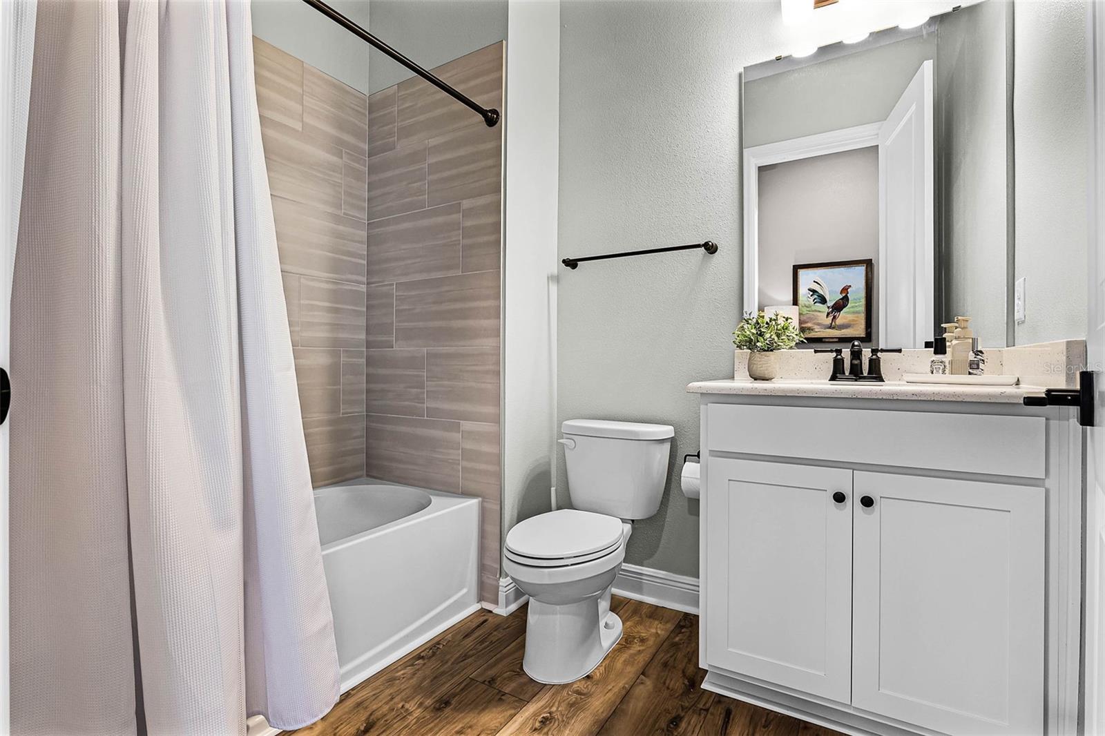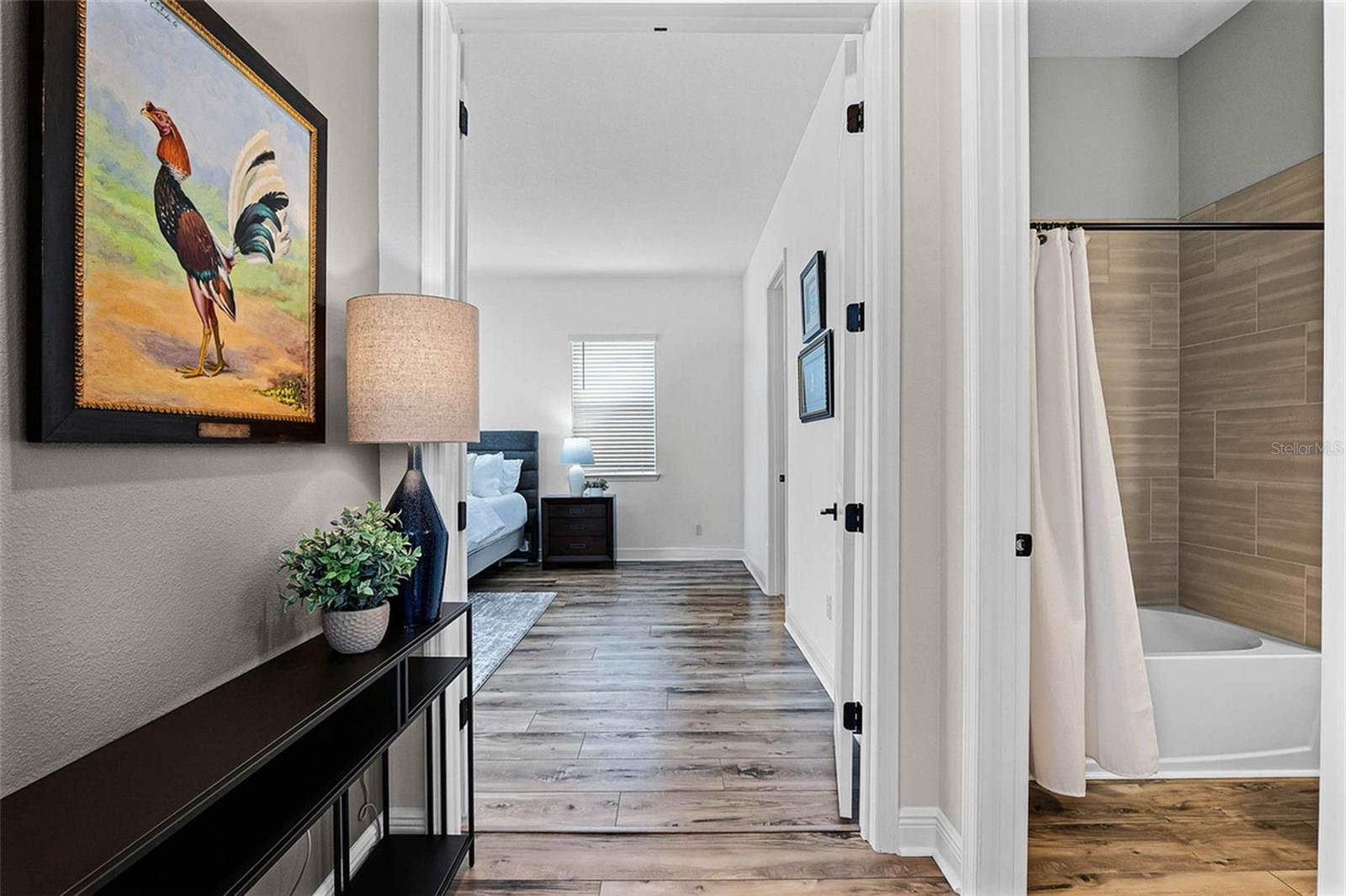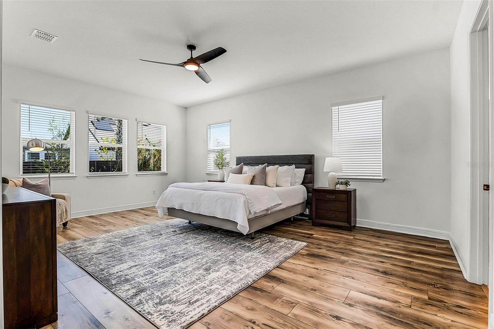 Welcome to 6439 Trailblaze Bend, a stunning two-story home in the breathtaking, nature-inspired master-planned community of Sunbridge | Weslyn Park—this home is an absolute showstopper. Why wait MONTHS to build and SETTLE for builder-basic upgrades when you can have a truly custom, TURN-KEY home that’s move-in ready and dialed in to perfection? No to-do list, no compromises—just unpack and enjoy! Built in 2023, this gorgeous residence features 5 spacious bedrooms and 4.5 luxurious bathrooms, offering a perfect blend of comfort and elegance. Situated on an OVERSIZED CORNER homesite, this property is beautifully enhanced by a black aluminum fence, creating a private oasis for relaxation and entertainment. One of the unique highlights is the SEPARATE CASITA, complete with its own half bathroom, ideal for a home office or accommodating guests. As you step inside, you’re greeted by soaring two-story ceilings and an abundance of windows that fill the space with natural light. The open-concept design flows seamlessly into a gourmet kitchen, featuring quartz countertops, white shaker-style cabinets, and a stunning tile backsplash, perfect for culinary enthusiasts. The primary suite is conveniently located on the first floor, boasting a private entrance with double doors, a spacious layout, and a spa-like owner's bath with a frameless walk-in shower, dual Quartz vanity sinks, and a large custom closet. An additional FULL bath on this level is perfect for future pool plans. The NEW hardwood staircase leads to a generous bonus room, perfect for a game room or media area, along with three more bedrooms—one with an en suite bath and the others sharing a well-appointed bathroom. This home is rich in upgrades, including luxury vinyl plank flooring throughout, a water softening system, extensive built-in cabinetry for storage, and an oversized laundry room with quartz countertops and a laundry tub. The two-car tandem garage offers ample space for storage. Step outside to discover an extended paver patio, professionally DESIGNED landscaped front and back yards, and a spacious backyard lanai pre-plumbed for a future summer kitchen, making it an entertainer’s dream. Enjoy the tranquility of the neighborhood with easy access to the community pool and park, all while being free from nearby construction. Don’t miss this incredible opportunity to own a beautifully designed home in a fantastic location!