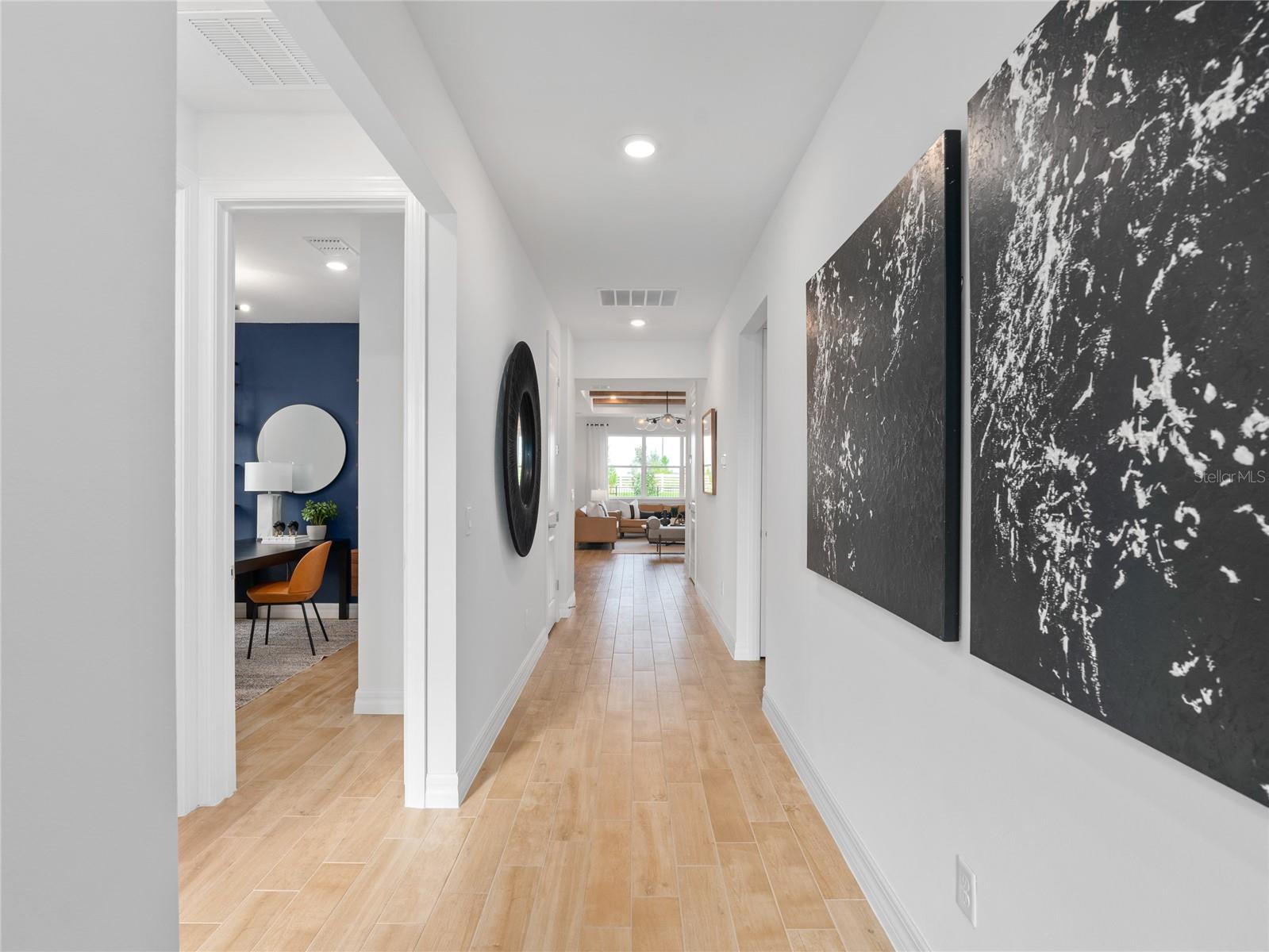 Under Construction. Anticipate the arrival of Pulte Homes at Bridgewalk, offering new construction single-family homes. Experience the charm and secluded ambiance of this boating community and relish in the ease of reaching Lake Nona's celebrated shopping, dining, and entertainment. Offering a variety of amenities including sports courts, a private boat launch, and more. Now Selling Onsite with 3 Models Open Daily. Welcome to your dream home – the Highgate by Pulte. This stunning new construction features 4 spacious bedrooms, 2 luxurious bathrooms, and a 2-car garage. With its open-concept design, the kitchen, café, and gathering room seamlessly flow together, leading to a serene covered lanai and private backyard, perfect for entertaining or relaxing in privacy. The chef-inspired kitchen is equipped with Whirlpool stainless steel appliances – including a refrigerator, a convenient walk-in pantry, and a large center island ideal for meal prep and socializing. It’s complemented by elegant Dana White cabinetry, Lagoon quartz countertops, and a charming decorative tile backsplash, with an upgraded sink, faucet, and pendant lighting pre-wiring for added luxury. The private Owner’s Suite includes a large walk-in closet and a spa-like en suite bathroom featuring dual sinks set on a Lagoon quartz-topped vanity, a private water closet, and a spacious frameless glass-door walk-in shower. Three additional bedrooms, a second bathroom, and a well-appointed laundry room are thoughtfully positioned at the front of the home, ensuring ample privacy and space for the whole family. This expansive home is filled with professionally curated design selections, including Florida Mediterranean exterior finishes and pavers at the driveway and lanai. Inside, enjoy upgraded interior wall paint in a Two-Toned Paint City Loft and Pure White by Sherwin Williams, 8' interior doors, Wood-Look Porcelain Tile in the main areas, bathrooms and laundry, and plush, stain-resistant, Magnolia Bloom carpet by Shaw ensures comfort in the bedrooms. For added convenience and peace of mind, the home includes smart doorbell and thermostat technology, security camera pre-wiring, and a host of modern amenities to fit your lifestyle. For the finishing touch, this home is complete with Gutters, Garage Epoxy Finish, 2” faux wood blinds and washer/dryer for added convenience from move-in day and beyond! This expansive Highgate home offers the perfect balance of comfort, style, and functionality – schedule your tour today!