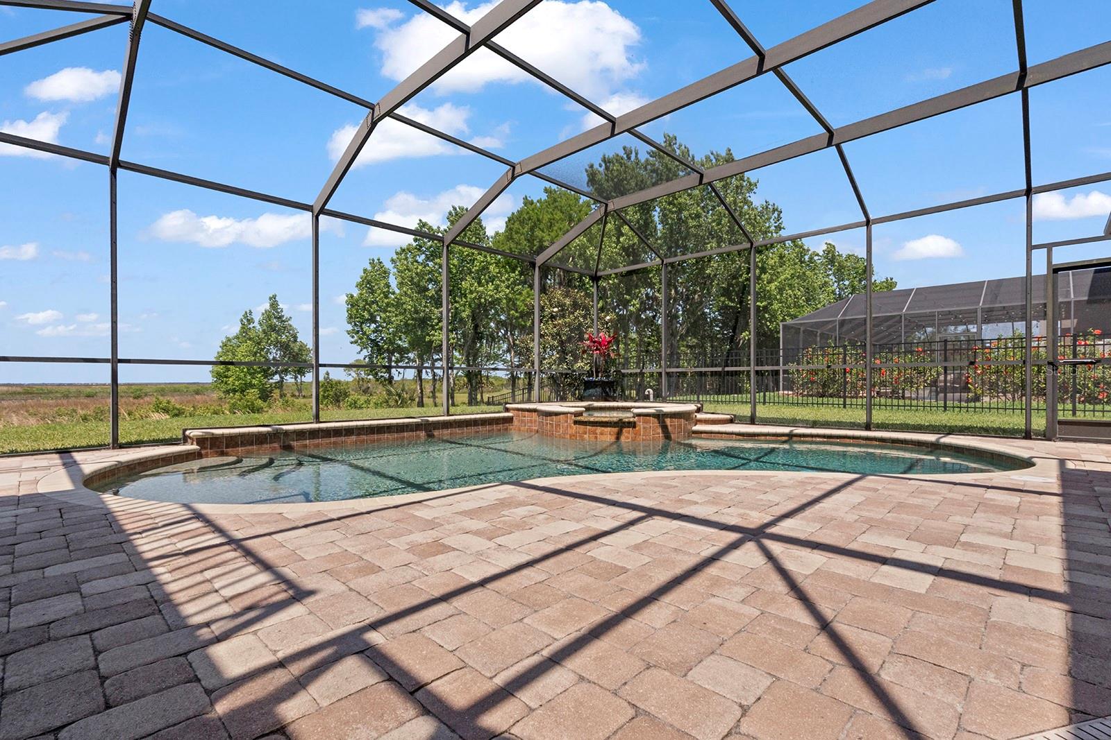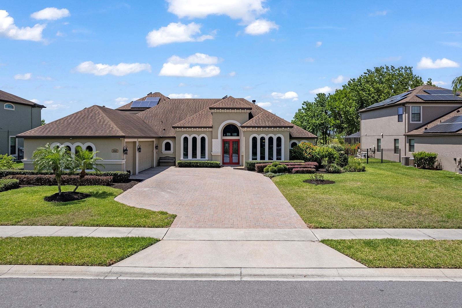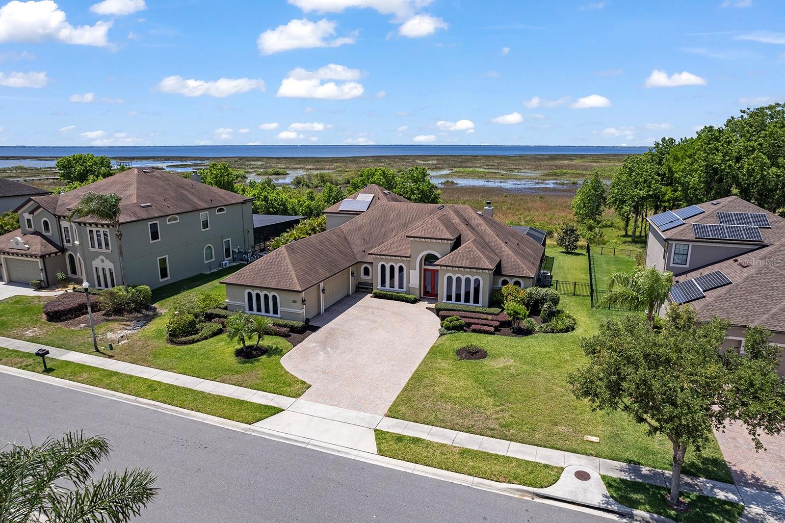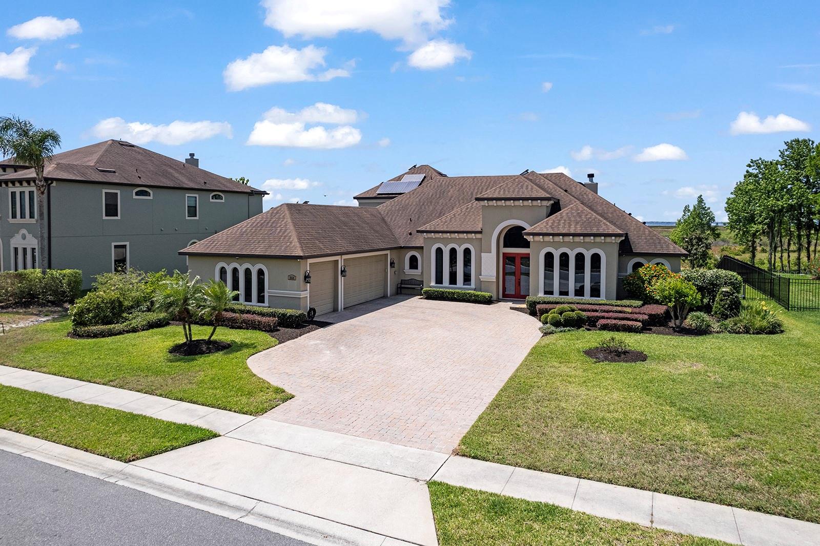 Luxury, location, and design come together at 2522 Oakbank Ct. Experience elevated lakefront living in this award-winning custom home, where every detail was designed to impress. This former Parade of Homes winner is a rare lakefront gem in the gated Lake Pointe of Toho community. Custom-built in 2013 by Vintage Estate Homes as their model, this 4-bedroom, 3 full and 2 half-bath home offers 3,378 sq ft of luxury on nearly half an acre with 100 feet of direct frontage on East Lake Toho. The curb appeal is equally impressive, with a beautifully maintained and landscaped front yard and an extended brick paver driveway that leads to an elegant, arch-framed double front door entry. Just off the grand foyer, you'll find a dedicated office and a formal dining room—perfect for working from home and hosting guests. From the moment you step inside, your eyes are drawn straight to the stunning lake views framed by oversized, tinted hurricane-rated windows that fill the home with natural light. Inside, you'll find soaring 14-ft ceilings, hardwood and tile flooring, 8-ft doors throughout, and high-end finishes including espresso wood soft-close cabinetry and granite in the kitchen and Caesar Stone countertops in the wet bar and all the bathrooms. The chef’s kitchen features an oversized granite island, built-in convection oven and microwave, French-style refrigerator, and a double door closet pantry. The family room includes custom built-ins, a wood-burning fireplace, and expansive breath-taking views of the lake and sunset. The primary suite is a true retreat, with wood-beamed cathedral ceilings, picturesque pool and lake views, and a spa-style bath with soaking tub, walk-in shower, dual sinks, designer tile work and a massive walk-in closet. Enjoy a smart split floor plan with the three additional bedrooms located on the opposite side of the home—each with walk-in closets, ceiling fans, and easy access to two full baths, including a Jack & Jill layout that also serves as a pool bath. Upstairs, you’ll find a dedicated half bath, a large loft/bonus room with wet bar and mini frig, and access to a 34-ft balcony overlooking the water. This easily could be made into a 5th bedroom! Outdoor living is elevated with a 37-ft screened patio, heated pool and spa, brick pavers, and lake views from nearly every angle. Additional features include a 3-car garage that is AC/heat regulated with epoxy flooring and pull-down attic access with floored storage, 48 paid off solar panels, solar attic fans, an upgraded water heater with circulation pump, remote-controlled ceiling fans, hardwired security cameras, and alarmed patio doors. Within the last year, updates include new overhead/bathroom lights/fans, an AC unit, fence panels on both sides of the front of the home and a new variable speed pool pump. Community amenities include a pool, tennis/pickleball and basketball courts, playground and covered tot lot, BBQ grills and picnic benches, walking trails and more. The current homeowners are only relocating due to a job transfer and have truly cherished every moment in this home—especially the priceless lakefront views and daily sightings of Florida’s beautiful wildlife. Just minutes from Lake Nona, top hospitals, and Orlando International Airport, this one-of-a-kind lakefront home is a rare opportunity in a high-demand location. Disney, Universal and Seaworld are all only about a 40 min drive and Cocoa Beach is a short hour drive. Schedule your private showing today.
