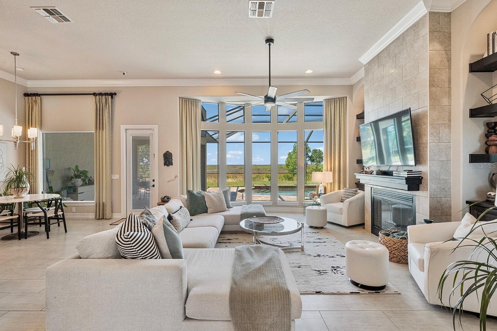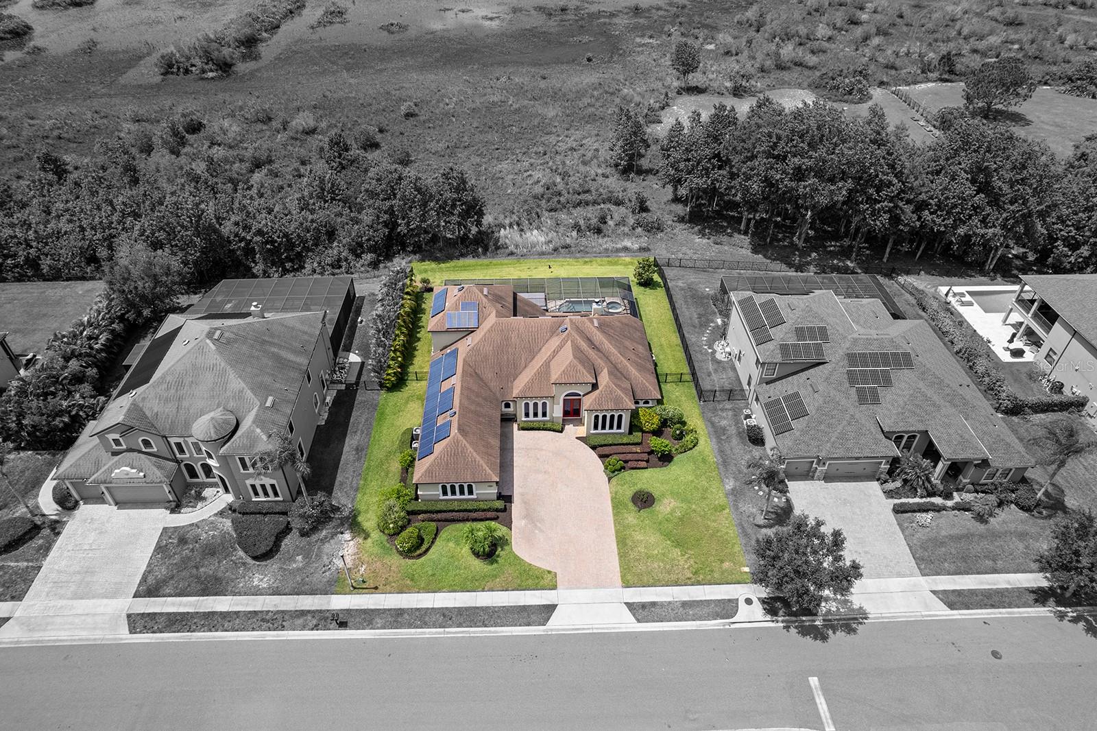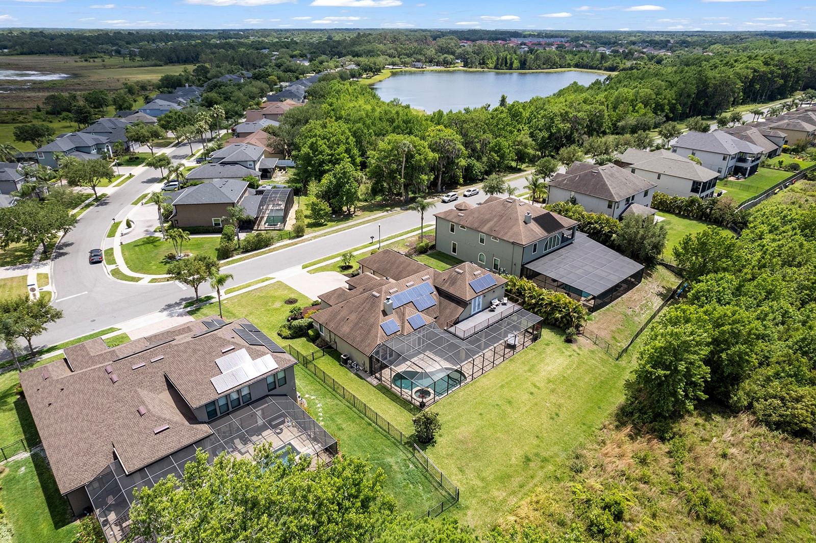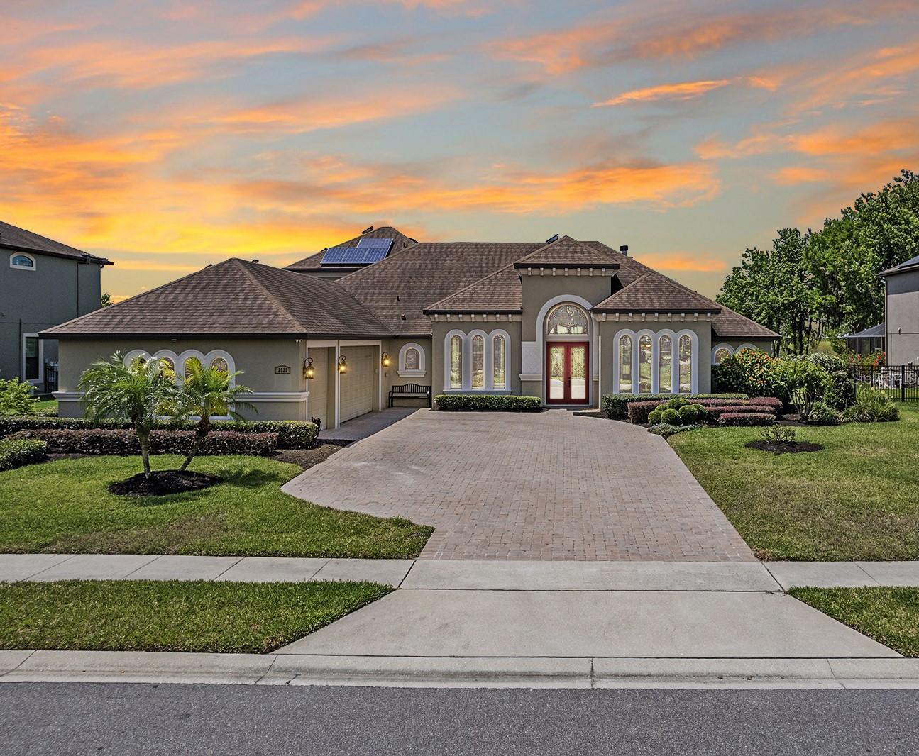 Luxury, location, and design come together at 2522 Oakbank Ct. Experience elevated lakefront living in this award-winning custom home, where every detail was designed to impress. This former Parade of Homes winner is a rare lakefront gem in the gated Lake Pointe of Toho community. Custom-built in 2013 by Vintage Estate Homes as their model, this 4-bedroom, 3 full and 2 half-bath home offers 3,378 sq ft of luxury on nearly half an acre with 100 feet of direct frontage on East Lake Toho. The curb appeal is equally impressive, with a beautifully maintained and landscaped front yard and an extended brick paver driveway that leads to an elegant, arch-framed double front door entry. Just off the grand foyer, you'll find a dedicated office and a formal dining room—perfect for working from home and hosting guests. From the moment you step inside, your eyes are drawn straight to the stunning lake views framed by oversized, tinted hurricane-rated windows that fill the home with natural light. Inside, you'll find soaring 14-ft ceilings, hardwood and tile flooring, 8-ft doors throughout, and high-end finishes including espresso wood soft-close cabinetry and granite in the kitchen and Caesar Stone countertops in the wet bar and all the bathrooms. The chef’s kitchen features an oversized granite island, built-in convection oven and microwave, French-style refrigerator, and a double door closet pantry. The family room includes custom built-ins, a wood-burning fireplace, and expansive breath-taking views of the lake and sunset. The primary suite is a true retreat, with wood-beamed cathedral ceilings, picturesque pool and lake views, and a spa-style bath with soaking tub, walk-in shower, dual sinks, designer tile work and a massive walk-in closet. Enjoy a smart split floor plan with the three additional bedrooms located on the opposite side of the home—each with walk-in closets, ceiling fans, and easy access to two full baths, including a Jack & Jill layout that also serves as a pool bath. Upstairs, you’ll find a dedicated half bath, a large loft/bonus room with wet bar and mini frig, and access to a 34-ft balcony overlooking the water. This easily could be made into a 5th bedroom! Outdoor living is elevated with a 37-ft screened patio, heated pool and spa, brick pavers, and lake views from nearly every angle. Additional features include a 3-car garage that is AC/heat regulated with epoxy flooring and pull-down attic access with floored storage, 48 paid off solar panels, solar attic fans, an upgraded water heater with circulation pump, remote-controlled ceiling fans, hardwired security cameras, and alarmed patio doors. Within the last year, updates include new overhead/bathroom lights/fans, an AC unit, fence panels on both sides of the front of the home and a new variable speed pool pump. Community amenities include a pool, tennis/pickleball and basketball courts, playground and covered tot lot, BBQ grills and picnic benches, walking trails and more. The current homeowners are only relocating due to a job transfer and have truly cherished every moment in this home—especially the priceless lakefront views and daily sightings of Florida’s beautiful wildlife. Just minutes from Lake Nona, top hospitals, and Orlando International Airport, this one-of-a-kind lakefront home is a rare opportunity in a high-demand location. Disney, Universal and Seaworld are all only about a 40 min drive and Cocoa Beach is a short hour drive. Schedule your private showing today.