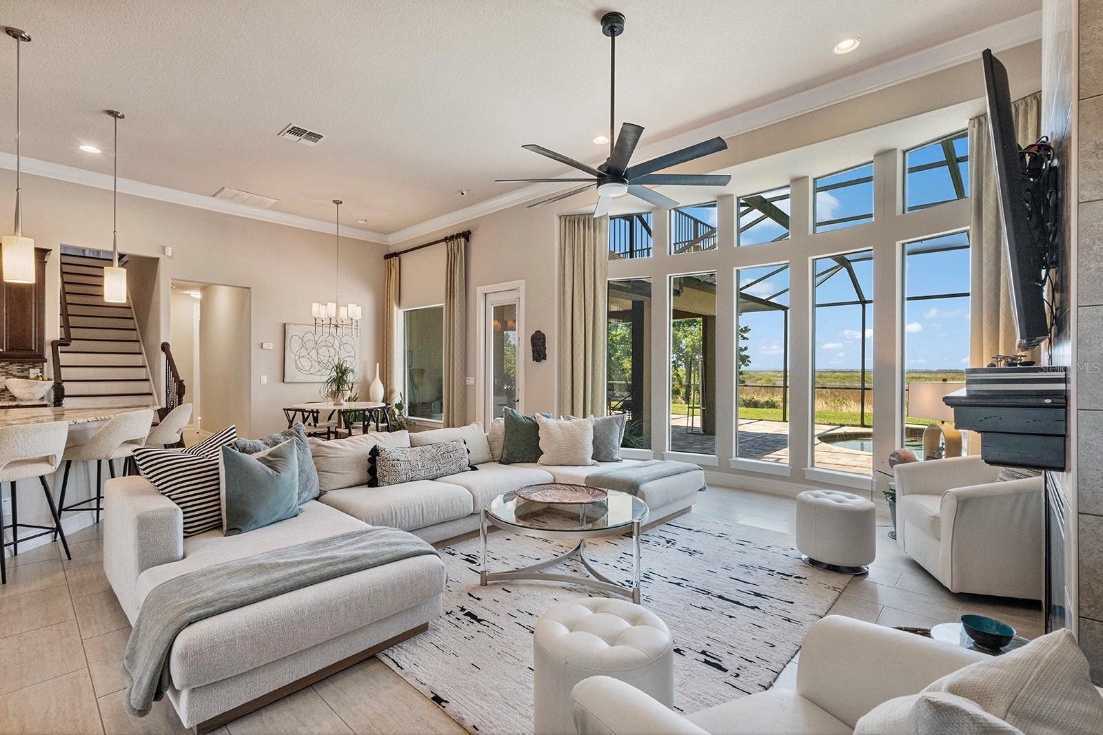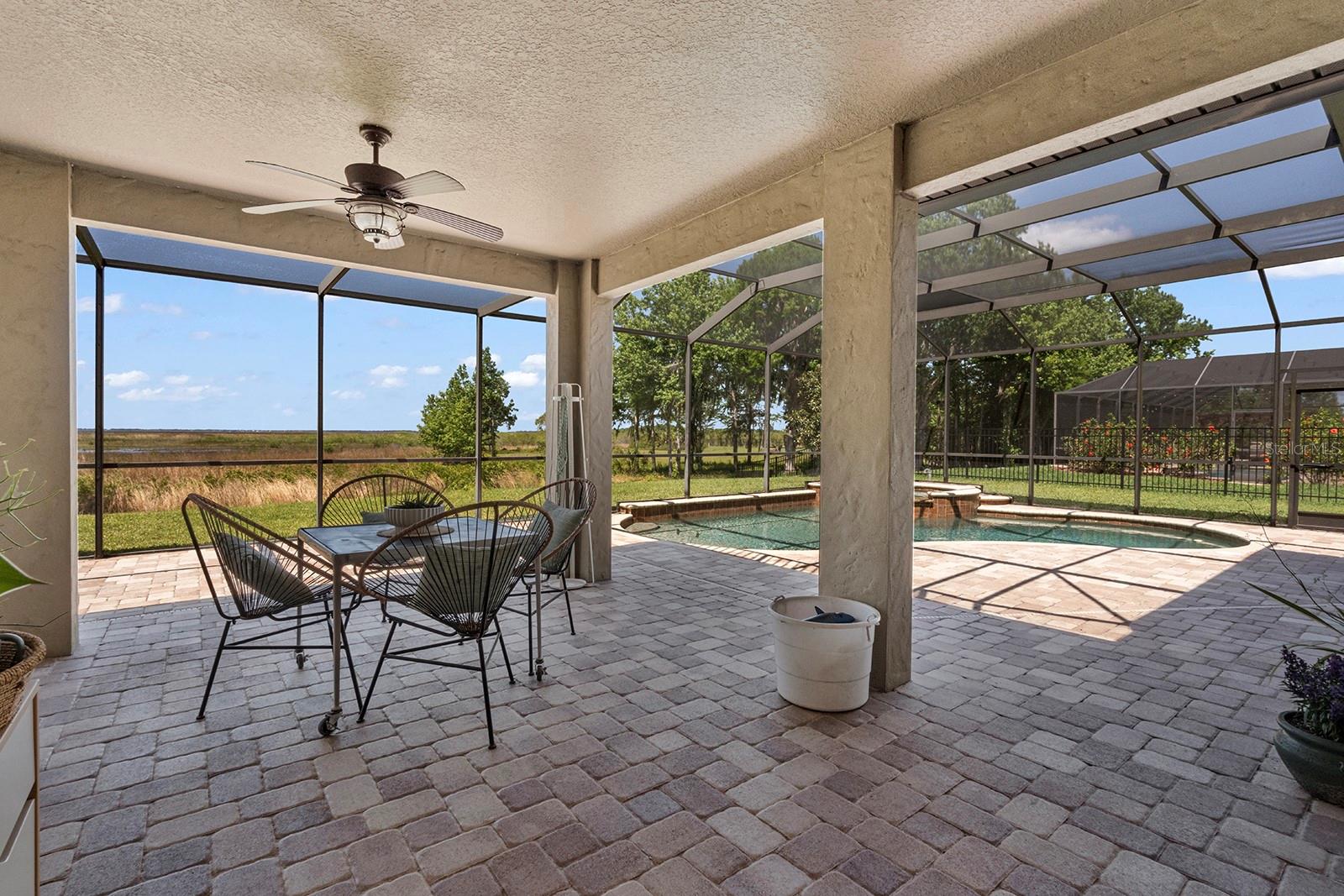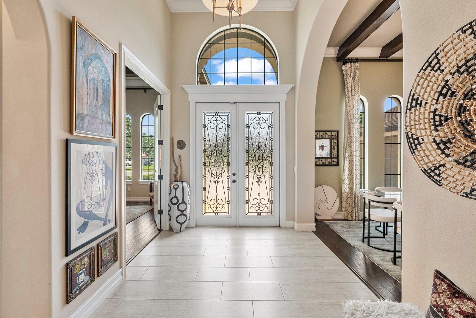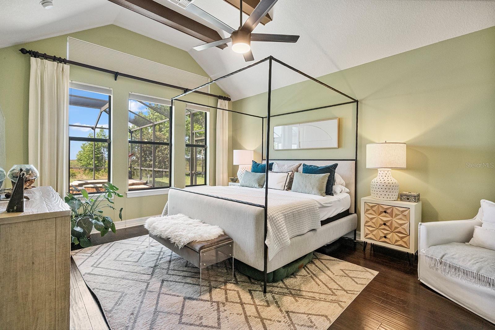 Luxury, location, and design come together at 2522 Oakbank Ct. Experience elevated lakefront living in this award-winning custom home, where every detail was designed to impress. This former Parade of Homes winner is a rare lakefront gem in the gated Lake Pointe of Toho community. Custom-built in 2013 by Vintage Estate Homes as their model, this 4-bedroom, 3 full and 2 half-bath home offers 3,378 sq ft of luxury on nearly half an acre with 100 feet of direct frontage on East Lake Toho. The curb appeal is equally impressive, with a beautifully maintained and landscaped front yard and an extended brick paver driveway that leads to an elegant, arch-framed double front door entry. Just off the grand foyer, you'll find a dedicated office and a formal dining room—perfect for working from home and hosting guests. From the moment you step inside, your eyes are drawn straight to the stunning lake views framed by oversized, tinted hurricane-rated windows that fill the home with natural light. Inside, you'll find soaring 14-ft ceilings, hardwood and tile flooring, 8-ft doors throughout, and high-end finishes including espresso wood soft-close cabinetry and granite in the kitchen and Caesar Stone countertops in the wet bar and all the bathrooms. The chef’s kitchen features an oversized granite island, built-in convection oven and microwave, French-style refrigerator, and a double door closet pantry. The family room includes custom built-ins, a wood-burning fireplace, and expansive breath-taking views of the lake and sunset. The primary suite is a true retreat, with wood-beamed cathedral ceilings, picturesque pool and lake views, and a spa-style bath with soaking tub, walk-in shower, dual sinks, designer tile work and a massive walk-in closet. Enjoy a smart split floor plan with the three additional bedrooms located on the opposite side of the home—each with walk-in closets, ceiling fans, and easy access to two full baths, including a Jack & Jill layout that also serves as a pool bath. Upstairs, you’ll find a dedicated half bath, a large loft/bonus room with wet bar and mini frig, and access to a 34-ft balcony overlooking the water. This easily could be made into a 5th bedroom! Outdoor living is elevated with a 37-ft screened patio, heated pool and spa, brick pavers, and lake views from nearly every angle. Additional features include a 3-car garage that is AC/heat regulated with epoxy flooring and pull-down attic access with floored storage, 48 paid off solar panels, solar attic fans, an upgraded water heater with circulation pump, remote-controlled ceiling fans, hardwired security cameras, and alarmed patio doors. Within the last year, updates include new overhead/bathroom lights/fans, an AC unit, fence panels on both sides of the front of the home and a new variable speed pool pump. Community amenities include a pool, tennis/pickleball and basketball courts, playground and covered tot lot, BBQ grills and picnic benches, walking trails and more. The current homeowners are only relocating due to a job transfer and have truly cherished every moment in this home—especially the priceless lakefront views and daily sightings of Florida’s beautiful wildlife. Just minutes from Lake Nona, top hospitals, and Orlando International Airport, this one-of-a-kind lakefront home is a rare opportunity in a high-demand location. Disney, Universal and Seaworld are all only about a 40 min drive and Cocoa Beach is a short hour drive. Schedule your private showing today.