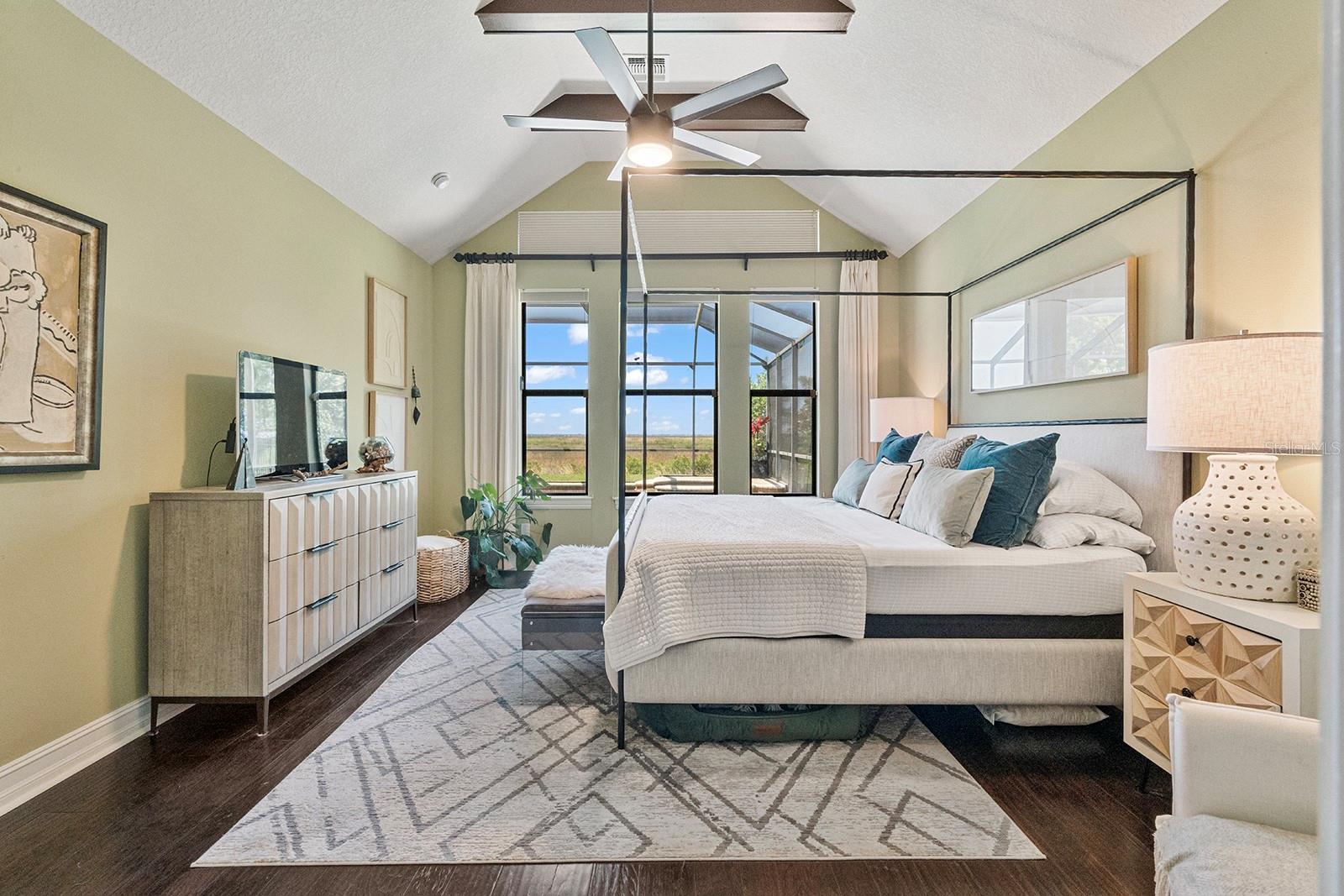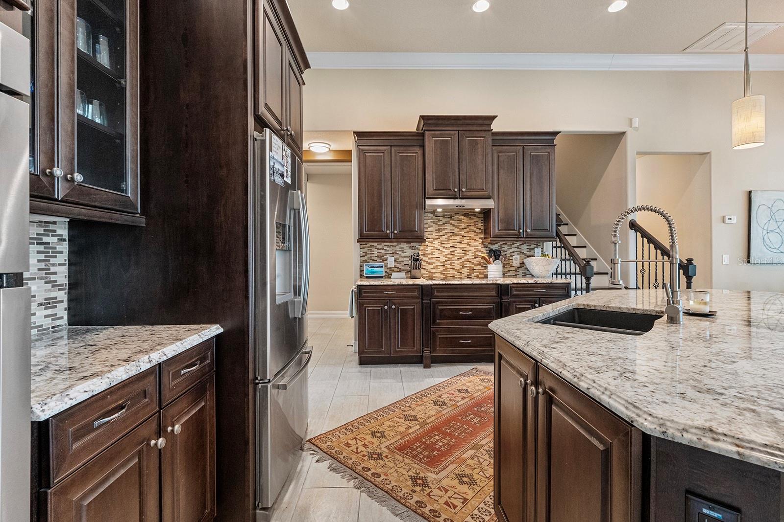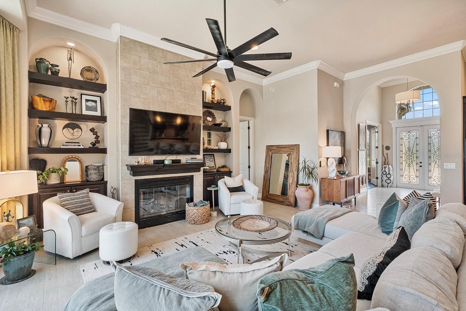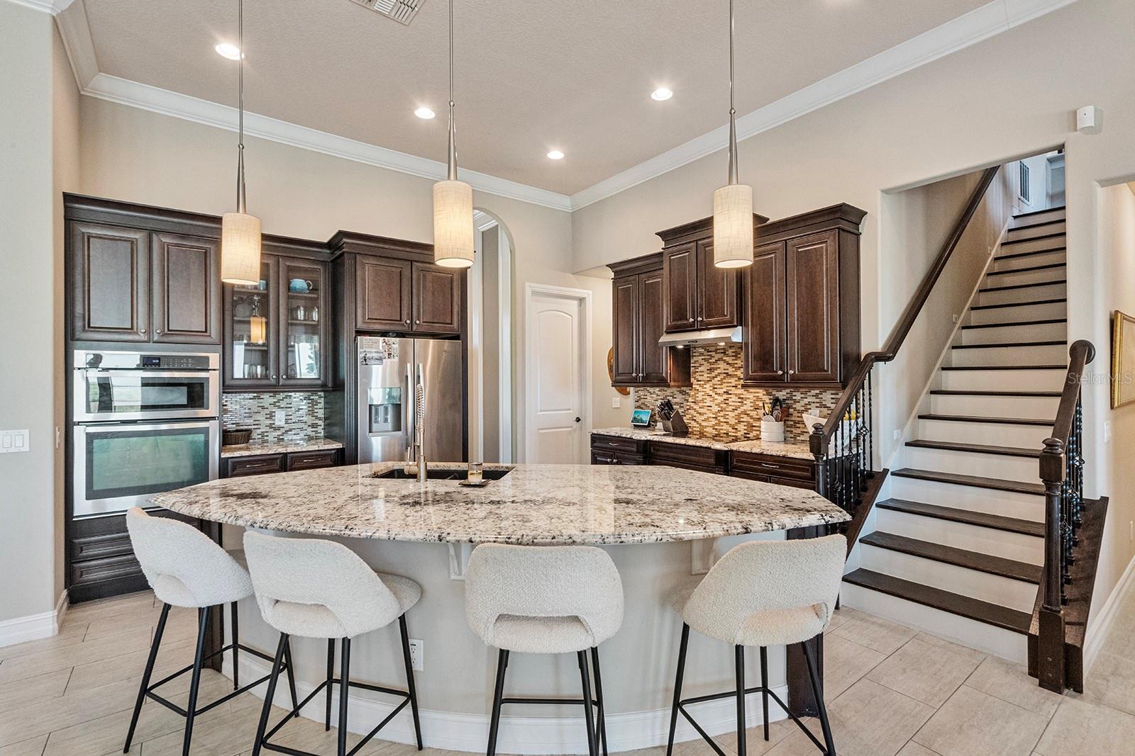 Luxury, location, and design come together at 2522 Oakbank Ct. Experience elevated lakefront living in this award-winning custom home, where every detail was designed to impress. This former Parade of Homes winner is a rare lakefront gem in the gated Lake Pointe of Toho community. Custom-built in 2013 by Vintage Estate Homes as their model, this 4-bedroom, 3 full and 2 half-bath home offers 3,378 sq ft of luxury on nearly half an acre with 100 feet of direct frontage on East Lake Toho. The curb appeal is equally impressive, with a beautifully maintained and landscaped front yard and an extended brick paver driveway that leads to an elegant, arch-framed double front door entry. Just off the grand foyer, you'll find a dedicated office and a formal dining room—perfect for working from home and hosting guests. From the moment you step inside, your eyes are drawn straight to the stunning lake views framed by oversized, tinted hurricane-rated windows that fill the home with natural light. Inside, you'll find soaring 14-ft ceilings, hardwood and tile flooring, 8-ft doors throughout, and high-end finishes including espresso wood soft-close cabinetry and granite in the kitchen and Caesar Stone countertops in the wet bar and all the bathrooms. The chef’s kitchen features an oversized granite island, built-in convection oven and microwave, French-style refrigerator, and a double door closet pantry. The family room includes custom built-ins, a wood-burning fireplace, and expansive breath-taking views of the lake and sunset. The primary suite is a true retreat, with wood-beamed cathedral ceilings, picturesque pool and lake views, and a spa-style bath with soaking tub, walk-in shower, dual sinks, designer tile work and a massive walk-in closet. Enjoy a smart split floor plan with the three additional bedrooms located on the opposite side of the home—each with walk-in closets, ceiling fans, and easy access to two full baths, including a Jack & Jill layout that also serves as a pool bath. Upstairs, you’ll find a dedicated half bath, a large loft/bonus room with wet bar and mini frig, and access to a 34-ft balcony overlooking the water. This easily could be made into a 5th bedroom! Outdoor living is elevated with a 37-ft screened patio, heated pool and spa, brick pavers, and lake views from nearly every angle. Additional features include a 3-car garage that is AC/heat regulated with epoxy flooring and pull-down attic access with floored storage, 48 paid off solar panels, solar attic fans, an upgraded water heater with circulation pump, remote-controlled ceiling fans, hardwired security cameras, and alarmed patio doors. Within the last year, updates include new overhead/bathroom lights/fans, an AC unit, fence panels on both sides of the front of the home and a new variable speed pool pump. Community amenities include a pool, tennis/pickleball and basketball courts, playground and covered tot lot, BBQ grills and picnic benches, walking trails and more. The current homeowners are only relocating due to a job transfer and have truly cherished every moment in this home—especially the priceless lakefront views and daily sightings of Florida’s beautiful wildlife. Just minutes from Lake Nona, top hospitals, and Orlando International Airport, this one-of-a-kind lakefront home is a rare opportunity in a high-demand location. Disney, Universal and Seaworld are all only about a 40 min drive and Cocoa Beach is a short hour drive. Schedule your private showing today.