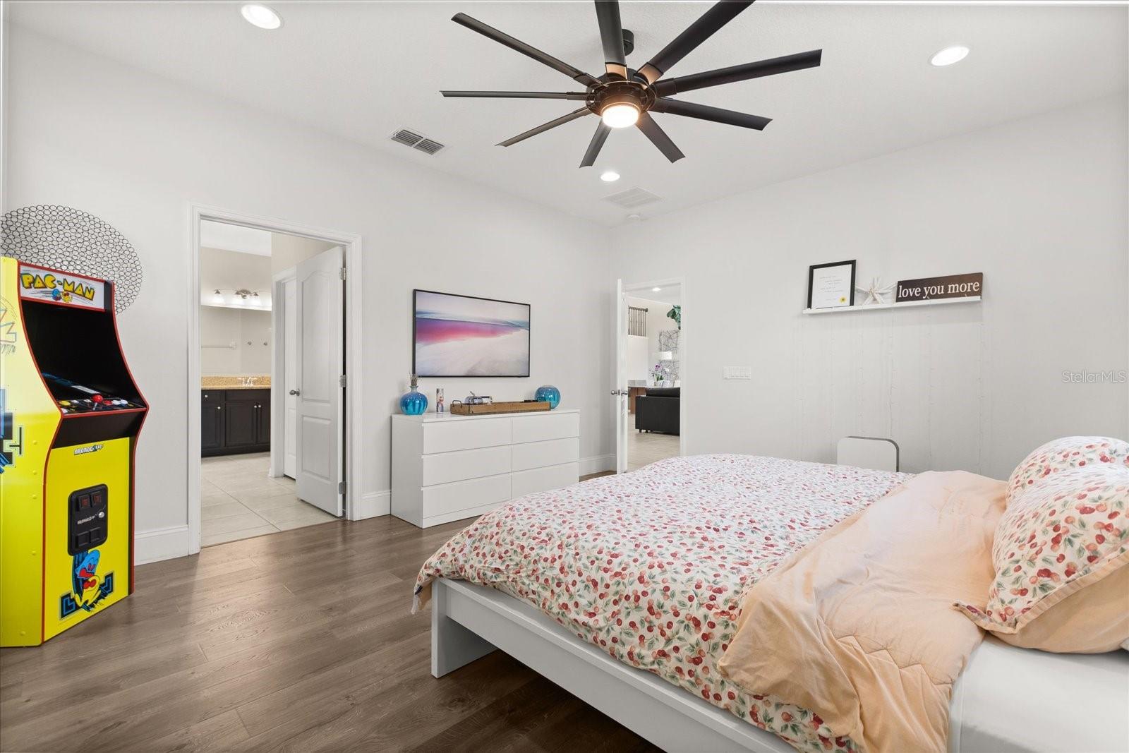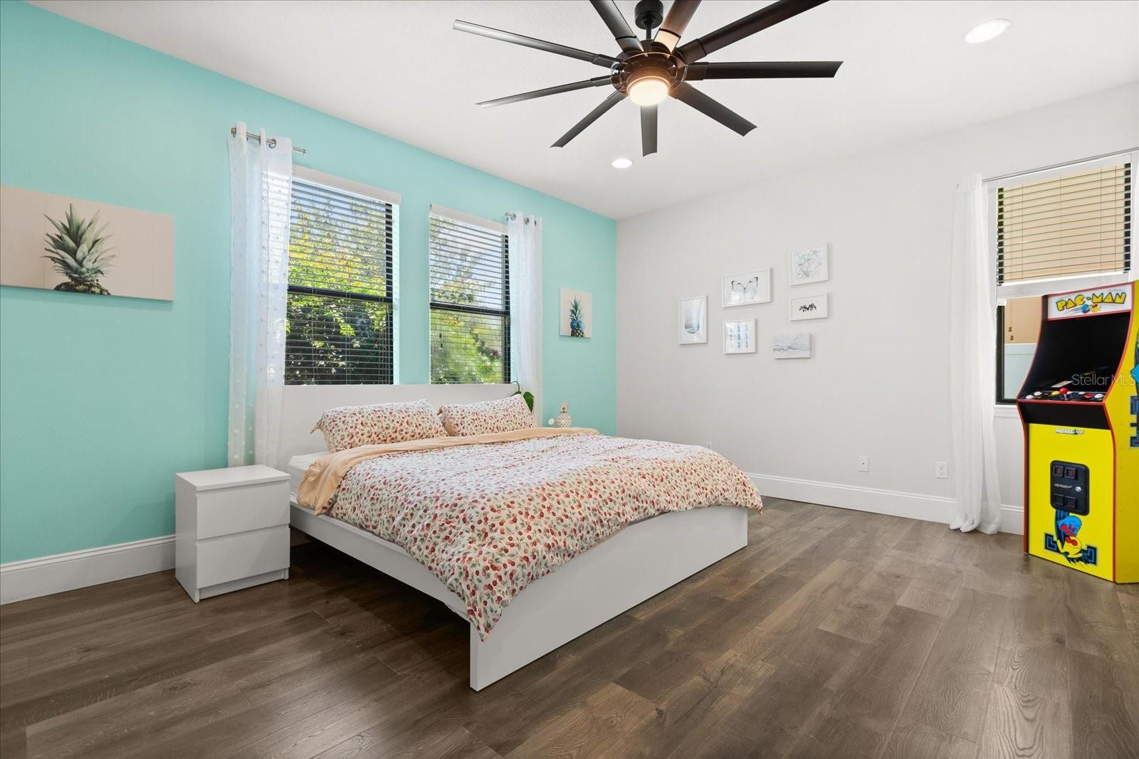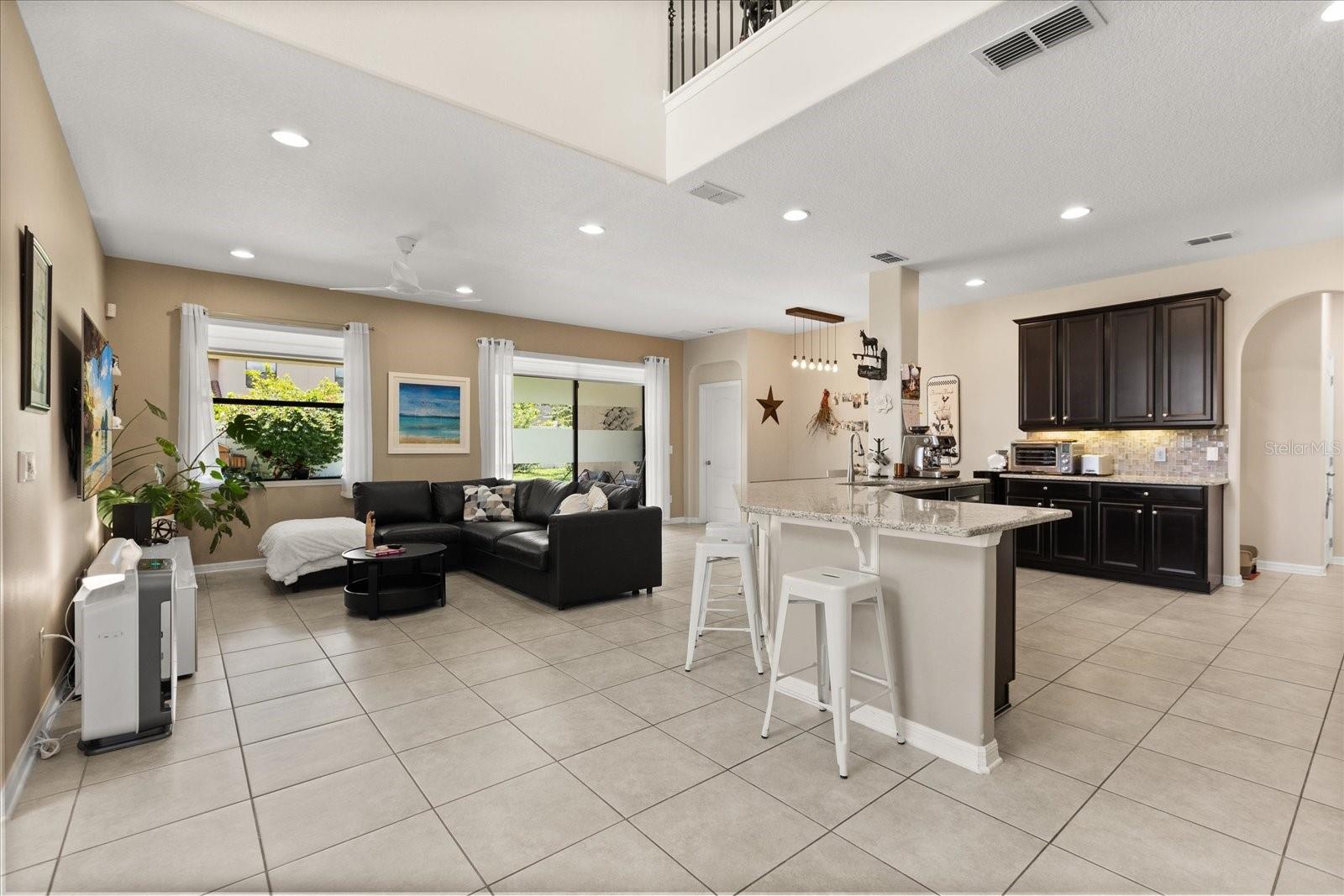 ** PRICE IMPROVEMENT - SELLER'S PREFERRED LENDER OFFERING 1% CREDIT** Welcome to this beautiful home located in the East Lake Park community, where an open-concept layout and soaring high ceilings create an inviting and spacious atmosphere from the moment you enter. The main level features tile flooring throughout the kitchen, living areas, and bathrooms, while the kitchen itself boasts granite countertops, hardwood cabinets, and stainless steel appliances—including a refrigerator, microwave, dishwasher, and range—perfect for both everyday living and entertaining. The seamless flow from the kitchen to the living and dining spaces is complemented by updated light fixtures and 7-inch baseboards throughout the home. A dedicated bonus room on the main floor offers the ideal space for a home office, and the laundry room adds everyday convenience. Upstairs, you'll find luxury vinyl flooring in all bedrooms, with brand-new carpet on the stairs leading to an expansive loft area that can easily function as a gym, playroom, or second office. The spacious primary suite includes a walk-in closet and a beautifully appointed en-suite bathroom with dual sinks, granite countertops, a walk-in shower, and a separate soaking tub. Step outside to a covered patio overlooking a large, fully fenced backyard—ideal for relaxing or entertaining. Additional features include new gutters, a three-car garage, a new water heater, and a durable tile roof. Located in a gated community with a playground and basketball court, just minutes from Lake Nona, Lake Tohopekaliga, major highways, Valencia College, restaurants, and more, this home perfectly blends comfort, style, and convenience. Schedule your showing today!