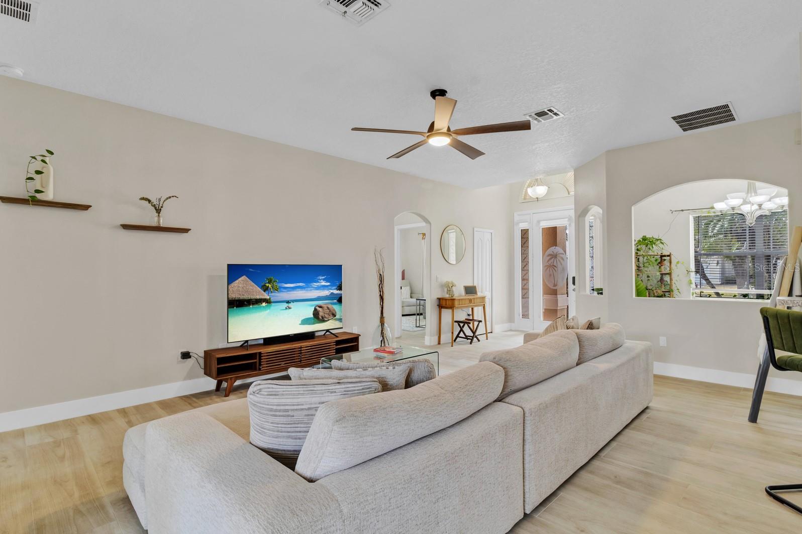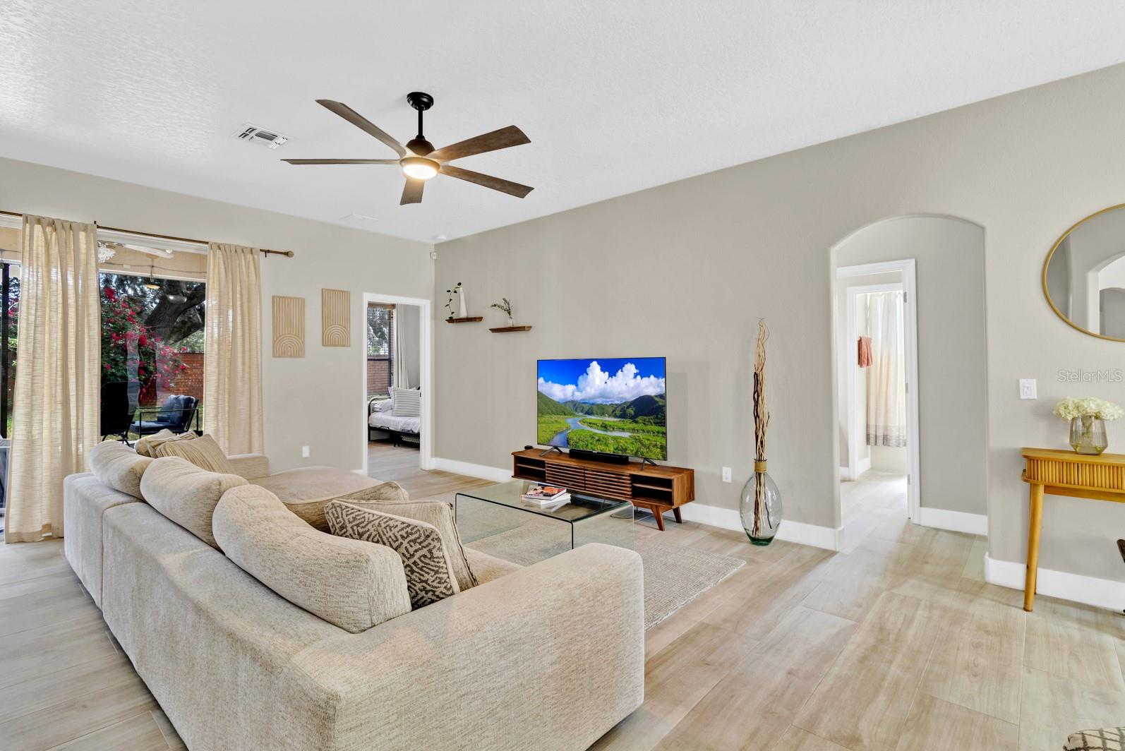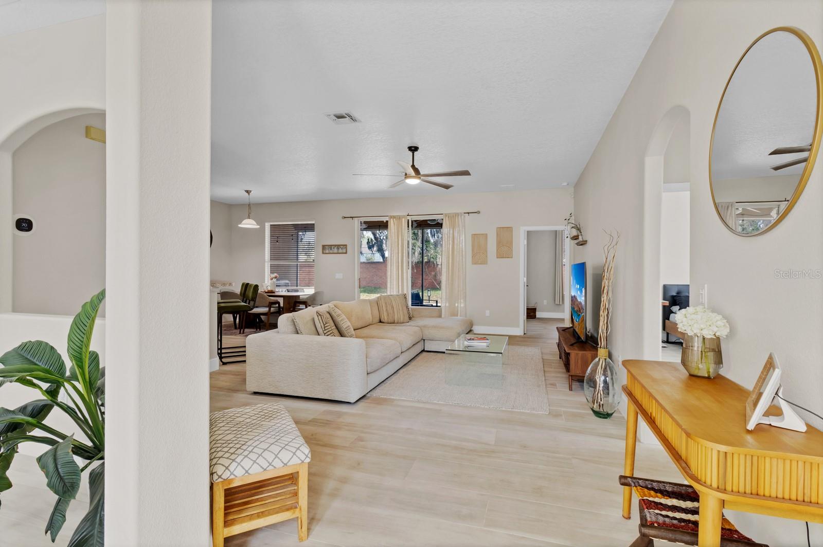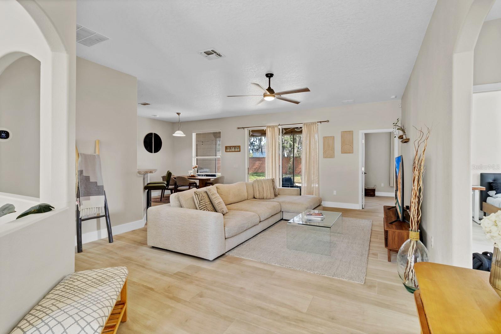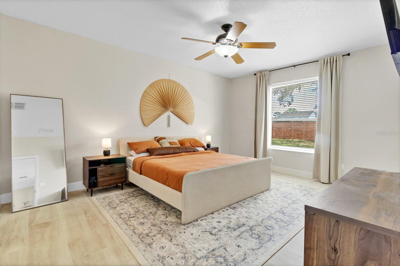 Home qualifies for 100% financing and VA buyers can assume the mortgage rate of 4.375%. Welcome to this beautiful home in one of St. Cloud's sought-after communities. As soon as you come in, you’re welcome by the bright and airy feel this home provides with an abundance of natural light. The open floor plan allows you to move with ease from your living room to your dining room and kitchen. Your kitchen has features such as large 42-inch cabinets, solid countertop surfaces, a kitchen island and a deep, stainless steel sink allowing this kitchen to be ideal for preparing large family dinners. Continuing on through the home, you come to the primary suite that features a private exit to your backyard patio, walk-in closets and access to your enormous main bath. Your main bath features dual sink vanities, a walk-in shower and a jetted tub to enjoy the quiet evenings. This home also features two additional guest bedrooms and an enormous bonus room! Additionally, this home will give you peace of mind with its new flooring throughout and with the entire roof being replaced in 2020! Once done inside, it is time to go outside and enjoy the Florida lifestyle. You’ll enjoy your enormous fenced-in backyard (.25 of an acre) with your private deck. In addition, the East Lake Cove community provides amenities such as tennis courts, a playground, private dock on East Lake Toho, all in a gated community. To top it off, you could not be in a better location than St. Cloud, close to restaurants, parks, shopping centers and major highways. All that’s missing is you. Contact your agent today for a private showing.