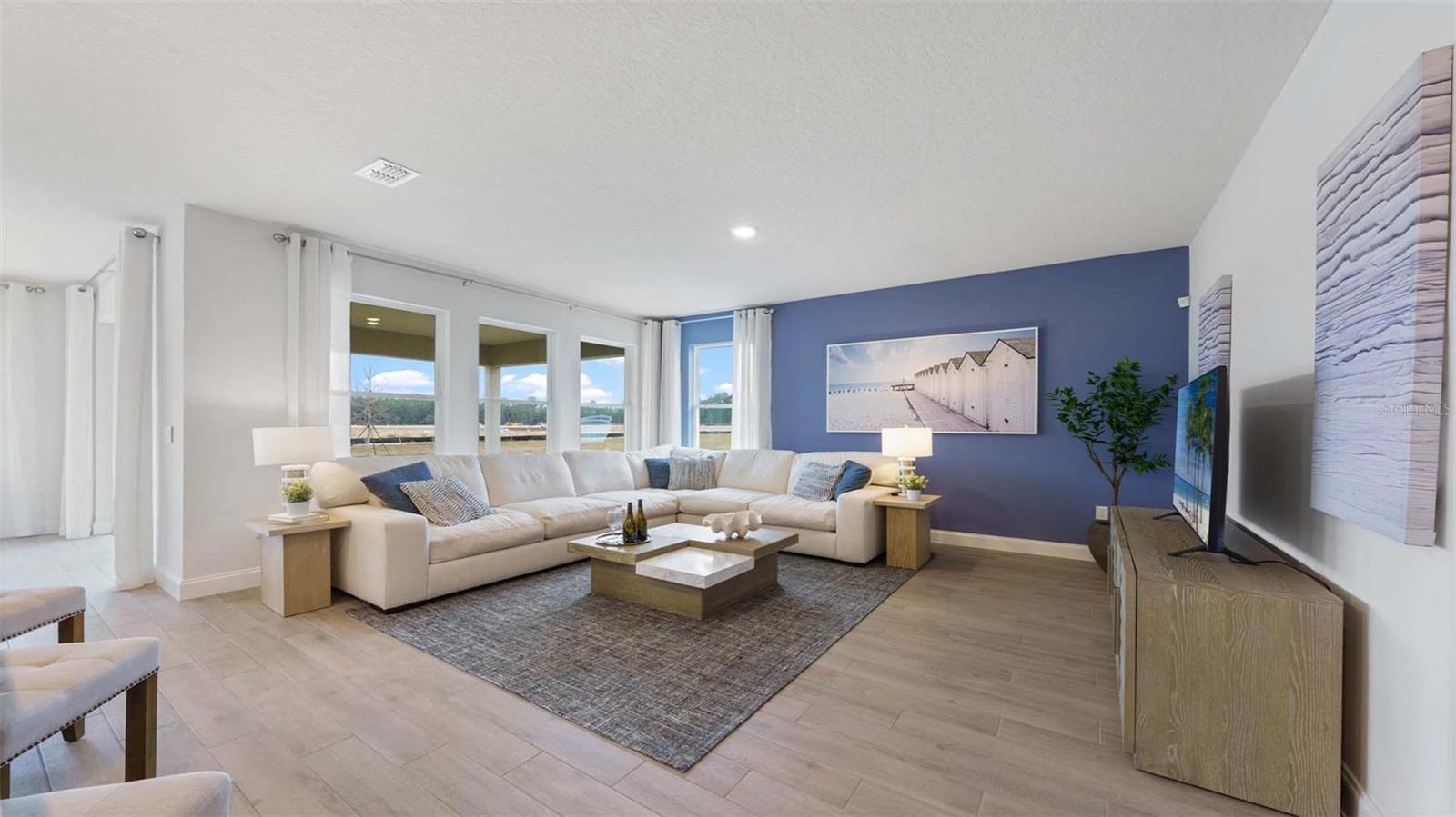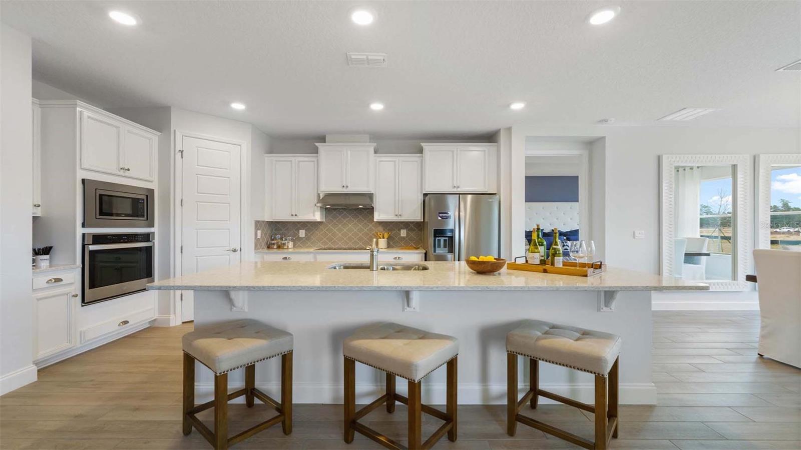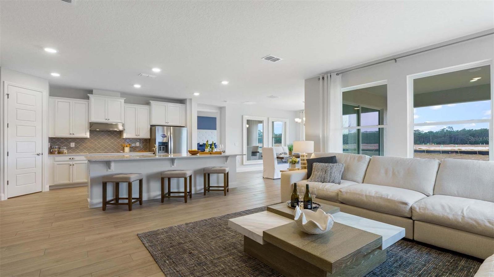 "Introducing the Robinson floorplan at Harmony West, where every square foot is put to use with sophistication and comfort. This impressive one-story home with 2,108 square feet has an elevated designed with elegant exteriors and high-end features. This spacious all concrete block construction single-family home features 4 bedrooms and 3 baths with a 3-car garage. As you enter the foyer you are greeted with two guest bedrooms and guest bathroom with double vanity sinks. Bedroom two and an additional full bathroom are located off the entrance of the garage. Farther down the hallway, you are greeted with a linen closet and laundry room with doors for privacy. A spacious family room on the first floor leaves room for relaxation and entertaining. The well-appointed gourmet kitchen overlooks the living area, dining room, and outdoor lanai. Homeowners will love the quartz countertops, stainless-steel appliances, center island, spacious pantry and crown molding cabinetry. Bedroom one is located off the living space in the back of the home for privacy. The primary bathroom impresses with double bowl vanity, separate shower and tub space and spacious walk-in closet-making it a breeze to get ready for the day. Like all homes in Harmony West, the Robinson includes a Home is Connected smart home technology package which allows you to control your home with your smart device while near or away. *Photos are of similar model but not that of exact house. Pictures, photographs, colors, features, and sizes are for illustration purposes only and will vary from the homes as built. Home and community information including pricing, included features, terms, availability and amenities are subject to change and prior sale at any time without notice or obligation. Please note that no representations or warranties are made regarding school districts or school assignments; you should conduct your own investigation regarding current and future schools and school boundaries.*