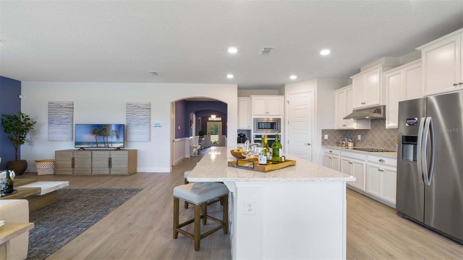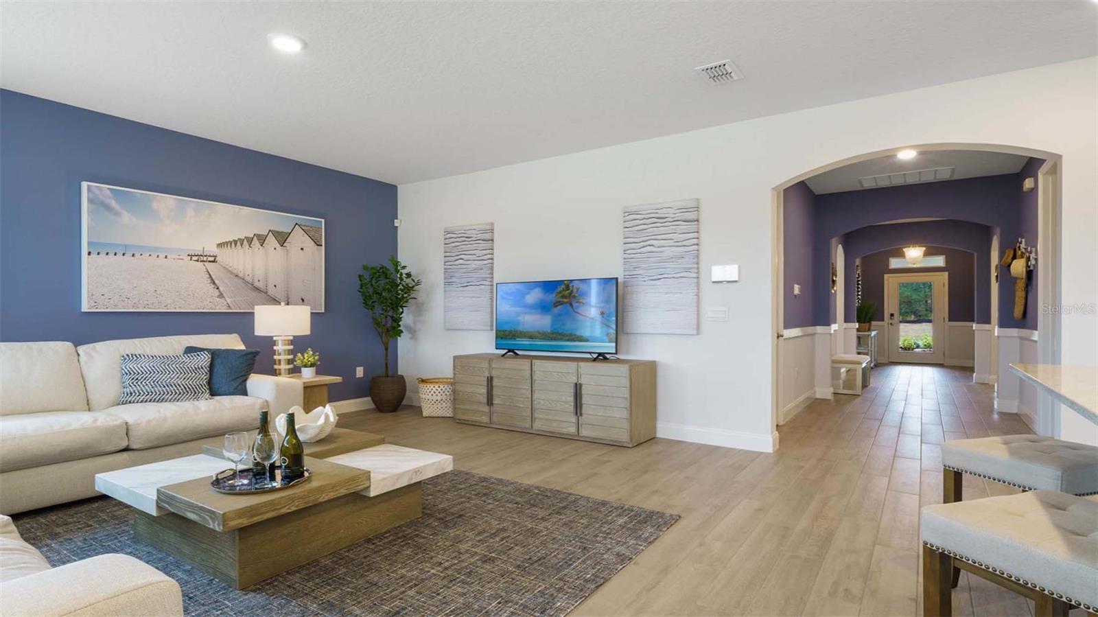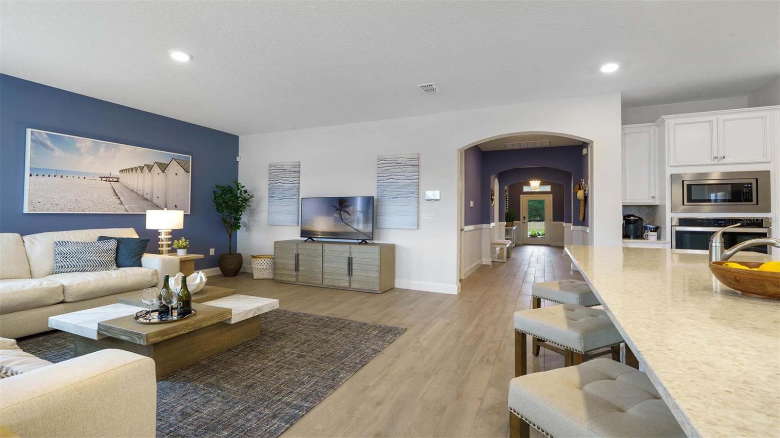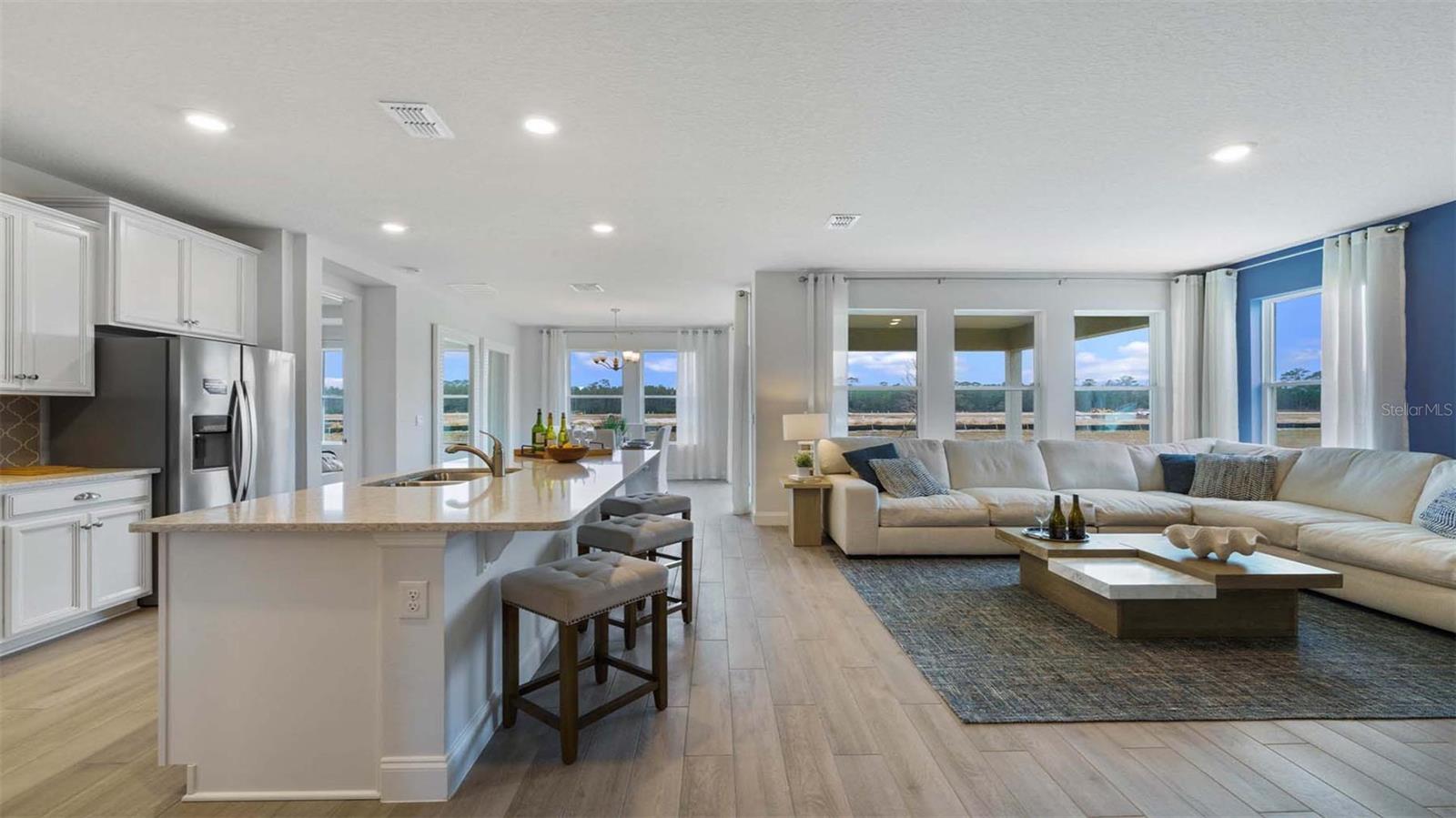 "Introducing the Robinson floorplan at Harmony West, where every square foot is put to use with sophistication and comfort. This impressive one-story home with 2,108 square feet has an elevated designed with elegant exteriors and high-end features. This spacious all concrete block construction single-family home features 4 bedrooms and 3 baths with a 3-car garage. As you enter the foyer you are greeted with two guest bedrooms and guest bathroom with double vanity sinks. Bedroom two and an additional full bathroom are located off the entrance of the garage. Farther down the hallway, you are greeted with a linen closet and laundry room with doors for privacy. A spacious family room on the first floor leaves room for relaxation and entertaining. The well-appointed gourmet kitchen overlooks the living area, dining room, and outdoor lanai. Homeowners will love the quartz countertops, stainless-steel appliances, center island, spacious pantry and crown molding cabinetry. Bedroom one is located off the living space in the back of the home for privacy. The primary bathroom impresses with double bowl vanity, separate shower and tub space and spacious walk-in closet-making it a breeze to get ready for the day. Like all homes in Harmony West, the Robinson includes a Home is Connected smart home technology package which allows you to control your home with your smart device while near or away. *Photos are of similar model but not that of exact house. Pictures, photographs, colors, features, and sizes are for illustration purposes only and will vary from the homes as built. Home and community information including pricing, included features, terms, availability and amenities are subject to change and prior sale at any time without notice or obligation. Please note that no representations or warranties are made regarding school districts or school assignments; you should conduct your own investigation regarding current and future schools and school boundaries.*
