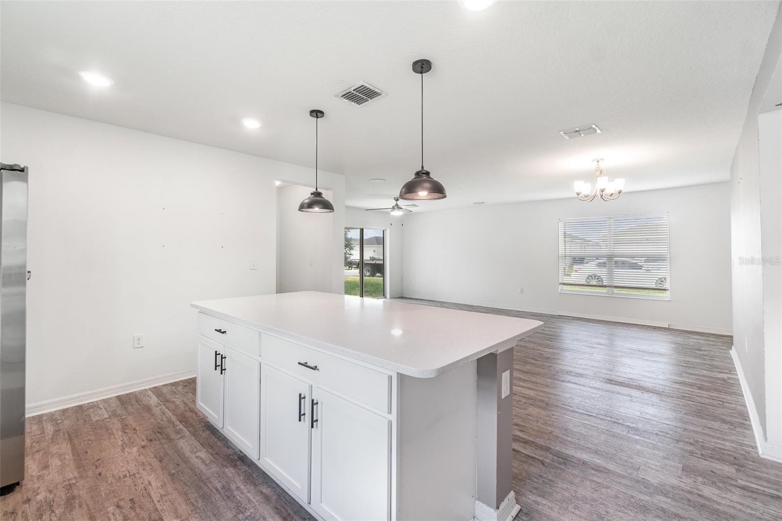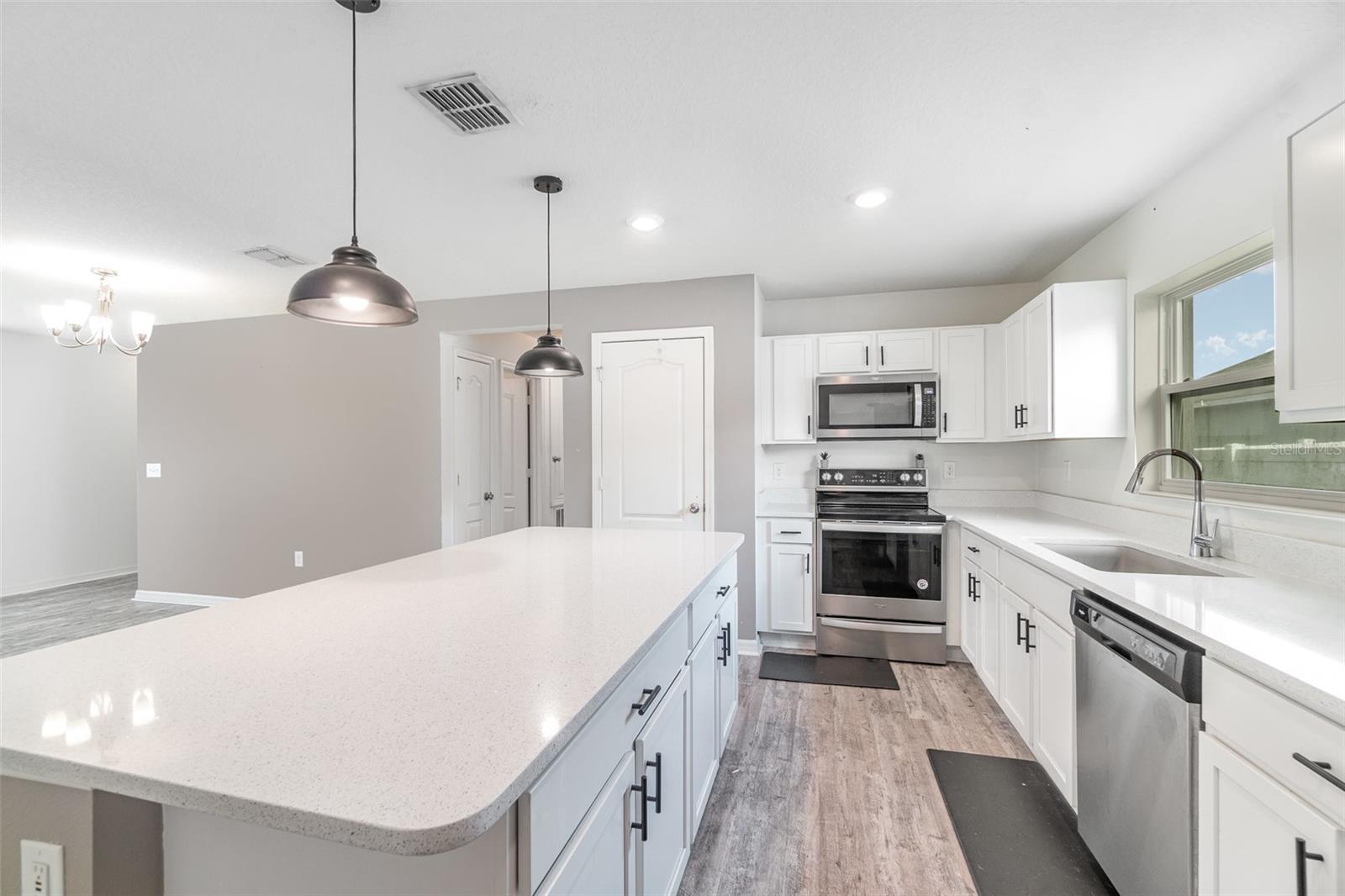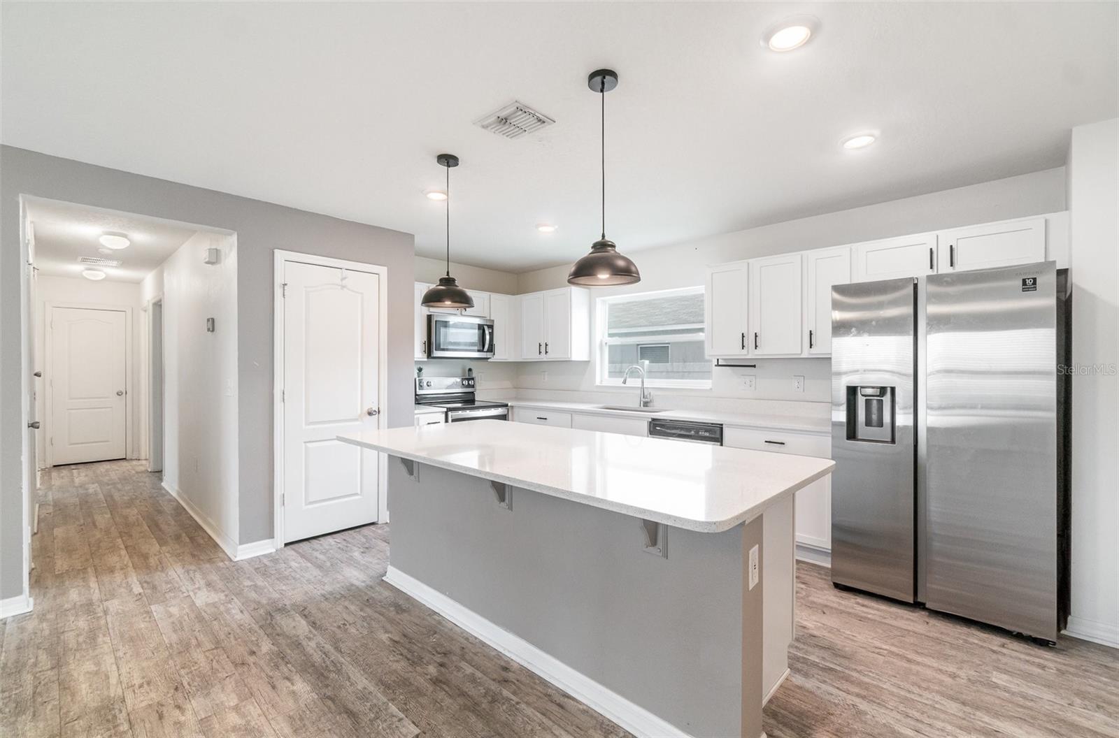 Assumable Loan FHA 3.2% for qualified Buyers. Welcome to this beautifully maintained 3-bedroom, 2-bath home with a spacious 2-car garage, corner lot! Nestled in the sought-after community of Gramercy Farms in St. Cloud with a low HOA! This thoughtfully designed split floor plan offers both comfort and privacy, featuring luxury vinyl plank flooring throughout. The heart of the home is the stunning kitchen, boasting a generous island, sleek quartz countertops, stainless steel appliances, and a French door refrigerator, perfect for both everyday living and entertaining. Light fixtures and ceiling fans included. Whether you're searching for a smart investment or a place to call home, this gem checks all the boxes. Don’t wait to schedule your private showing today!