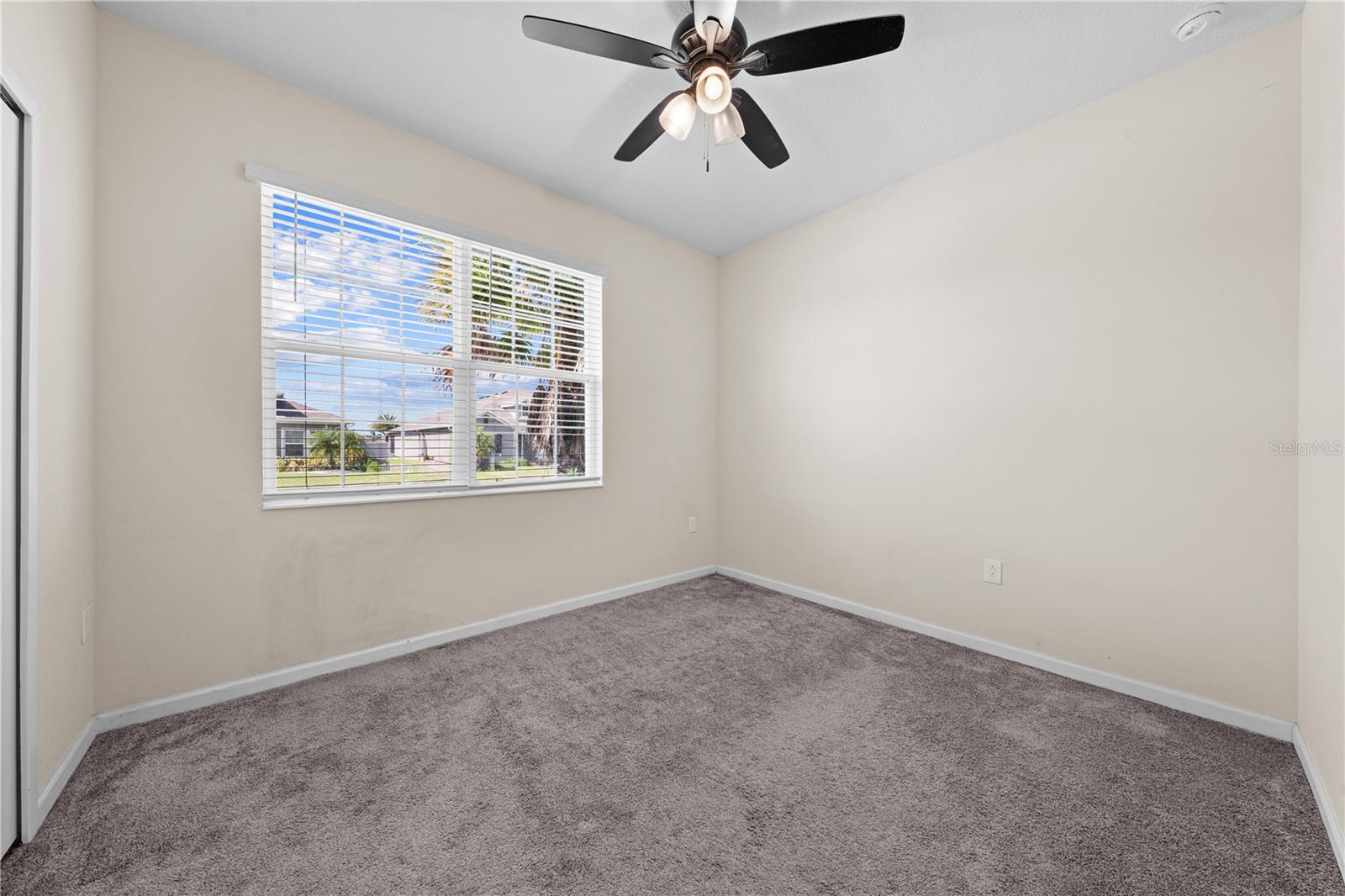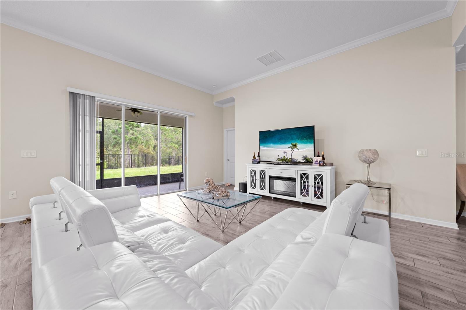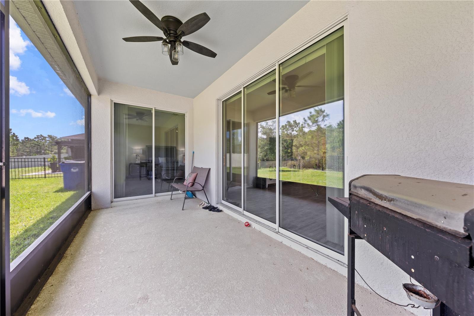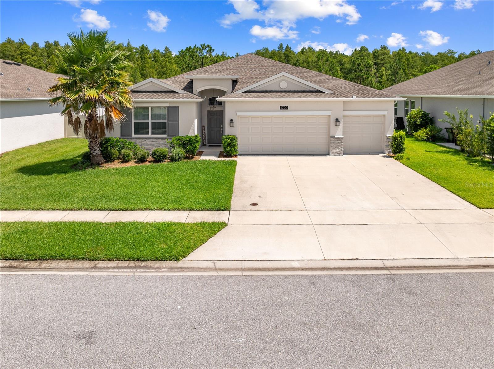 Beautiful FOUR bedroom THREE bath home featuring a THREE car garage on a 0.21 acre conservation lot. The yard is big enough to put in a pool should you desire to do so. This home has a 3 way split for added privacy with one bedroom and bathroom together as a great guest quarters, this bedroom also has a walk in closet. The home features ceramic tile plank flooring throughout with exception to the bedrooms which all have carpet. The floor plan has a formal dining room separate from the kitchen/living and breakfast nook great room concept. The kitchen features a closet pantry, breakfast bar, breakfast nook, 42" upper cabinets with crown molding, quartz counters, back splash and an island. The master suite comes complete with HIS and HERS walk in closets, a huge walk in shower, dual sinks, water closet and quartz counters. All of the bedrooms ceiling fans. Other great features in this home include a fenced back yard, security system, all appliances included, screen enclosed 8 x 18 Lanai, pocket sliding glass doors, multiple linen closets, a coat and vacuum closet, cabinets in the laundry room, a water softener system, and a home warranty through Warranty Service Plus good through 2/7/29. Seller is offering OWNER FINAINCING with 20% down, 7.5% interest rate with a 3 year Balloon. The neighborhood features sidewalks, a playground and community pool. Schedule a visit soon!