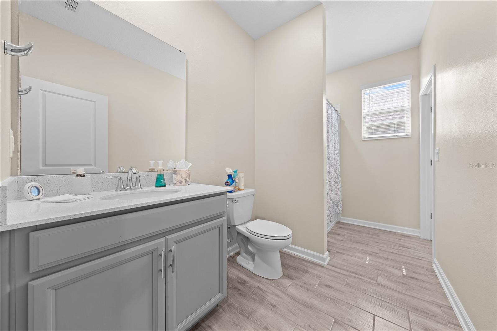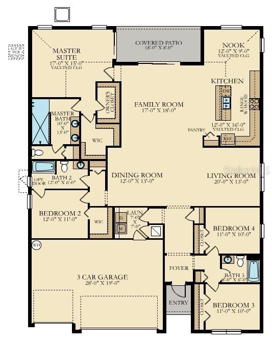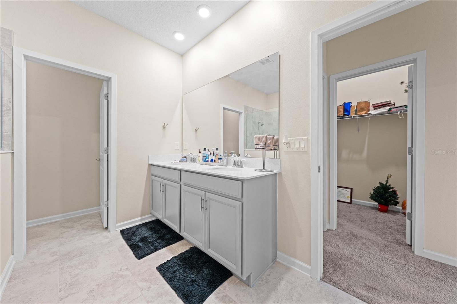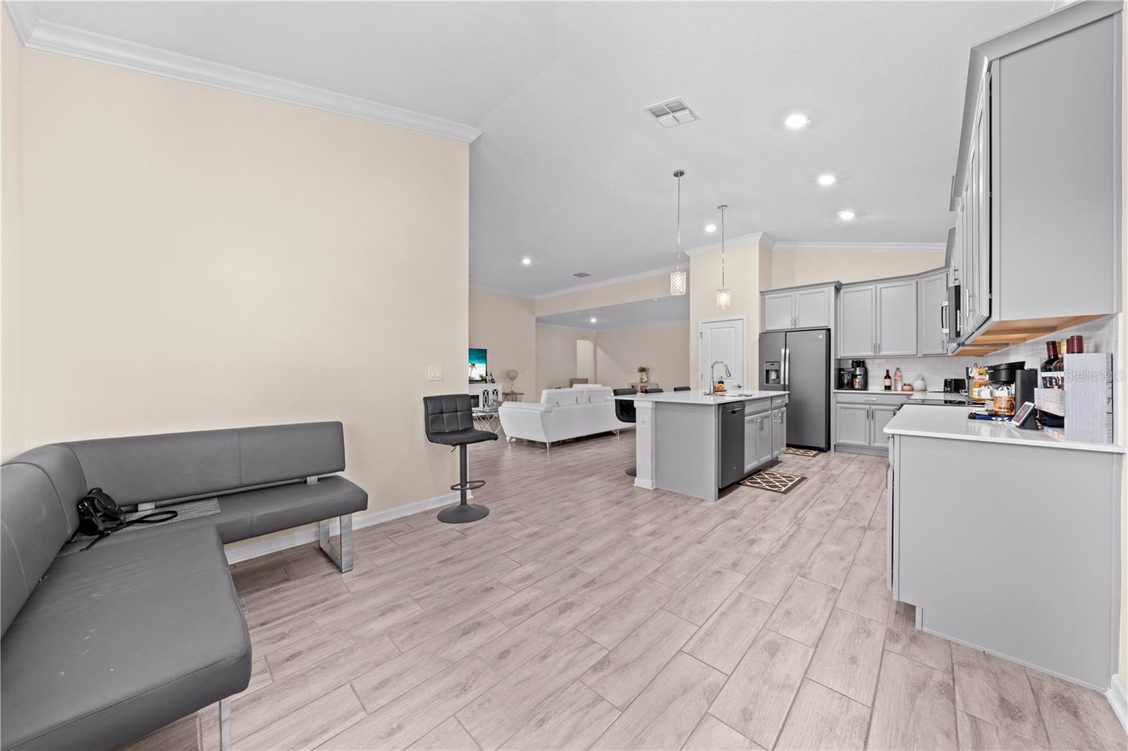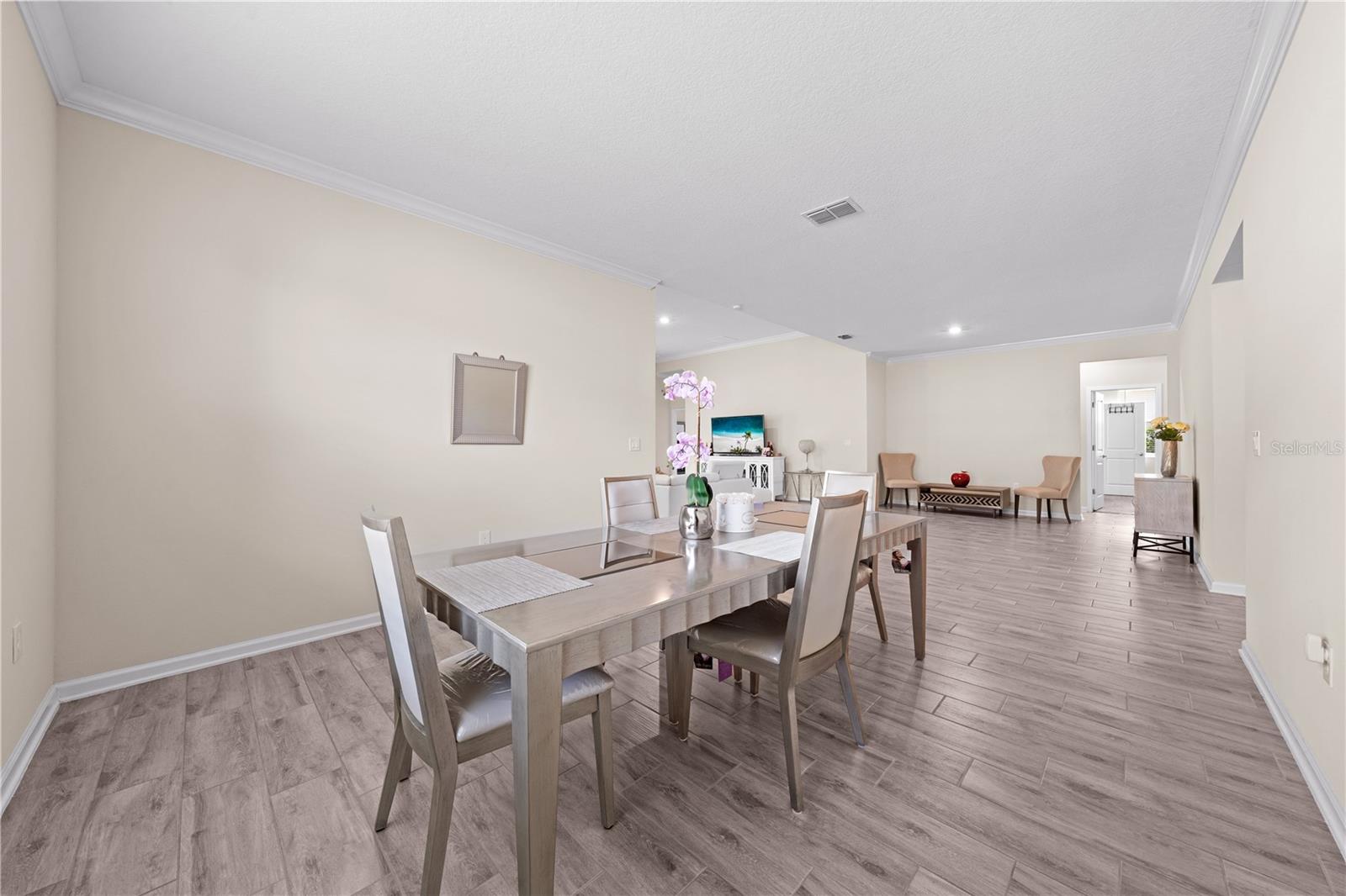Beautiful FOUR bedroom THREE bath home featuring a THREE car garage on a 0.21 acre conservation lot. The yard is big enough to put in a pool should you desire to do so. This home has a 3 way split for added privacy with one bedroom and bathroom together as a great guest quarters, this bedroom also has a walk in closet. The home features ceramic tile plank flooring throughout with exception to the bedrooms which all have carpet. The floor plan has a formal dining room separate from the kitchen/living and breakfast nook great room concept. The kitchen features a closet pantry, breakfast bar, breakfast nook, 42" upper cabinets with crown molding, quartz counters, back splash and an island. The master suite comes complete with HIS and HERS walk in closets, a huge walk in shower, dual sinks, water closet and quartz counters. All of the bedrooms ceiling fans. Other great features in this home include a fenced back yard, security system, all appliances included, screen enclosed 8 x 18 Lanai, pocket sliding glass doors, multiple linen closets, a coat and vacuum closet, cabinets in the laundry room, a water softener system, and a home warranty through Warranty Service Plus good through 2/7/29. Seller is offering OWNER FINAINCING with 20% down, 7.5% interest rate with a 3 year Balloon. The neighborhood features sidewalks, a playground and community pool. Schedule a visit soon!