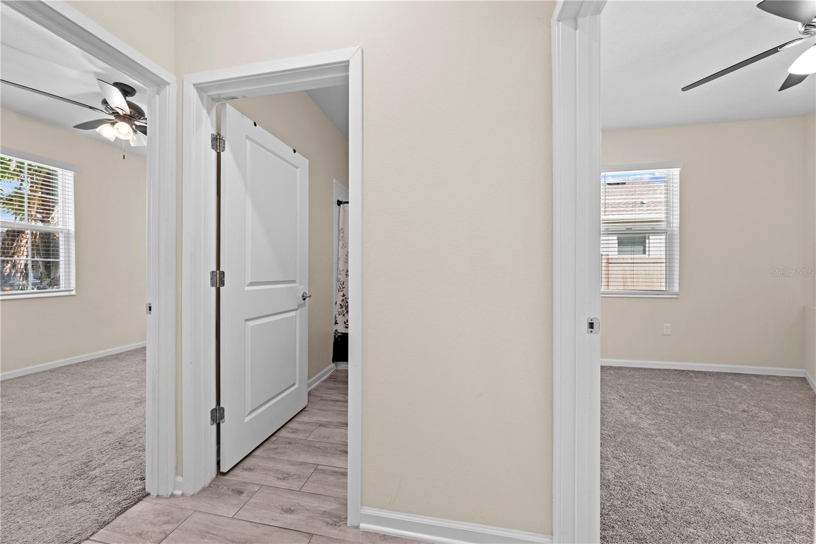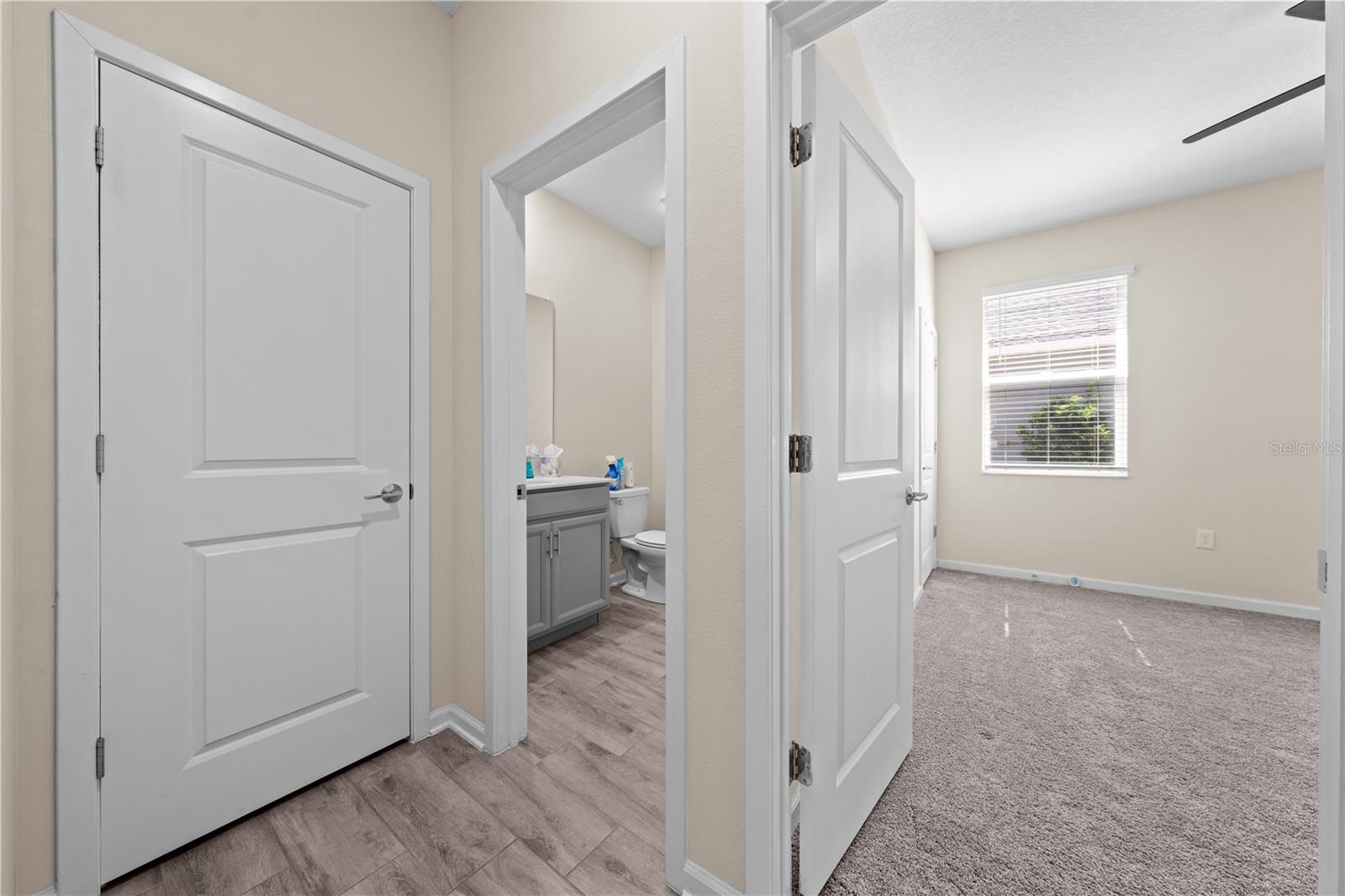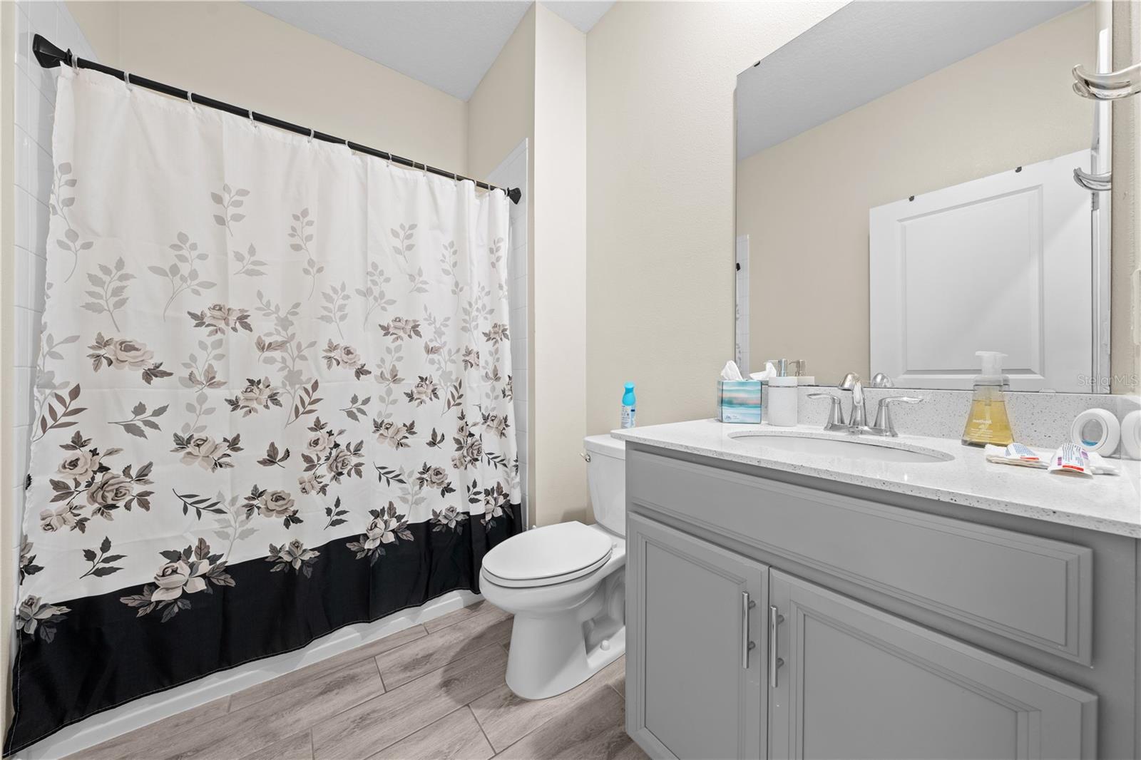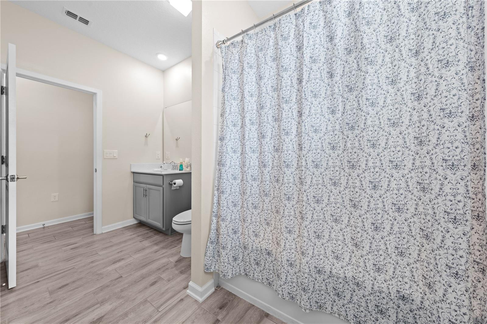 Beautiful FOUR bedroom THREE bath home featuring a THREE car garage on a 0.21 acre conservation lot. The yard is big enough to put in a pool should you desire to do so. This home has a 3 way split for added privacy with one bedroom and bathroom together as a great guest quarters, this bedroom also has a walk in closet. The home features ceramic tile plank flooring throughout with exception to the bedrooms which all have carpet. The floor plan has a formal dining room separate from the kitchen/living and breakfast nook great room concept. The kitchen features a closet pantry, breakfast bar, breakfast nook, 42" upper cabinets with crown molding, quartz counters, back splash and an island. The master suite comes complete with HIS and HERS walk in closets, a huge walk in shower, dual sinks, water closet and quartz counters. All of the bedrooms ceiling fans. Other great features in this home include a fenced back yard, security system, all appliances included, screen enclosed 8 x 18 Lanai, pocket sliding glass doors, multiple linen closets, a coat and vacuum closet, cabinets in the laundry room, a water softener system, and a home warranty through Warranty Service Plus good through 2/7/29. Seller is offering OWNER FINAINCING with 20% down, 7.5% interest rate with a 3 year Balloon. The neighborhood features sidewalks, a playground and community pool. Schedule a visit soon!