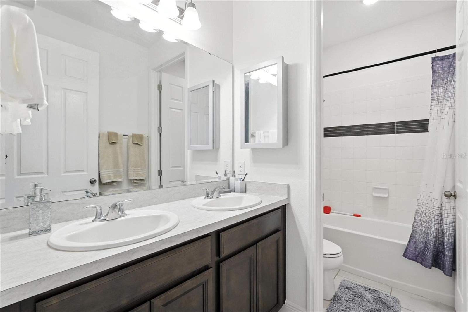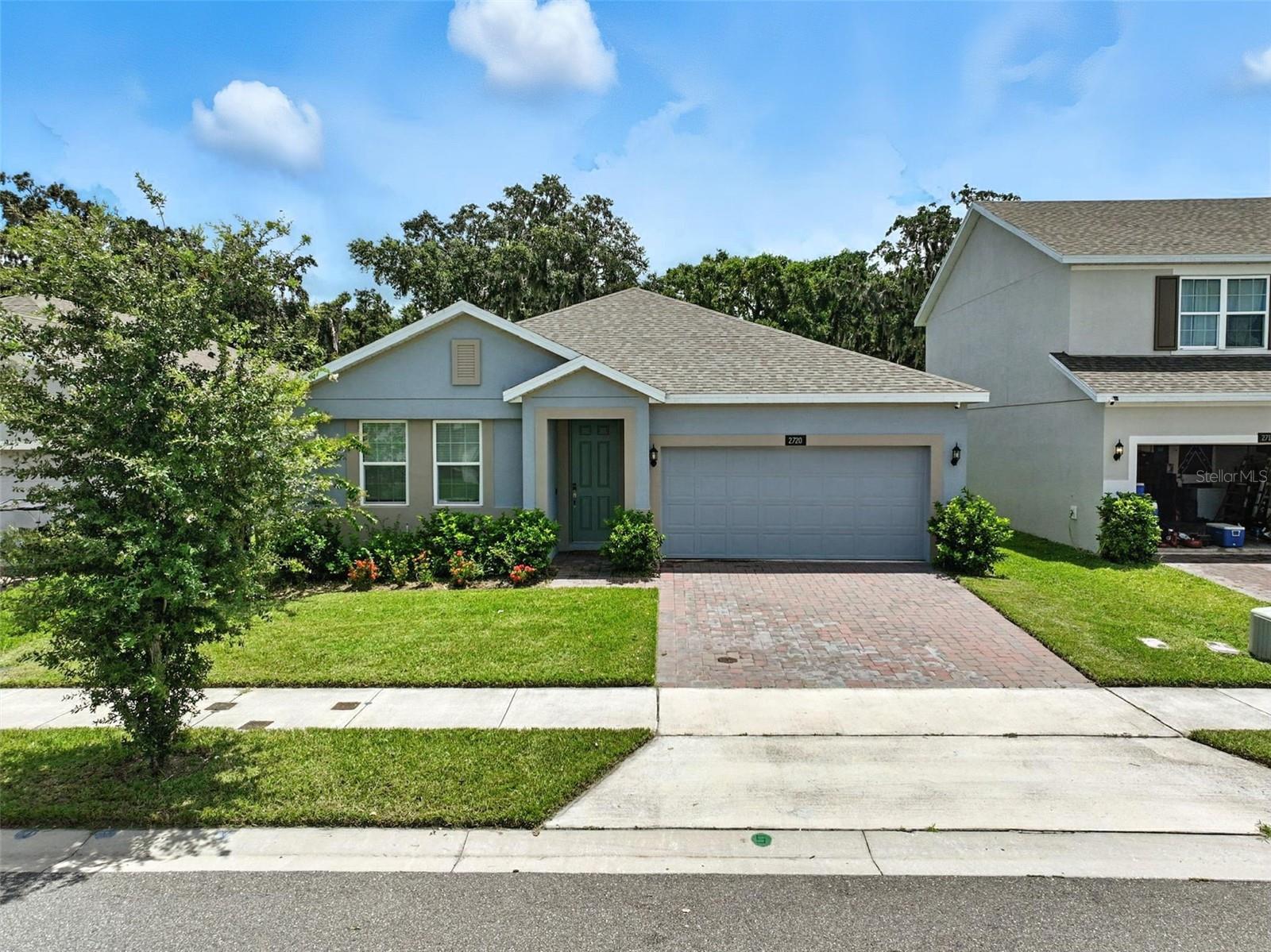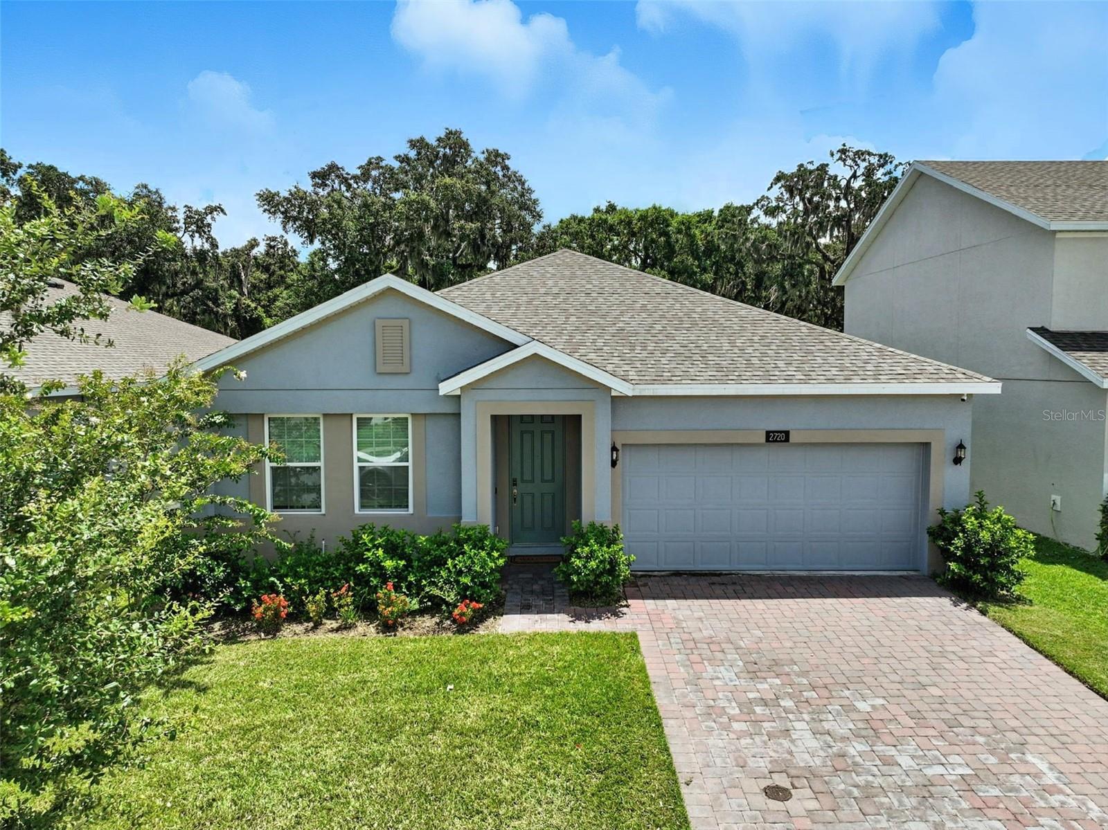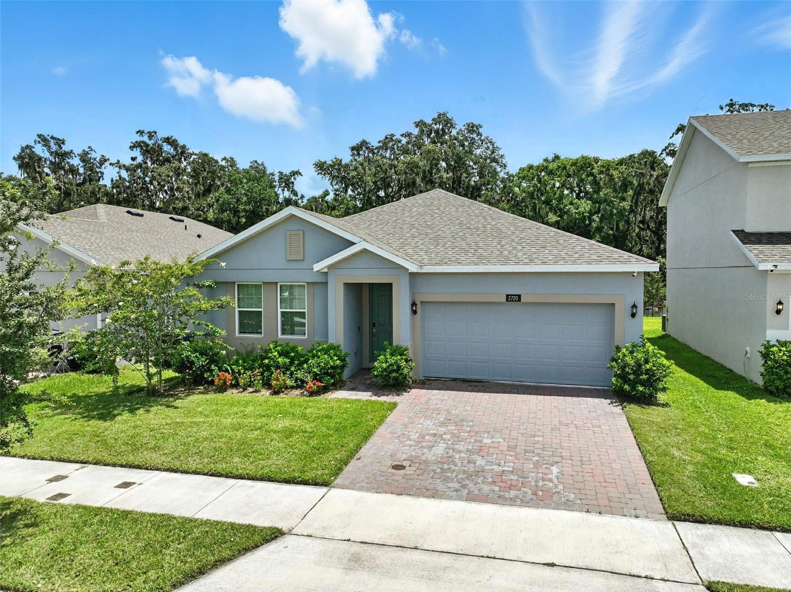 This is a brand new property just built in September of 2023 The Kensington Flex! 4 Bedroom, 2 Bath, Heated Area:2103sf. This house has upgrades and options built in, including solid surface countertops, 9'4". ceilings, a tub in the primary bath, and designer-selected cabinets and flooring upgrades. This home is focused on large bedroom and living spaces as well as an open-concept kitchen maximizing room to entertain and unwind. both bathrooms feature double vanities and privacy doors as well as a garage with extra space for storage. Community features: zero entry resort style pool, splash zone, covered playground, covered entertainment area, sun deck, children's soccer field, picnic areas, canals with boat ramp that connect to alligator lake, cabanas, dock by pool.