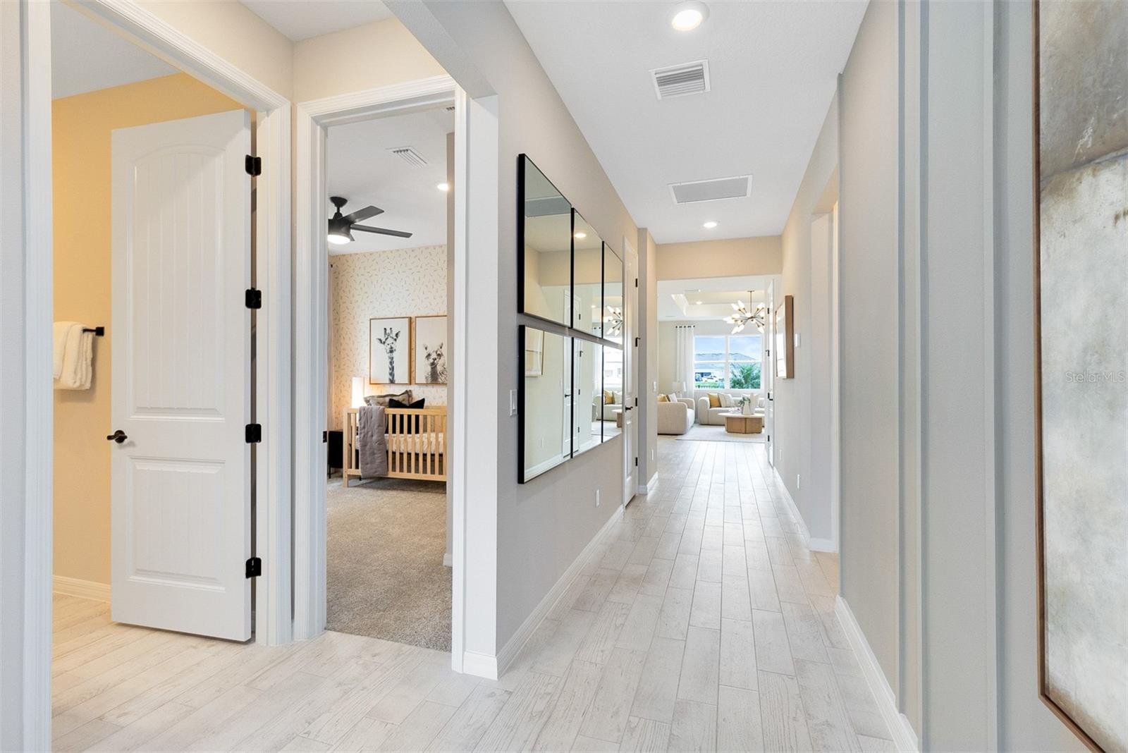 Under Construction. Anticipate the arrival of Pulte Homes at Bridgewalk, offering new construction single-family homes. Experience the charm and secluded ambiance of this boating community and relish in the ease of reaching Lake Nona's celebrated shopping, dining, and entertainment. Offering a variety of amenities including sports courts, a private boat launch, and more. Now Selling Onsite with 3 Models Open Daily. Welcome to your dream home – the Highgate by Pulte. This stunning new construction features 4 spacious bedrooms, 2 luxurious bathrooms, and a 2-car garage. With its open-concept design, the kitchen, café, and gathering room seamlessly flow together, leading to a serene covered lanai and backyard, perfect for entertaining. The chef-inspired kitchen is equipped with Whirlpool stainless steel appliances – including a refrigerator, a convenient walk-in pantry, and a large center island ideal for meal prep and socializing. It’s complemented by elegant Winstead White cabinetry, Lagoon quartz countertops, and a charming decorative tile backsplash, with an upgraded sink, faucet, and pendant lighting pre-wiring for added luxury. The private Owner’s Suite includes a large walk-in closet and a spa-like en suite bathroom featuring dual sinks set on a Blanco Maple quartz-topped vanity, a private water closet, and a frameless glass-door walk-in shower. Three additional bedrooms, a second bathroom, and a spacious laundry room are thoughtfully positioned at the front of the home, ensuring ample privacy and space for the whole family. This expansive home is filled with professionally curated design selections, including Florida Mediterranean exterior finishes and pavers at the driveway and lanai. Inside, enjoy upgraded interior wall paint in City Loft by Sherwin Williams, 8' interior doors, and Shaw Brand Wood-Look Luxury Vinyl Plank flooring in the main areas and owner’s suite. Bathrooms and laundry spaces are accented with stylish ceramic tile, while plush, stain-resistant, carpet by Shaw ensures comfort in the secondary bedrooms. For added convenience and peace of mind, the home includes smart doorbell and thermostat technology, LED downlights, and a host of modern amenities to fit your lifestyle. For the finishing touch, this home is complete with 2” faux wood blinds and washer/dryer for added convenience from move-in day and beyond! This expansive Highgate home offers the perfect balance of comfort, style, and functionality – schedule your tour today!