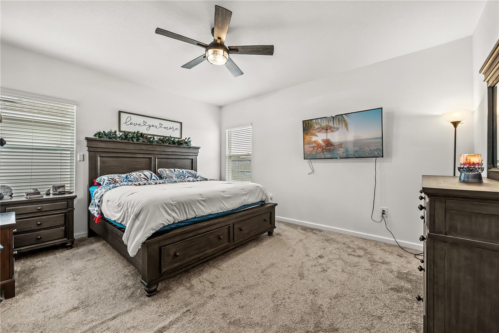 This 3-year-old home is located near Harmony and offers access to beautiful Harmony trails, while being close to shopping, dining, and zoned for A rated schools. Features include energy efficient windows and solar panels with a $67 monthly lease, no carpet on the first floor, and a spacious kitchen with plenty of storage. All bedrooms are located upstairs, including the primary suite with a garden tub. The home also offers open living areas, large bedrooms, and a convenient drop-off zone in the garage. Modern, efficient, and well maintained, this property provides the perfect balance of comfort and location.