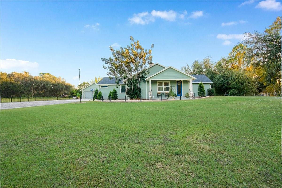 Welcome to your private retreat in the heart of Saint Cloud! This beautifully maintained 4-bedroom, 2 1.5 bath home sits on 1.2 acres of pristine land with with fenced electronic gate, offering the perfect balance of quiet country living with the convenience of nearby shopping, dining, and major commuter routes. This home boasts a 2 year old roof, and 3 year old HVAC system. Step inside to find an inviting open floor plan featuring high ceilings, abundant natural light, and a spacious living area centered around a cozy fireplace. The chef-inspired kitchen offers generous counter space, prep sink, beverage cooler, beautiful cabinetry, and a seamless connection to the main living areas fully equipped with AV Sound System— ideal for entertaining. The primary suite is a true sanctuary, complete with dual closets, a large bathroom with a jacuzzi garden tub, and a private outdoor shower for a relaxing, spa-like escape. Outdoors, enjoy Florida living at its finest. The expansive yard offers unmatched privacy, offering custom touches throughout. You will find a screened in porch area, additional uncovered paved sitting area with paved fireplace, covered grill station, custom built Covered bar area with Live edge countertop-heaters-sound system & speakers, fire pit, above ground pool, barn, RV hookup and a detached garage that’s perfect for extra storage or hobby space. Located just minutes from the Florida Turnpike, downtown Saint Cloud, schools, lakes, and parks, this home delivers comfort, convenience, and space. Make this your new sanctuary!