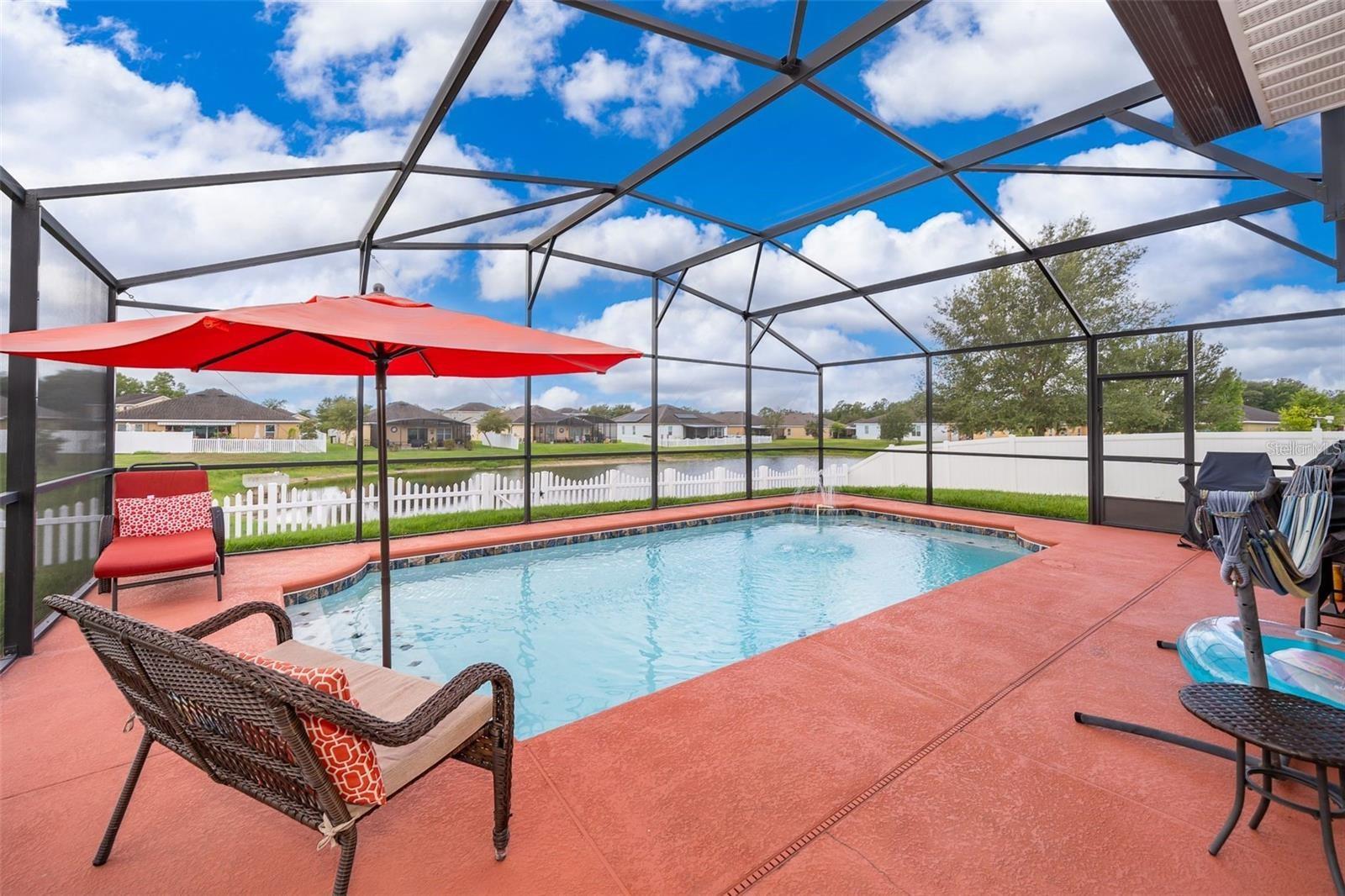 POOL HOME. This 4-bedrooms, 2-baths HEATED POOL home Features a .24 Acre lot, POND VIEW, QUARTZ counter tops in kitchen and bathrooms, Formal LIVING and DINING, Open concept floor plan with split Bedrooms, TILE floors through-out, stainless steel appliances, excellent LOCATION and LOW HOA. In addition, you'll love the private fenced-in backyard with tranquil POND VIEW. Located super close to FL Turnpike exits, grocery stores, restaurants, Lake Nona, 30 minutes to Orlando International Airport and theme parks. HOME WARRANTY INCLUDED. LOVE WHERE YOU LIVE!! This one won't last long on the market. Buyer to verify all room sizes and MLS information