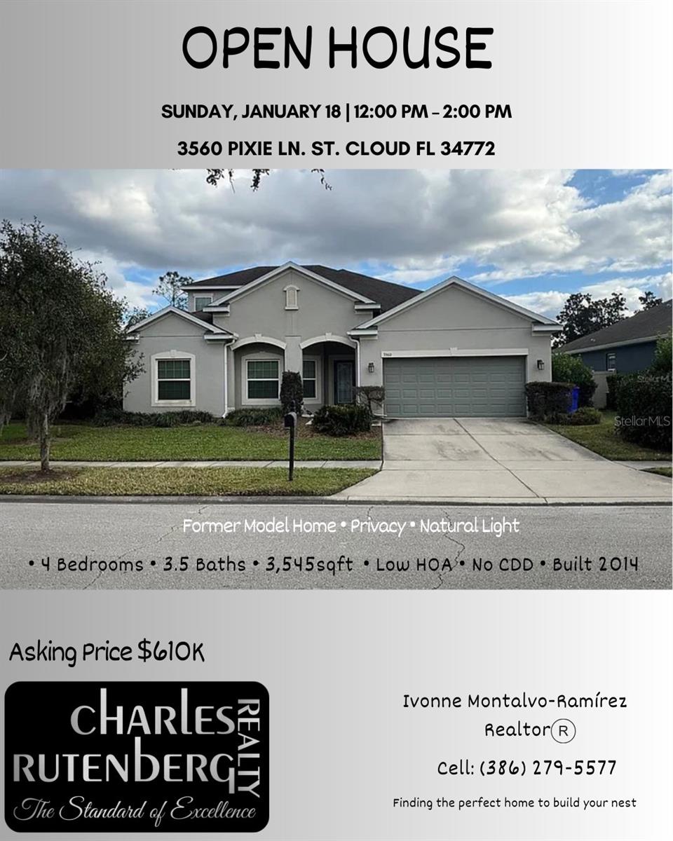 Former Model home now offered for sale. The Bonita Model has 4 bedrooms, 3.5 baths with Loft and no rear neighbor! This home is located just minutes from the FL Turnpike exit. It is loaded with options that include wood floors, a huge 26 x 15 lanai and a 2nd floor bonus room with full bath. Many upgrades including 42" kitchen cabinets w/ crown moulding, stainless steel appilance package, quartz kitchen counters and quartz counters in all bathrooms. Master bath features double sink, garden tub, large shower stall with tile surround and decorative listel tile, and spacious walk-in closet. Amenities include swimming pool and walking trails. Only 20 minutes to The Loop / shopping and dining area, as well as 35 minutes to Universal Studios. Call today for a showing.