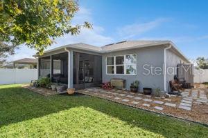 Welcome to this beautifully maintained, NO REAR NEIGHBOR model-like home located in the desirable Gramercy Park community in Saint Cloud. Offering 1894 square feet of thoughtfully designed living space with gorgeous, warm luxury vinyl flooring, this 3-bedroom, 2-bath residence features an open and versatile floor plan perfect for today's lifestyle. The spacious family room flows seamlessly into a large dining area and open kitchen, creating an ideal space for everyday living and entertaining. The kitchen is equipped with solid-surface countertops, stainless steel appliances, a breakfast bar, and a charming view of the covered back patio and the backyard. A flexible bonus space provides endless possibilities-perfect for a home office, game room, or formal dining area. The split-bedroom plan offers privacy, with a generous primary suite featuring a walk-in closet and an en-suite bath complete with a relaxing garden tub and a separate walk-in shower. Two front bedrooms share a well-appointed hall bath. Step outside through sliding glass doors to the covered, screened porch-an inviting spot to unwind or entertain. The backyard provides ample space for gardening, barbeques, and gatherings with family and friends, all while enjoying peaceful views with no rear neighbors, overlooking a tranquil pasture. Additional highlights include a two-car garage, an inside laundry room, and meticulous landscaping that enhances the home's exceptional curb appeal. Major updates provide peace of mind, including a NEW ROOF, Upgraded Shingles (9/24, NEW WATER SOFTENER (2025), and NEWER HVAC IN 9/24. Gramercy Park is conveniently located near the Florida Turnpike, Orlando International Airport, Saint Cloud amenities, East Coast Beaches, churches, schools, and shopping. Hurry, schedule an appointment today to view this fabulous home.