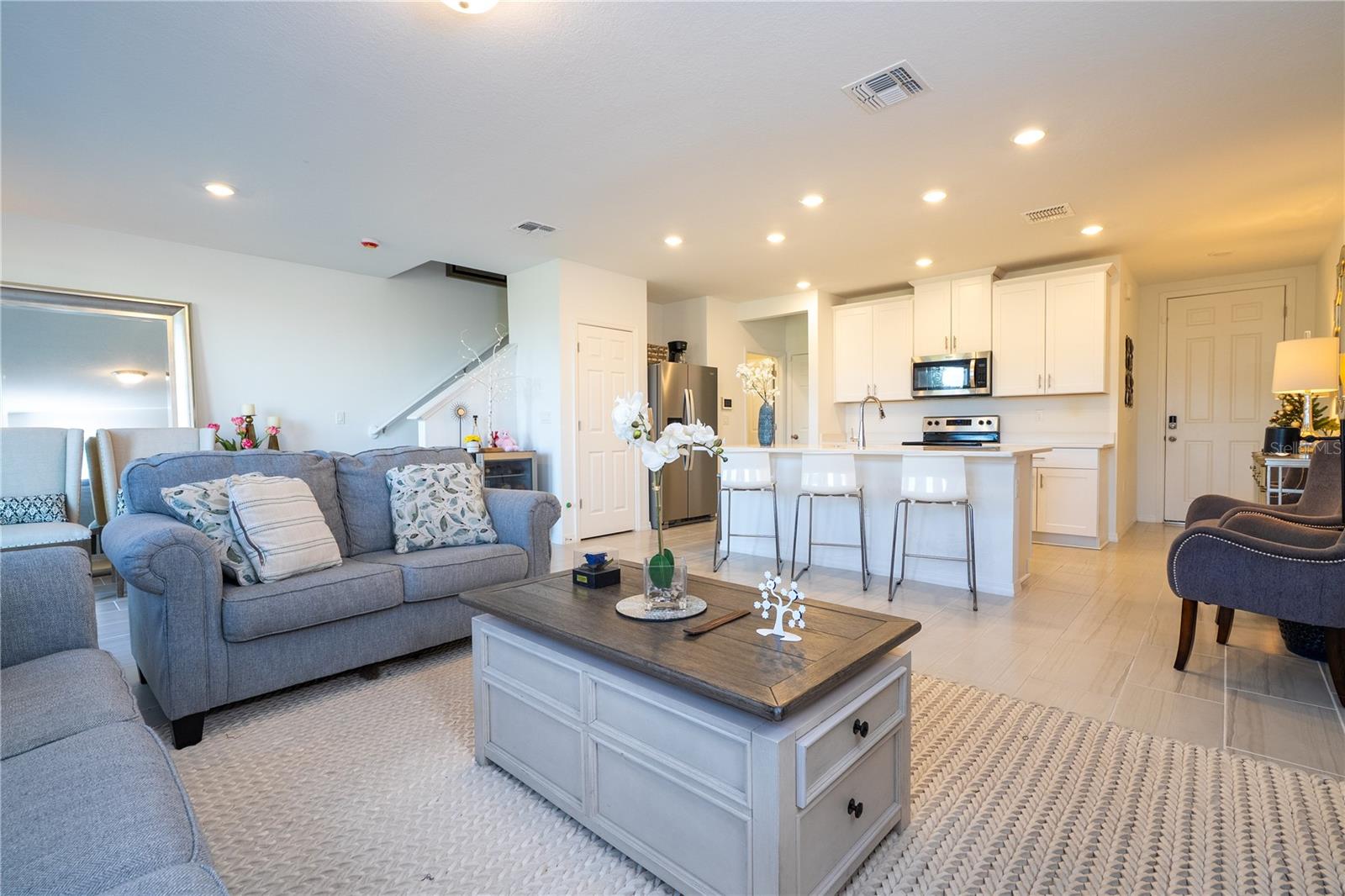 Welcome to 4329 Eagle Trail Bend, a beautifully maintained 3-bedroom, 2.5-bath townhome in the desirable Meadow at Crossprairie Townes. With 1,674 sq. ft. of heated living space, this home offers a bright, open floor plan that seamlessly connects the living, dining, and kitchen areas—perfect for everyday living or entertaining. Upstairs, the spacious primary suite features a private bath and ample closet space, complemented by two additional bedrooms and a full bath. Enjoy the convenience of a 2-car garage, energy-efficient windows, and a home built with durable block and stucco construction. The community offers a pool, playground, and beautifully landscaped common areas, all while being close to shopping, dining, and top-rated Osceola County schools. Move in and experience low-maintenance, modern living in a welcoming neighborhood, making it ideal ideal for residents and investors alike.