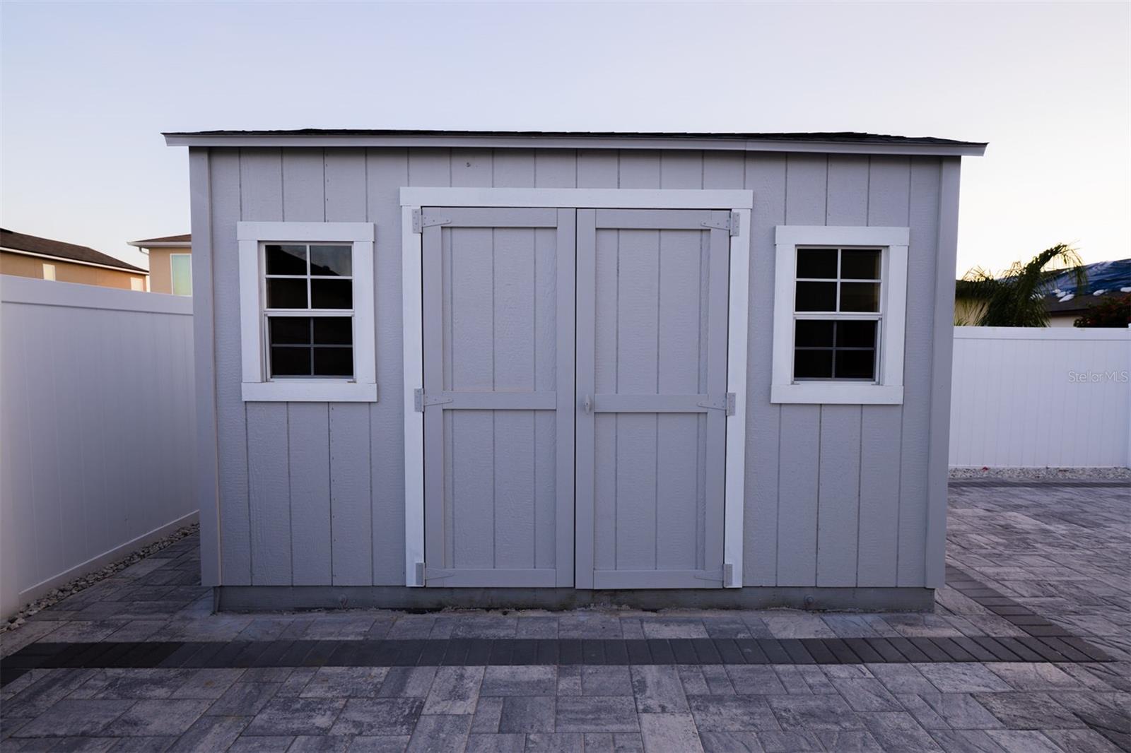 This home features stainless steel appliances, granite countertops, a spacious pantry, and a master suite with double sinks. The backyard is paved and fenced, includes a covered lanai, and comes with a 10x12 shed. Double sliding doors, blinds, and fans are included, along with a new water heater and water softener. The home has solar panels to save in electricity.