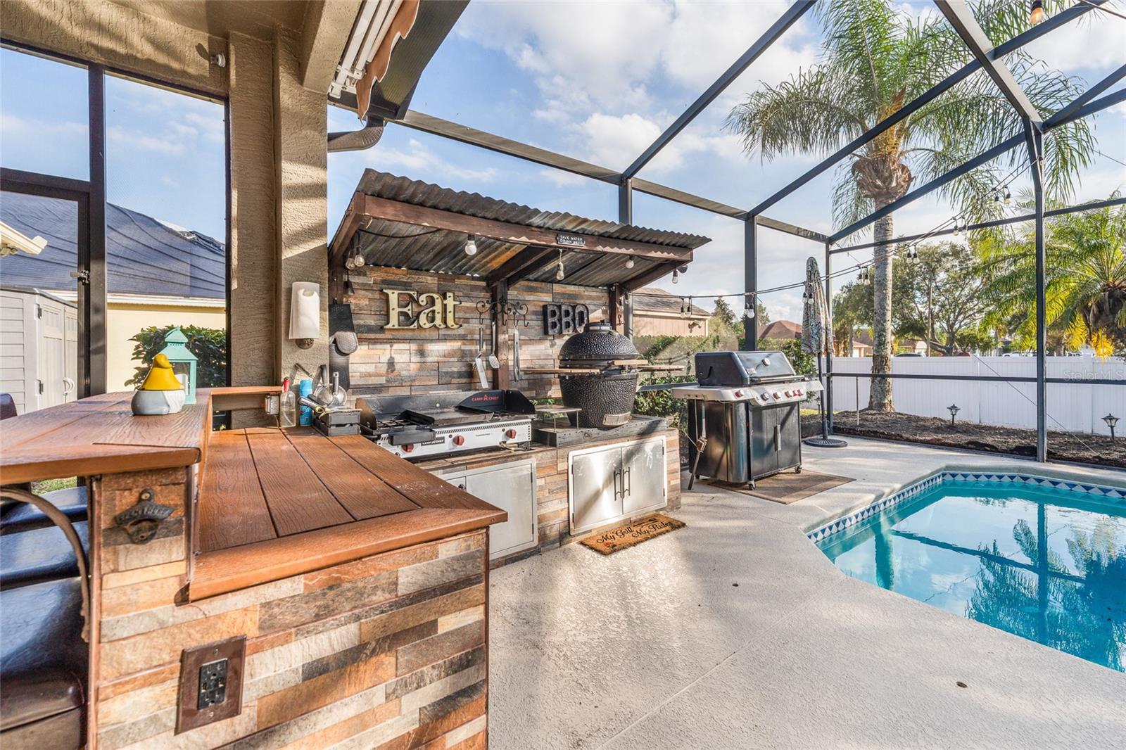 This 5 bed, 3.5 bath, pool home leaves nothing left to be desired. The owner really made great choices when this home was built. As you approach the walkway, you will love the covered porch and palm trees that dress the entrance. As you walk in, you will immediately feel the elegance of this home and start to notice some if its character and details. The foyer has beautiful inlayed decorative tile and a nice architectural design in the ceiling. Formal living and Formal dining room that leads you to the butler's pantry and wet bar area, then to the large, open and fully upgraded kitchen. SOME of the upgrades in the kitchen include 42" cabinets with crown molding, tile backsplash and granite countertops. If you love gatherings around the kitchen then you will love the huge, oversized island and there is still a big area for the breakfast nook. Don't forget the matching stainless steel, Kenmore Appliance Package. A den with French Door entry and a large family room will add to the convenience of usable space downstairs. If you like bright homes, there is plenty of daylight that shines in and the view of the pool from almost anywhere downstairs adds to that great feeling as you walk around. The elegant stair way upstairs leads you to a wraparound balcony style where you will find 3 bedrooms, your upstairs laundry with full set of cabinets and folding counter and your Master Suite with extended sitting area. As if all that didn't peak your interest, wait until you step into the backyard oasis with summer kitchen and heated screened in pool and patio with no rear facing neighbors. Schedule your private tour today - This Home Will Not Last Long!!