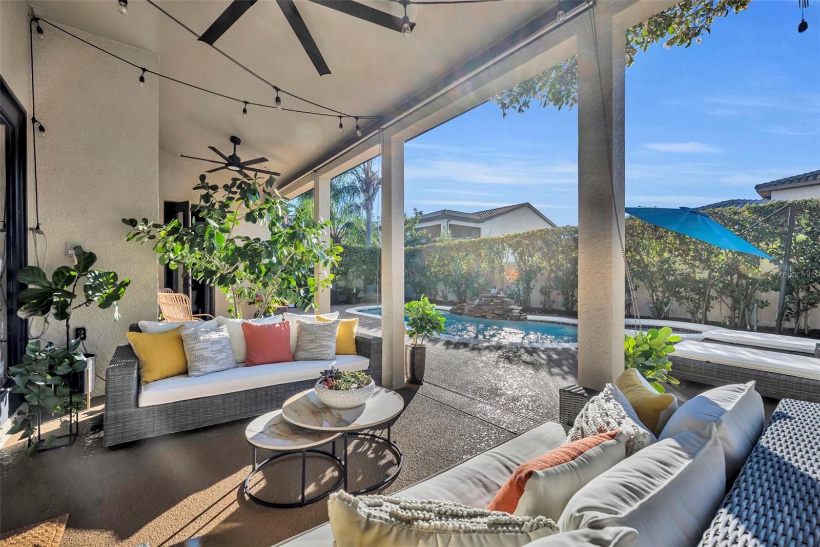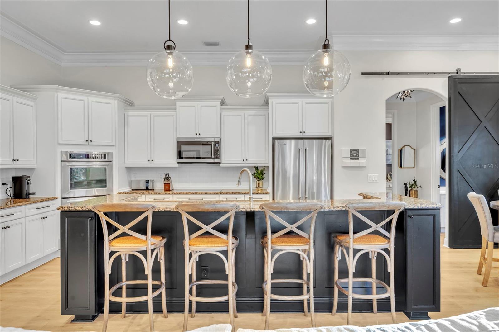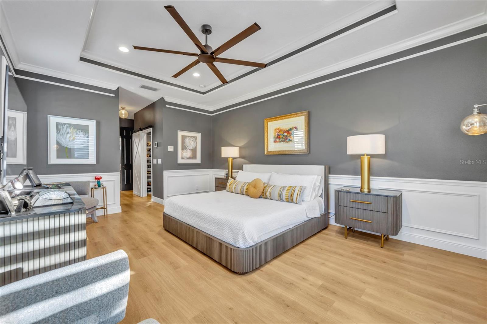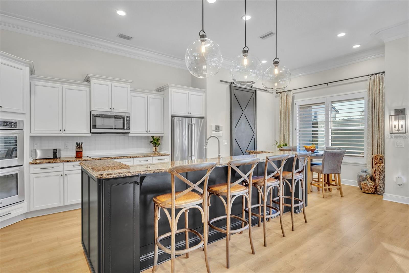 ** Designer-Inspired Single-Level Pool Home with 2024 Roof in Gated Community** Welcome to this exceptional former model home, ideally situated on a quiet cul-de-sac within the gated and highly sought-after community of East Lake Park. Thoughtfully appointed with designer upgrades throughout, this single-level residence offers over 3,000 square feet of living space in a desirable three-way split floor plan, ideal for multi-generational living or flexible privacy. Architectural details include 12-foot coffered and tray ceilings, custom millwork, archways, and built-ins throughout. The home features 4 bedrooms, 3.5 baths, a private study/den with 8-foot glass doors, and an oversized three-car garage with ceiling-mounted storage racks. Notable upgrades include solid-wood Norman plantation shutters on all windows, Mohawk wood laminate flooring throughout the main living and bedroom areas, large ceramic tile in the baths, custom solid-wood barn doors, and a newly sealed paver driveway. The kitchen is a standout, featuring a dramatic 11-foot island with bar-height seating, 42-inch cabinetry, granite countertops, stainless steel KitchenAid appliances, and a brand-new LG glass cooktop — all perfect for the devoted chef! The well-planned layout places the kitchen overlooking the expansive family room, with formal living and dining areas adjacent, making gatherings of any size effortless. At the rear of the home, an inviting indoor-outdoor living experience awaits. Eight-foot glass-panel French doors open to a covered lanai overlooking a private backyard retreat complete with a resort-style pool and spa, a waterfall feature, lush tropical landscaping, and convenient pool bath access. Ambient lighting enhances the setting, creating an ideal backdrop for both daytime enjoyment and evening entertaining. Beyond the pool deck, mature shrubs provide privacy, while additional yard space offers flexibility for a kitchen garden, play area, or pet run. Storage is abundant with multiple closets, an oversized utility room, extensive cabinetry, and the spacious three-car garage. Lovingly maintained, this home is TRULY MOVE-IN READY, with recent updates including a NEW ROOF IN 2024, fresh paint, upgraded lighting fixtures, and meticulously cared-for systems—making both move-in and insurance a breeze. East Lake Park offers a peaceful residential setting with exceptional convenience. The community is ideally located near Lake Nona Medical City, including the VA campus, UCF College of Medicine, Nemours, and the UF Research Center. Plus, take advantage of easy access to 417, 528, and Florida’s Turnpike, with abundant shopping, dining, and entertainment options in Lake Nona and St. Cloud. Prepare to be wowed—this home delivers designer style, functional living, and an unbeatable location that just can't be found elsewhere!