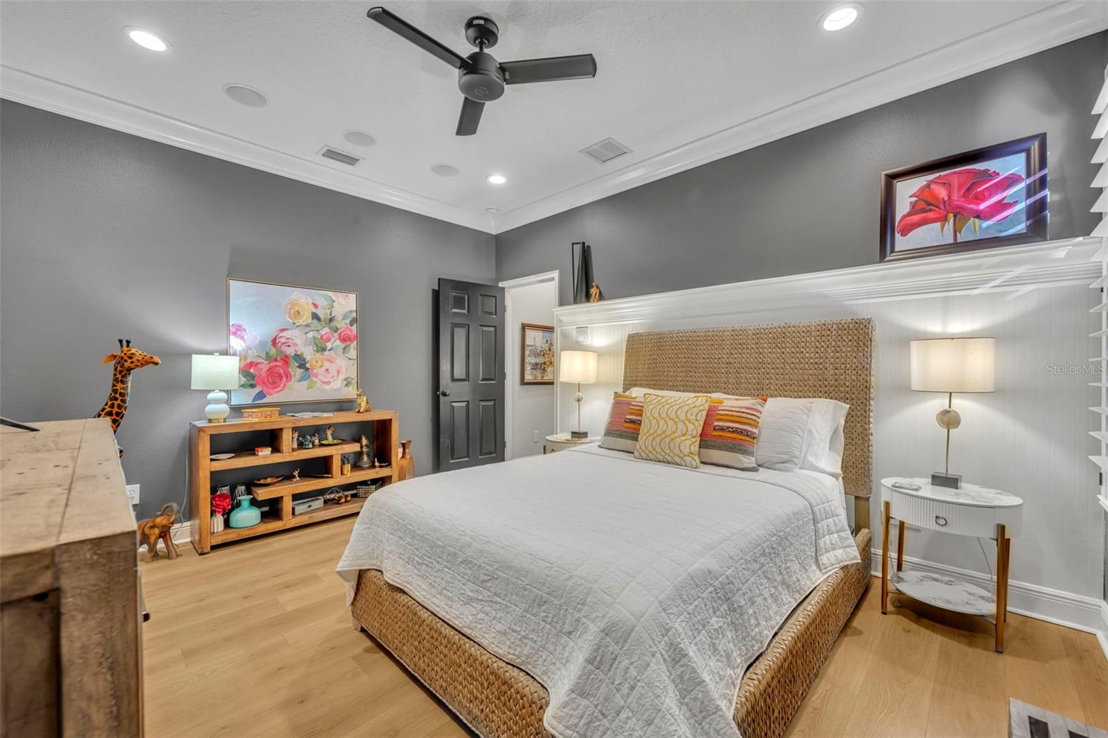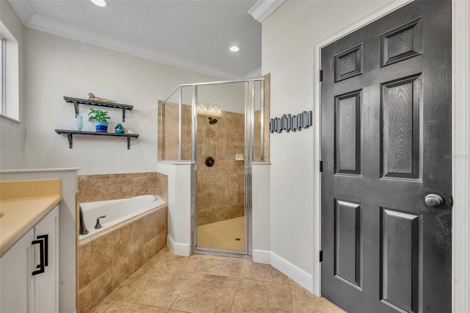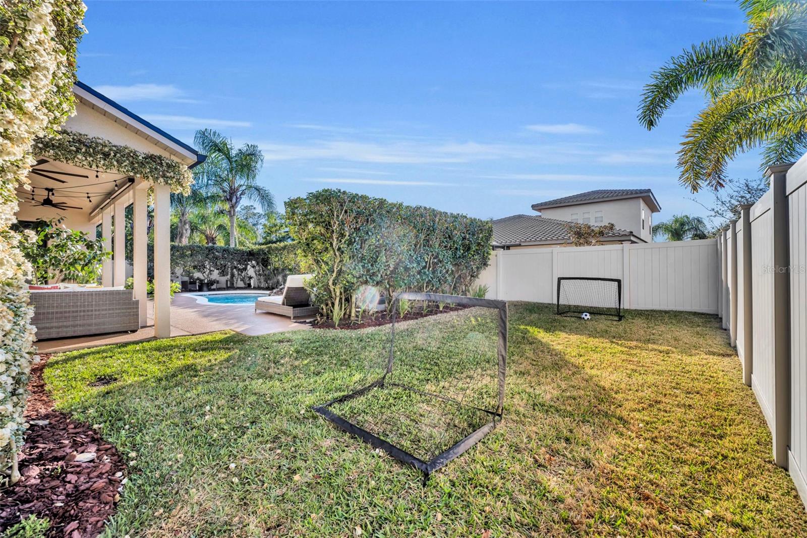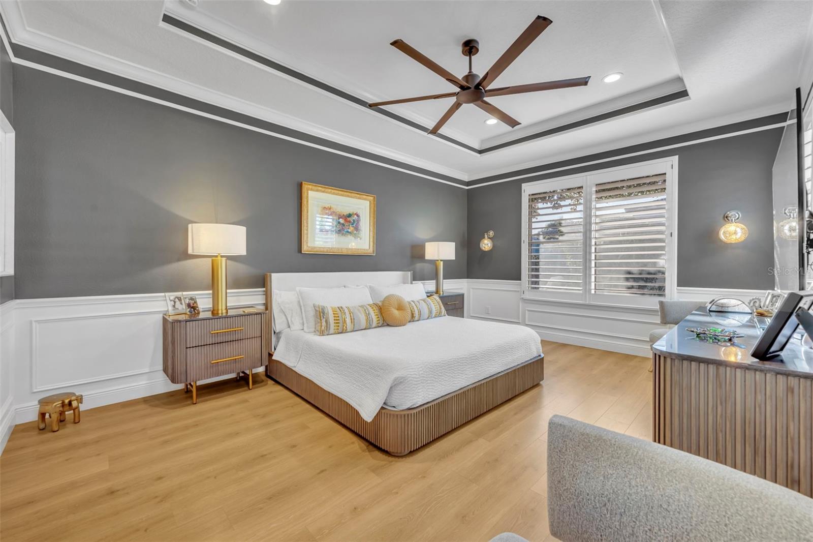 ** Designer-Inspired Single-Level Pool Home with 2024 Roof in Gated Community** Welcome to this exceptional former model home, ideally situated on a quiet cul-de-sac within the gated and highly sought-after community of East Lake Park. Thoughtfully appointed with designer upgrades throughout, this single-level residence offers over 3,000 square feet of living space in a desirable three-way split floor plan, ideal for multi-generational living or flexible privacy. Architectural details include 12-foot coffered and tray ceilings, custom millwork, archways, and built-ins throughout. The home features 4 bedrooms, 3.5 baths, a private study/den with 8-foot glass doors, and an oversized three-car garage with ceiling-mounted storage racks. Notable upgrades include solid-wood Norman plantation shutters on all windows, Mohawk wood laminate flooring throughout the main living and bedroom areas, large ceramic tile in the baths, custom solid-wood barn doors, and a newly sealed paver driveway. The kitchen is a standout, featuring a dramatic 11-foot island with bar-height seating, 42-inch cabinetry, granite countertops, stainless steel KitchenAid appliances, and a brand-new LG glass cooktop — all perfect for the devoted chef! The well-planned layout places the kitchen overlooking the expansive family room, with formal living and dining areas adjacent, making gatherings of any size effortless. At the rear of the home, an inviting indoor-outdoor living experience awaits. Eight-foot glass-panel French doors open to a covered lanai overlooking a private backyard retreat complete with a resort-style pool and spa, a waterfall feature, lush tropical landscaping, and convenient pool bath access. Ambient lighting enhances the setting, creating an ideal backdrop for both daytime enjoyment and evening entertaining. Beyond the pool deck, mature shrubs provide privacy, while additional yard space offers flexibility for a kitchen garden, play area, or pet run. Storage is abundant with multiple closets, an oversized utility room, extensive cabinetry, and the spacious three-car garage. Lovingly maintained, this home is TRULY MOVE-IN READY, with recent updates including a NEW ROOF IN 2024, fresh paint, upgraded lighting fixtures, and meticulously cared-for systems—making both move-in and insurance a breeze. East Lake Park offers a peaceful residential setting with exceptional convenience. The community is ideally located near Lake Nona Medical City, including the VA campus, UCF College of Medicine, Nemours, and the UF Research Center. Plus, take advantage of easy access to 417, 528, and Florida’s Turnpike, with abundant shopping, dining, and entertainment options in Lake Nona and St. Cloud. Prepare to be wowed—this home delivers designer style, functional living, and an unbeatable location that just can't be found elsewhere!