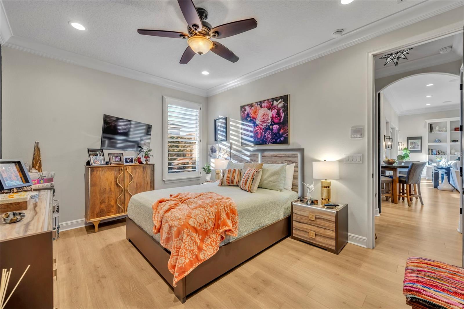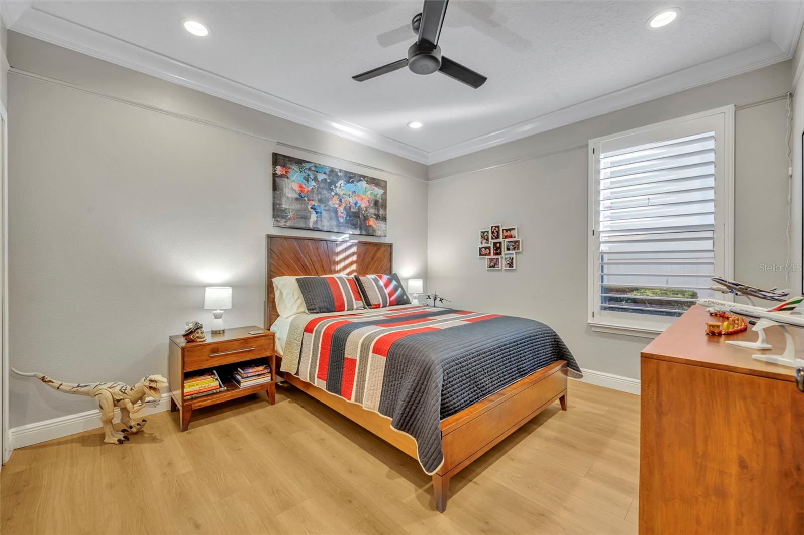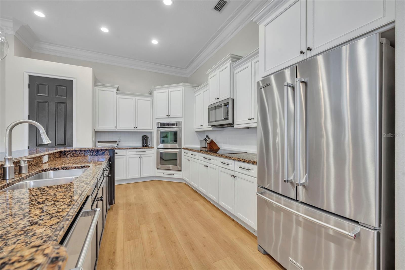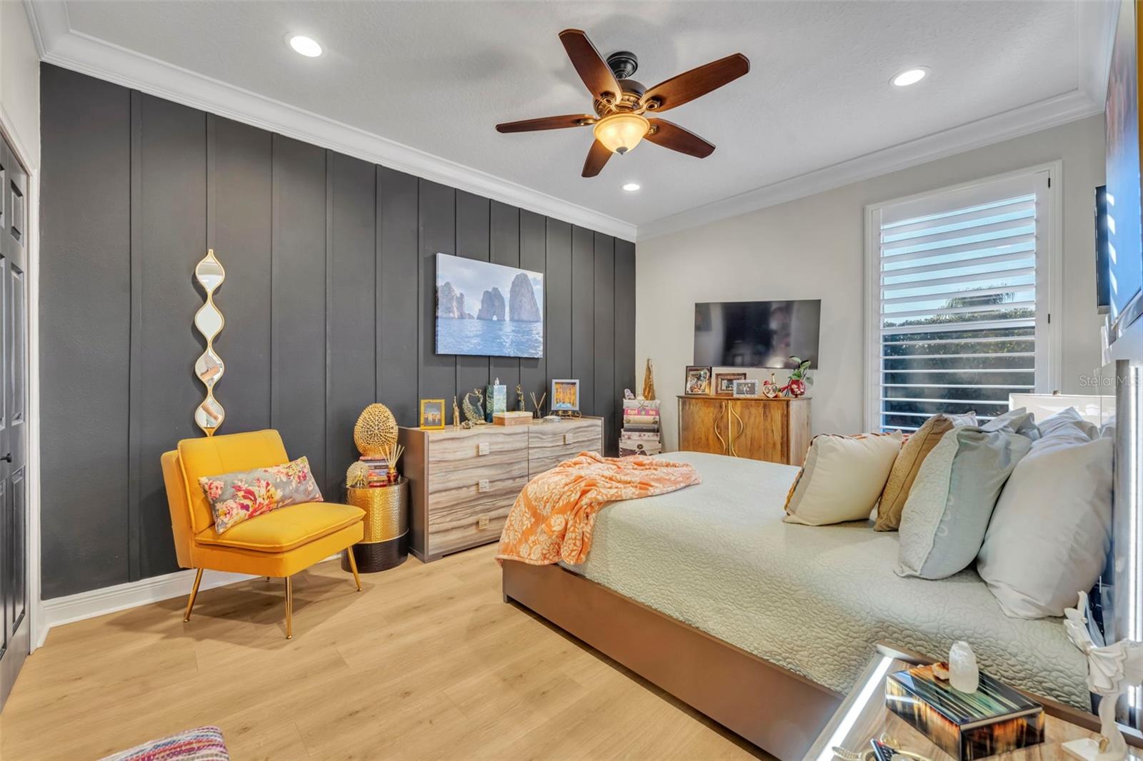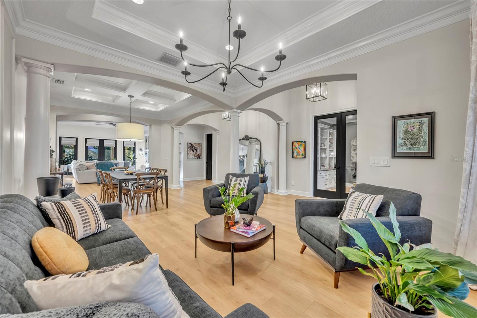 ** Designer-Inspired Single-Level Pool Home with 2024 Roof in Gated Community** Welcome to this exceptional former model home, ideally situated on a quiet cul-de-sac within the gated and highly sought-after community of East Lake Park. Thoughtfully appointed with designer upgrades throughout, this single-level residence offers over 3,000 square feet of living space in a desirable three-way split floor plan, ideal for multi-generational living or flexible privacy. Architectural details include 12-foot coffered and tray ceilings, custom millwork, archways, and built-ins throughout. The home features 4 bedrooms, 3.5 baths, a private study/den with 8-foot glass doors, and an oversized three-car garage with ceiling-mounted storage racks. Notable upgrades include solid-wood Norman plantation shutters on all windows, Mohawk wood laminate flooring throughout the main living and bedroom areas, large ceramic tile in the baths, custom solid-wood barn doors, and a newly sealed paver driveway. The kitchen is a standout, featuring a dramatic 11-foot island with bar-height seating, 42-inch cabinetry, granite countertops, stainless steel KitchenAid appliances, and a brand-new LG glass cooktop — all perfect for the devoted chef! The well-planned layout places the kitchen overlooking the expansive family room, with formal living and dining areas adjacent, making gatherings of any size effortless. At the rear of the home, an inviting indoor-outdoor living experience awaits. Eight-foot glass-panel French doors open to a covered lanai overlooking a private backyard retreat complete with a resort-style pool and spa, a waterfall feature, lush tropical landscaping, and convenient pool bath access. Ambient lighting enhances the setting, creating an ideal backdrop for both daytime enjoyment and evening entertaining. Beyond the pool deck, mature shrubs provide privacy, while additional yard space offers flexibility for a kitchen garden, play area, or pet run. Storage is abundant with multiple closets, an oversized utility room, extensive cabinetry, and the spacious three-car garage. Lovingly maintained, this home is TRULY MOVE-IN READY, with recent updates including a NEW ROOF IN 2024, fresh paint, upgraded lighting fixtures, and meticulously cared-for systems—making both move-in and insurance a breeze. East Lake Park offers a peaceful residential setting with exceptional convenience. The community is ideally located near Lake Nona Medical City, including the VA campus, UCF College of Medicine, Nemours, and the UF Research Center. Plus, take advantage of easy access to 417, 528, and Florida’s Turnpike, with abundant shopping, dining, and entertainment options in Lake Nona and St. Cloud. Prepare to be wowed—this home delivers designer style, functional living, and an unbeatable location that just can't be found elsewhere!