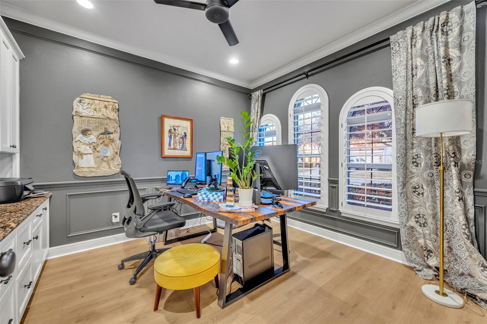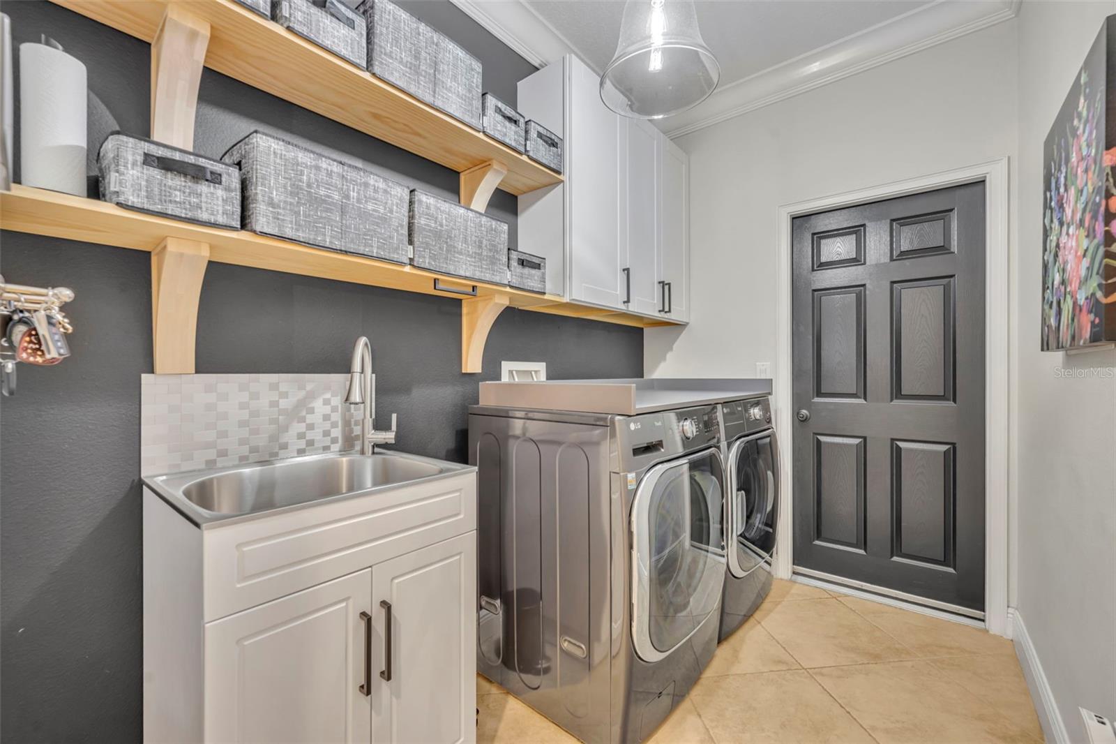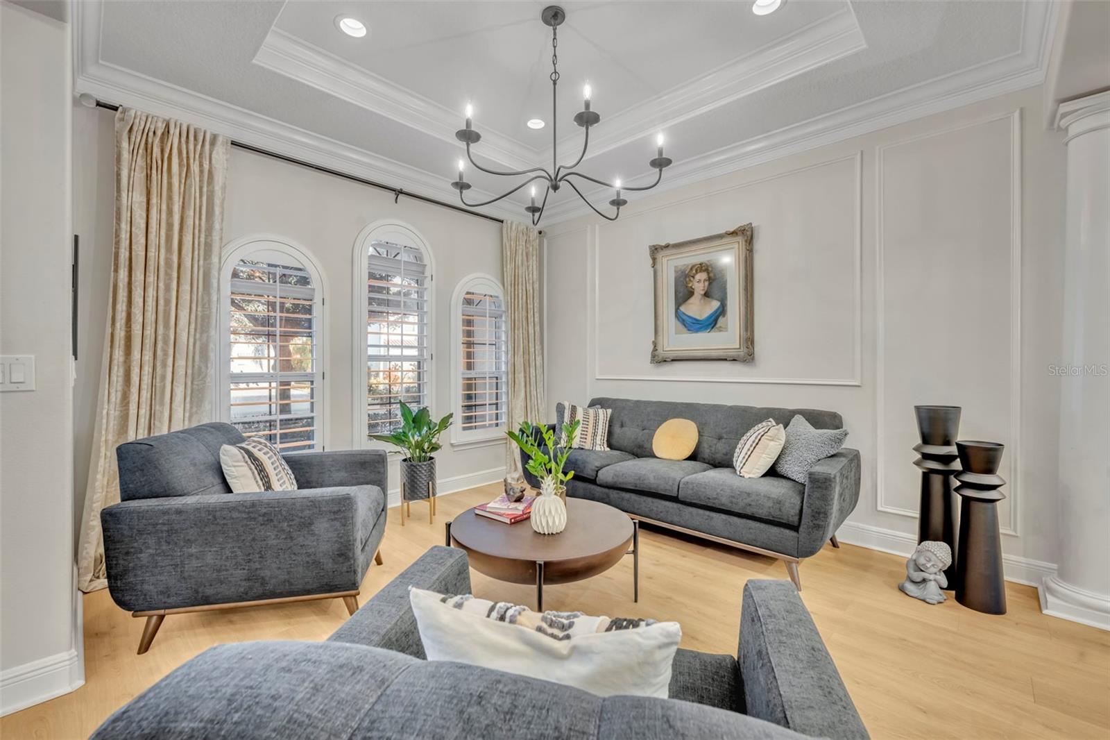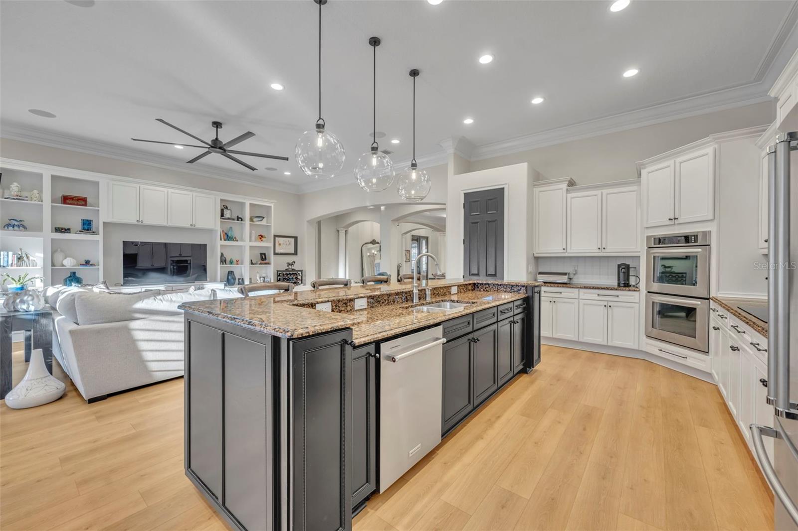 ** Designer-Inspired Single-Level Pool Home with 2024 Roof in Gated Community** Welcome to this exceptional former model home, ideally situated on a quiet cul-de-sac within the gated and highly sought-after community of East Lake Park. Thoughtfully appointed with designer upgrades throughout, this single-level residence offers over 3,000 square feet of living space in a desirable three-way split floor plan, ideal for multi-generational living or flexible privacy. Architectural details include 12-foot coffered and tray ceilings, custom millwork, archways, and built-ins throughout. The home features 4 bedrooms, 3.5 baths, a private study/den with 8-foot glass doors, and an oversized three-car garage with ceiling-mounted storage racks. Notable upgrades include solid-wood Norman plantation shutters on all windows, Mohawk wood laminate flooring throughout the main living and bedroom areas, large ceramic tile in the baths, custom solid-wood barn doors, and a newly sealed paver driveway. The kitchen is a standout, featuring a dramatic 11-foot island with bar-height seating, 42-inch cabinetry, granite countertops, stainless steel KitchenAid appliances, and a brand-new LG glass cooktop — all perfect for the devoted chef! The well-planned layout places the kitchen overlooking the expansive family room, with formal living and dining areas adjacent, making gatherings of any size effortless. At the rear of the home, an inviting indoor-outdoor living experience awaits. Eight-foot glass-panel French doors open to a covered lanai overlooking a private backyard retreat complete with a resort-style pool and spa, a waterfall feature, lush tropical landscaping, and convenient pool bath access. Ambient lighting enhances the setting, creating an ideal backdrop for both daytime enjoyment and evening entertaining. Beyond the pool deck, mature shrubs provide privacy, while additional yard space offers flexibility for a kitchen garden, play area, or pet run. Storage is abundant with multiple closets, an oversized utility room, extensive cabinetry, and the spacious three-car garage. Lovingly maintained, this home is TRULY MOVE-IN READY, with recent updates including a NEW ROOF IN 2024, fresh paint, upgraded lighting fixtures, and meticulously cared-for systems—making both move-in and insurance a breeze. East Lake Park offers a peaceful residential setting with exceptional convenience. The community is ideally located near Lake Nona Medical City, including the VA campus, UCF College of Medicine, Nemours, and the UF Research Center. Plus, take advantage of easy access to 417, 528, and Florida’s Turnpike, with abundant shopping, dining, and entertainment options in Lake Nona and St. Cloud. Prepare to be wowed—this home delivers designer style, functional living, and an unbeatable location that just can't be found elsewhere!
