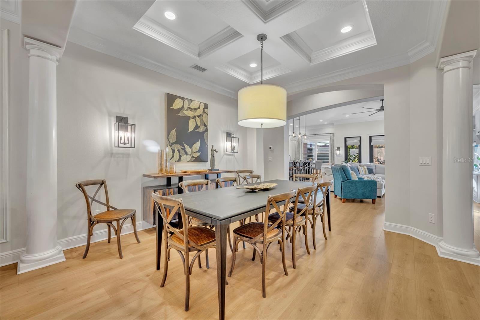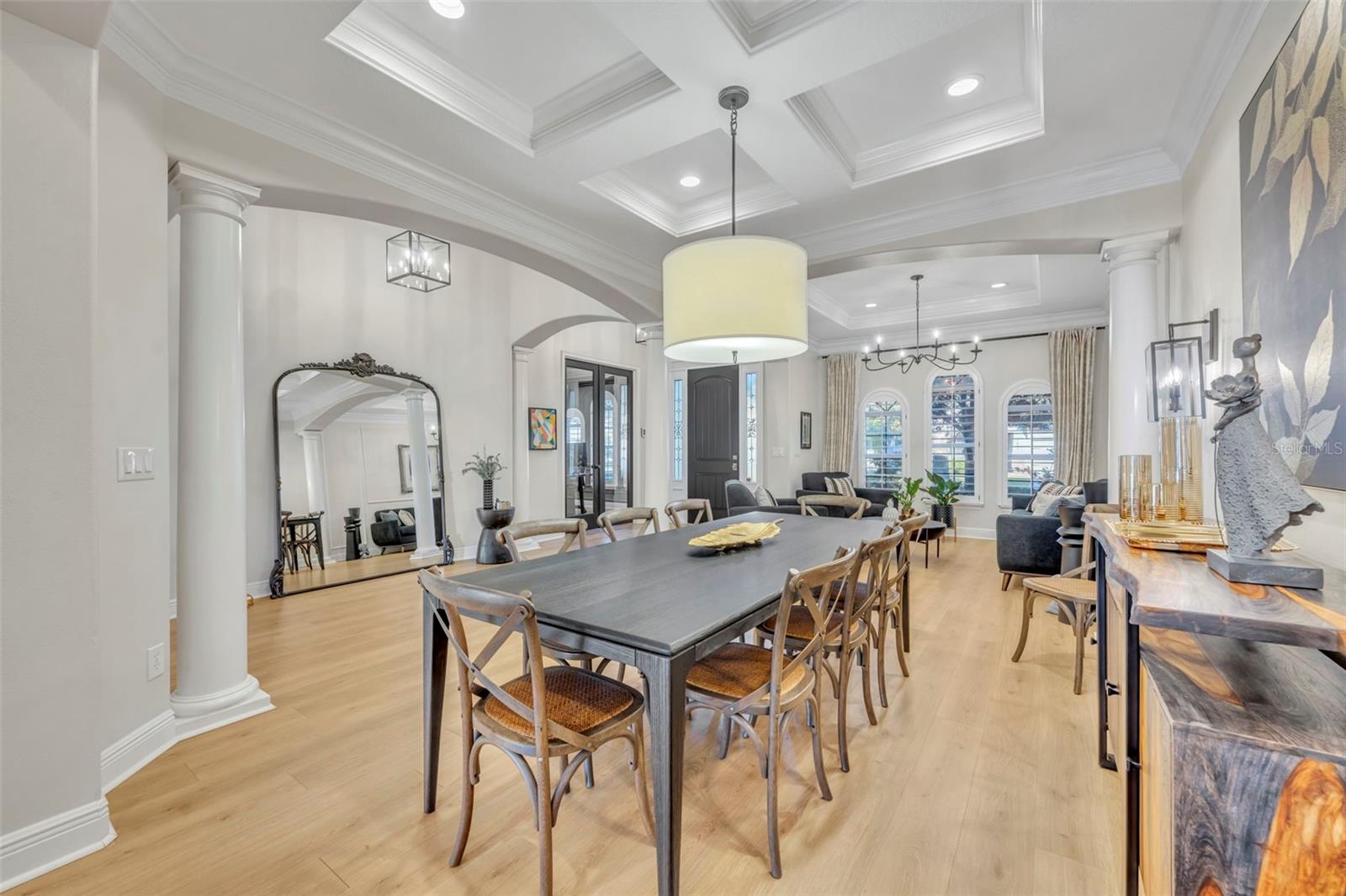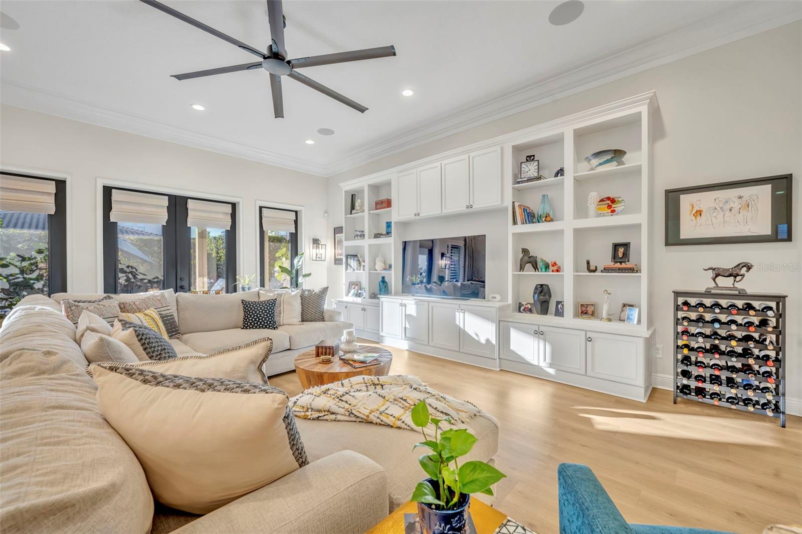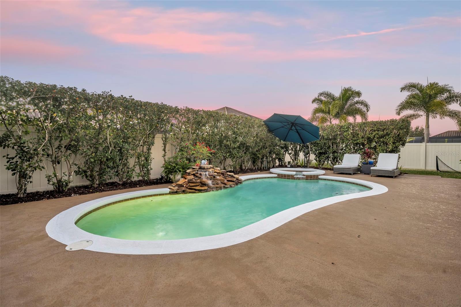 ** Designer-Inspired Single-Level Pool Home with 2024 Roof in Gated Community** Welcome to this exceptional former model home, ideally situated on a quiet cul-de-sac within the gated and highly sought-after community of East Lake Park. Thoughtfully appointed with designer upgrades throughout, this single-level residence offers over 3,000 square feet of living space in a desirable three-way split floor plan, ideal for multi-generational living or flexible privacy. Architectural details include 12-foot coffered and tray ceilings, custom millwork, archways, and built-ins throughout. The home features 4 bedrooms, 3.5 baths, a private study/den with 8-foot glass doors, and an oversized three-car garage with ceiling-mounted storage racks. Notable upgrades include solid-wood Norman plantation shutters on all windows, Mohawk wood laminate flooring throughout the main living and bedroom areas, large ceramic tile in the baths, custom solid-wood barn doors, and a newly sealed paver driveway. The kitchen is a standout, featuring a dramatic 11-foot island with bar-height seating, 42-inch cabinetry, granite countertops, stainless steel KitchenAid appliances, and a brand-new LG glass cooktop — all perfect for the devoted chef! The well-planned layout places the kitchen overlooking the expansive family room, with formal living and dining areas adjacent, making gatherings of any size effortless. At the rear of the home, an inviting indoor-outdoor living experience awaits. Eight-foot glass-panel French doors open to a covered lanai overlooking a private backyard retreat complete with a resort-style pool and spa, a waterfall feature, lush tropical landscaping, and convenient pool bath access. Ambient lighting enhances the setting, creating an ideal backdrop for both daytime enjoyment and evening entertaining. Beyond the pool deck, mature shrubs provide privacy, while additional yard space offers flexibility for a kitchen garden, play area, or pet run. Storage is abundant with multiple closets, an oversized utility room, extensive cabinetry, and the spacious three-car garage. Lovingly maintained, this home is TRULY MOVE-IN READY, with recent updates including a NEW ROOF IN 2024, fresh paint, upgraded lighting fixtures, and meticulously cared-for systems—making both move-in and insurance a breeze. East Lake Park offers a peaceful residential setting with exceptional convenience. The community is ideally located near Lake Nona Medical City, including the VA campus, UCF College of Medicine, Nemours, and the UF Research Center. Plus, take advantage of easy access to 417, 528, and Florida’s Turnpike, with abundant shopping, dining, and entertainment options in Lake Nona and St. Cloud. Prepare to be wowed—this home delivers designer style, functional living, and an unbeatable location that just can't be found elsewhere!