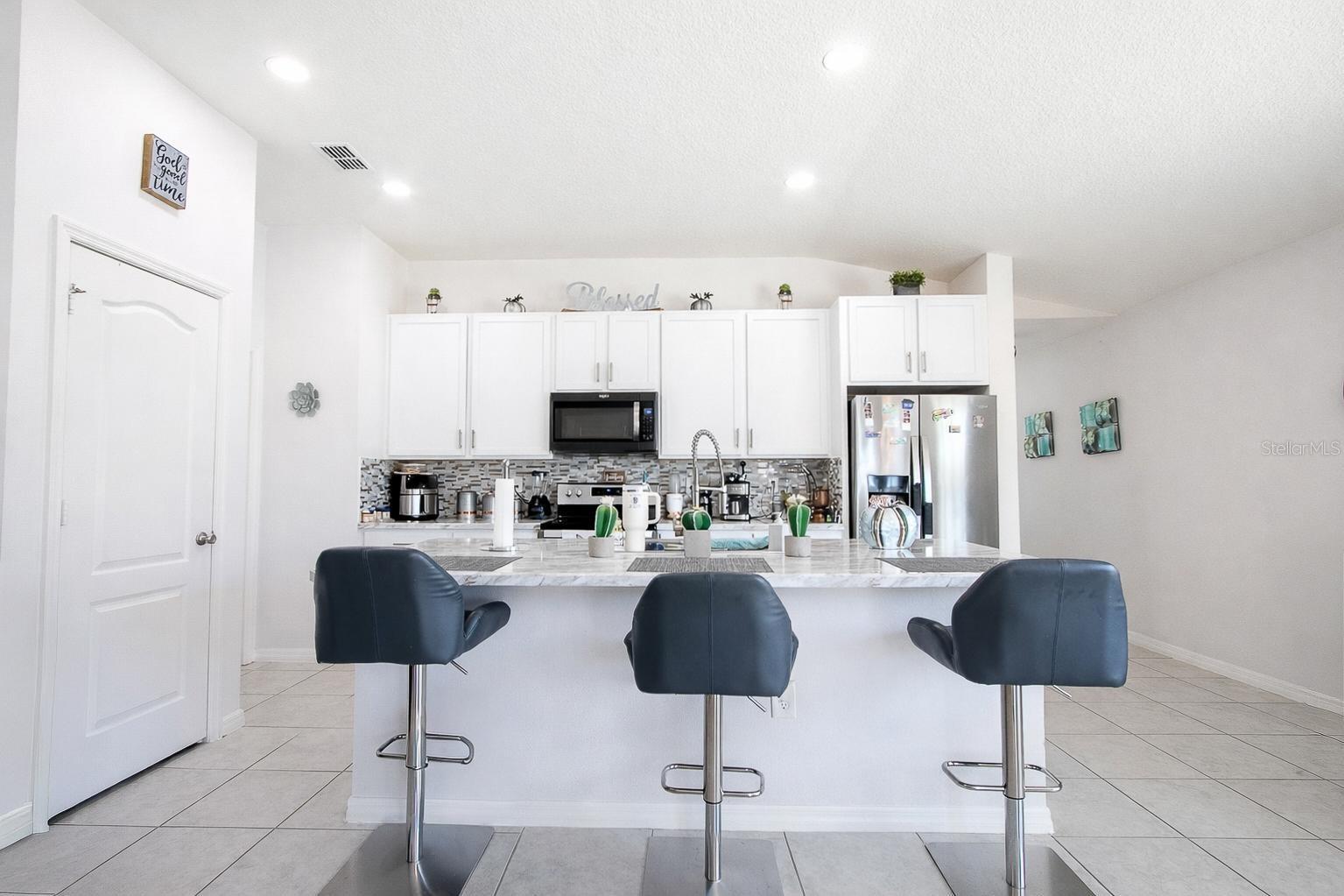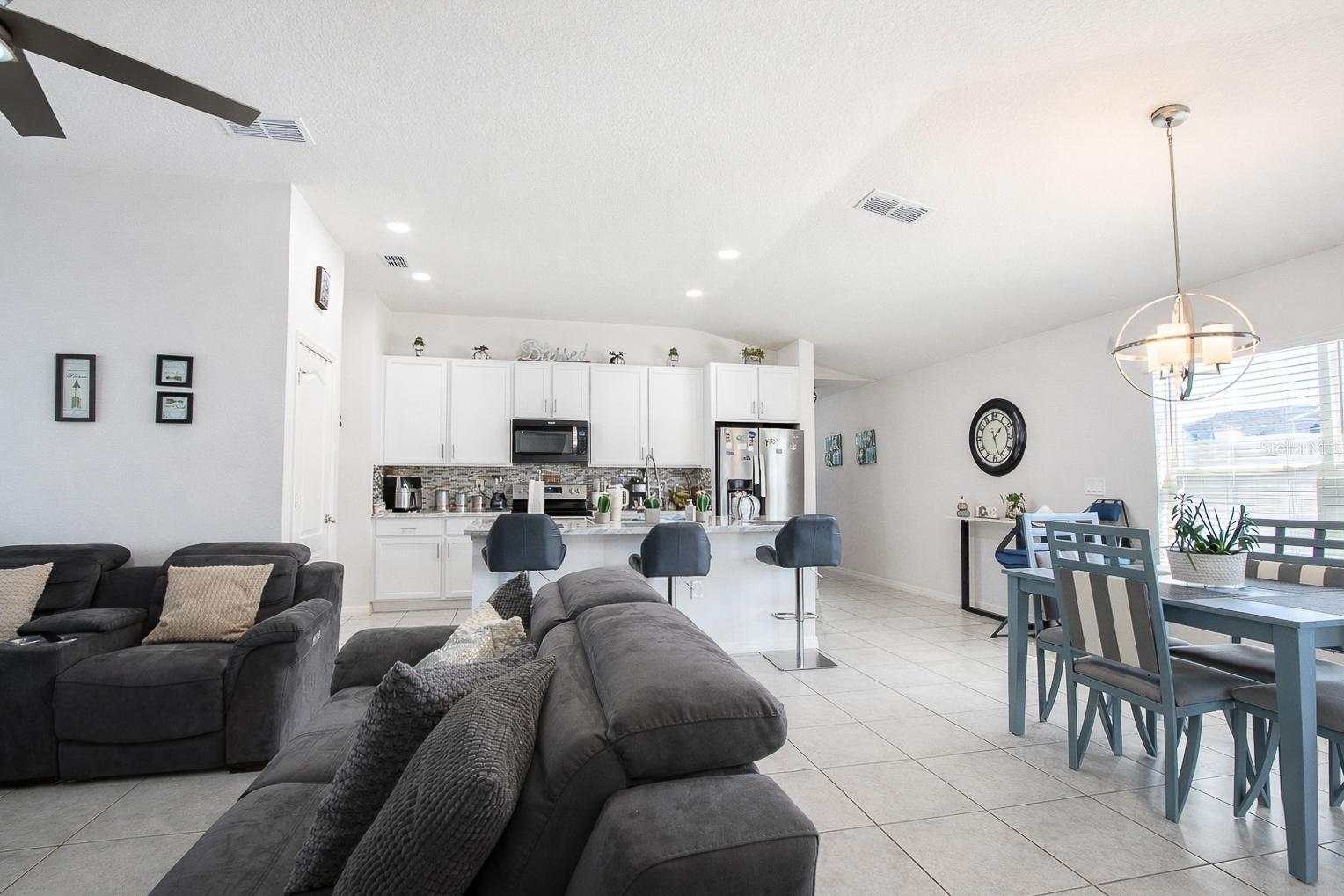 Beautiful 4-bedroom, 2-bathroom home built in 2021 featuring a spacious backyard with serene pond views. This move-in ready property offers a modern open-concept floor plan with comfortable living and dining areas, ideal for everyday living and entertaining. The kitchen provides ample cabinetry, modern finishes, and a functional layout overlooking the main living space. The primary suite includes a private bathroom and walk-in closet, while the other bedrooms add flexibility for family, guests, or a home office. Step outside to enjoy a generously sized backyard with peaceful water views, perfect for relaxing or outdoor gatherings. Enjoy the added convenience and long-term savings of installed solar panels, helping reduce monthly energy costs and increase energy efficiency. A whole-home water softener system is also included, providing enhanced water quality and added comfort throughout the home. Both the solar panels and water softener will convey with the sale, offering valuable upgrades to the next homeowner. Conveniently located near major highways, Lake Nona, shopping, dining, and schools, this home offers both comfort and accessibility in one of Central Florida’s fastest-growing areas. Schedule your private showing today.