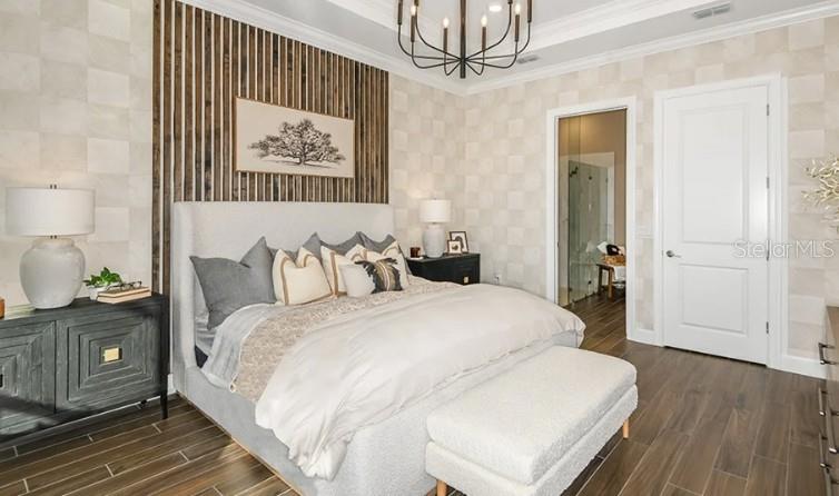 What's Special: Model Home | Water View | Premium Location | Flex Room | Covered Patio | Extended Patio. New Construction - April Completion ! Built by Taylor Morrison, America's Most Trusted Home Builder. Welcome to the Lazio at 936 Arbor Green Trail in Esplanade at Center Lake Ranch! Just off the foyer, you’ll find a welcoming secondary bedroom, full bathroom, and flex room, while the opposite side offers another secondary bedroom with its own private en-suite bath, plus the laundry room and garage entry. At the heart of the home, the dining room opens into a bright, spacious great room that feels warm and inviting. The designer gourmet kitchen features quartz countertops, a large island and overlooks the great room, creating an effortless flow out to the lanai and private pool where you can relax and recharge. The primary suite sits quietly at the back of the home with a lovely bay window, a soothing en-suite bath, and a generous walk-in closet. This thoughtful layout gives you comfort, versatility, and a beautiful space to enjoy each day. Additional Highlights Include: Gourmet kitchen, bay window at primary suite, extended covered lanai, private pool, 10' ceilings, tray ceiling at great room and primary suite, 8' interior doors, 4' garage extension, GE refrigerator, and washer and dryer. MLS#O6382286 Experience resort-style living in St. Cloud, Florida, at Esplanade within the gated Center Lake Ranch community. With homes offering stunning nature and pond views, every detail is designed for peace and relaxation. Enjoy wellness-focused amenities like a pool, spa, fitness center, and movement studio. Stay active with pickleball, bocce, or strolls through the Bark Park, while concierge services and community events keep life exciting. With planned trails, parks, and an 11-acre Central Park, Esplanade offers a serene, nature-filled lifestyle with easy access to major roads.