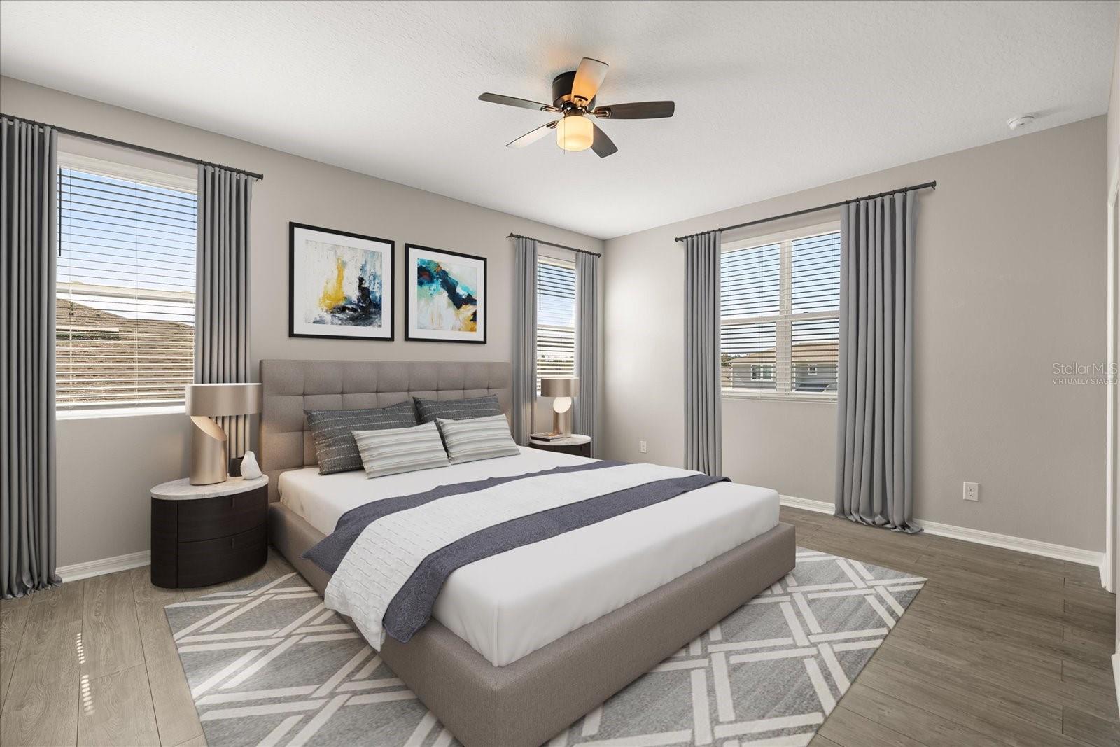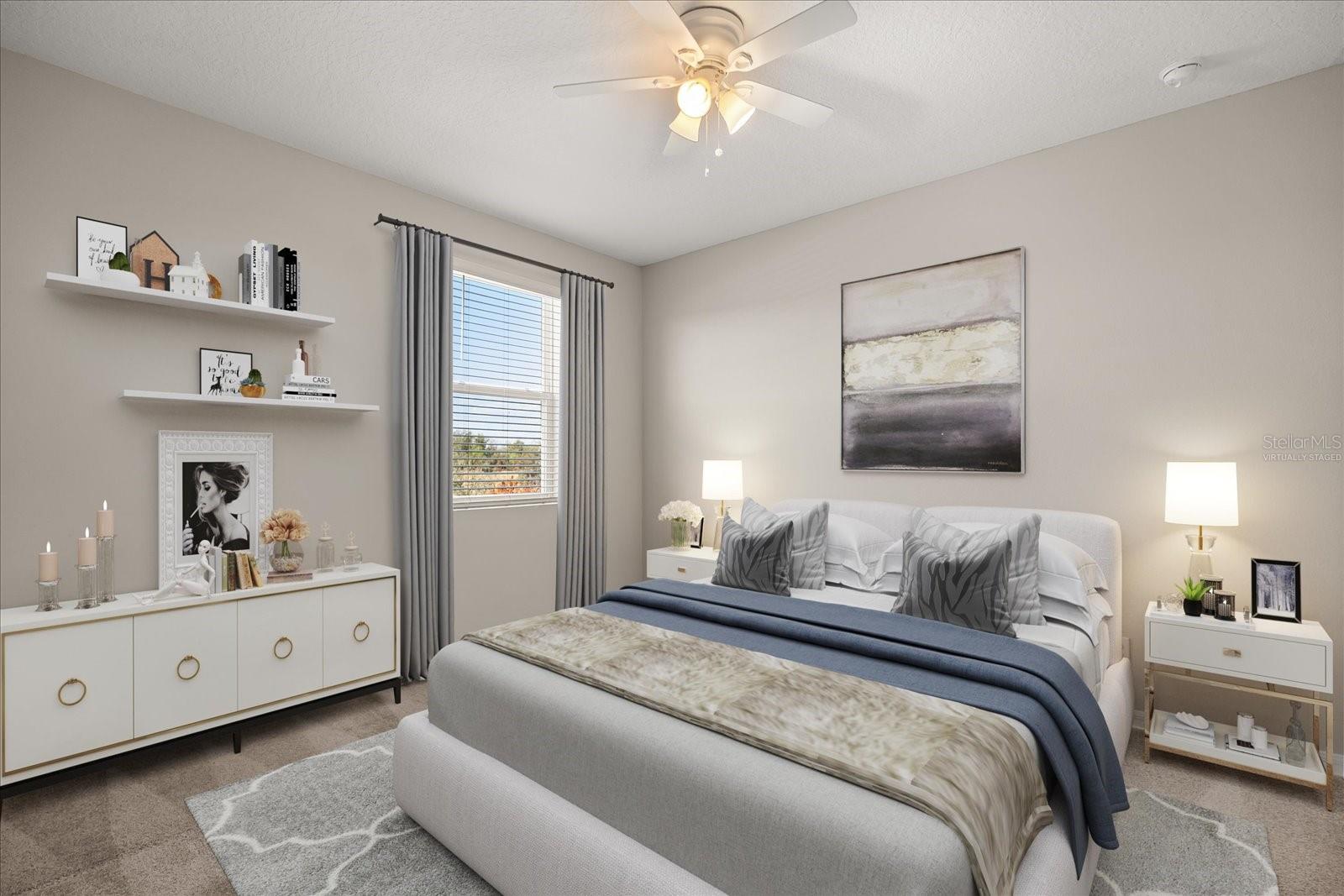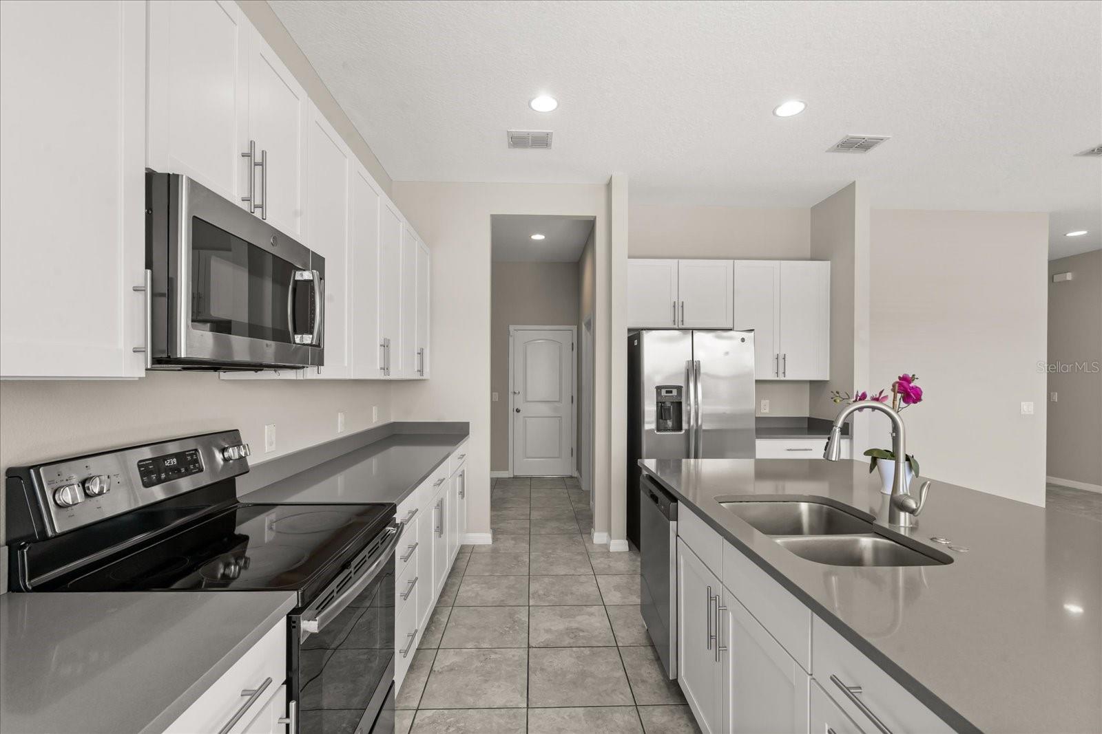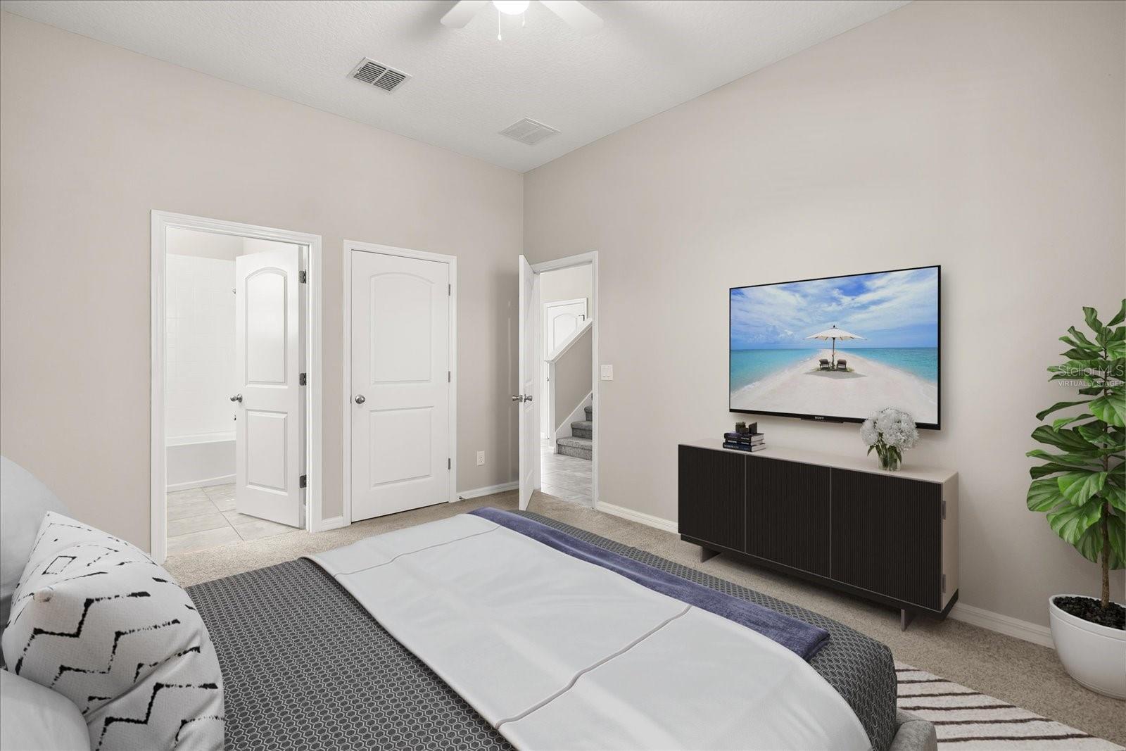 One or more photo(s) has been virtually staged. Welcome to this stunning move in ready two-story home nestled in on of St Cloud's most exciting and rapidly growing neighborhoods. This beautiful 4-bedroom, 2 ½-bathroom residence offers the perfect blend of modern living and unbelievable convenience along with a community pool. Step inside to discover an expansive kitchen that flows seamlessly into the dining and living areas, creating an inviting open-concept layout ideal for entertaining. The kitchen boasts a generous center island with a breakfast bar, gorgeous quartz counter tops, and thoughtful touches like slide-out lower shelving for effortless access. Storage is never an issue with both a spacious walk-in pantry and an additional closet pantry. All appliances are included. The main-level bedroom features its own full en-suite bathroom and a walk-in closet – perfect for guests or multi-generational living. Upstairs the master bedroom retreat includes a walk-in closet and a well-appointed bathroom with dual sinks and a linen closet. The laundry room is conveniently placed between bedrooms and well proportioned. A vibrant lifestyle and community awaits just outside the front door. This new and highly desirable location on the east side of St Cloud is located minutes from the active downtown St Cloud scene, the popular waterfront park and Crabby Bills restaurant on East Lake Tohopekaliga that offers a variety of recreational activities and a sandy beach area. This home's location is minutes to the exciting town of Lake Nona known for its medical city hub and 40+ miles of trails. In under one hour you can be in Melbourne Beach, Cocoa Beach or Disney World. Come see for yourself !