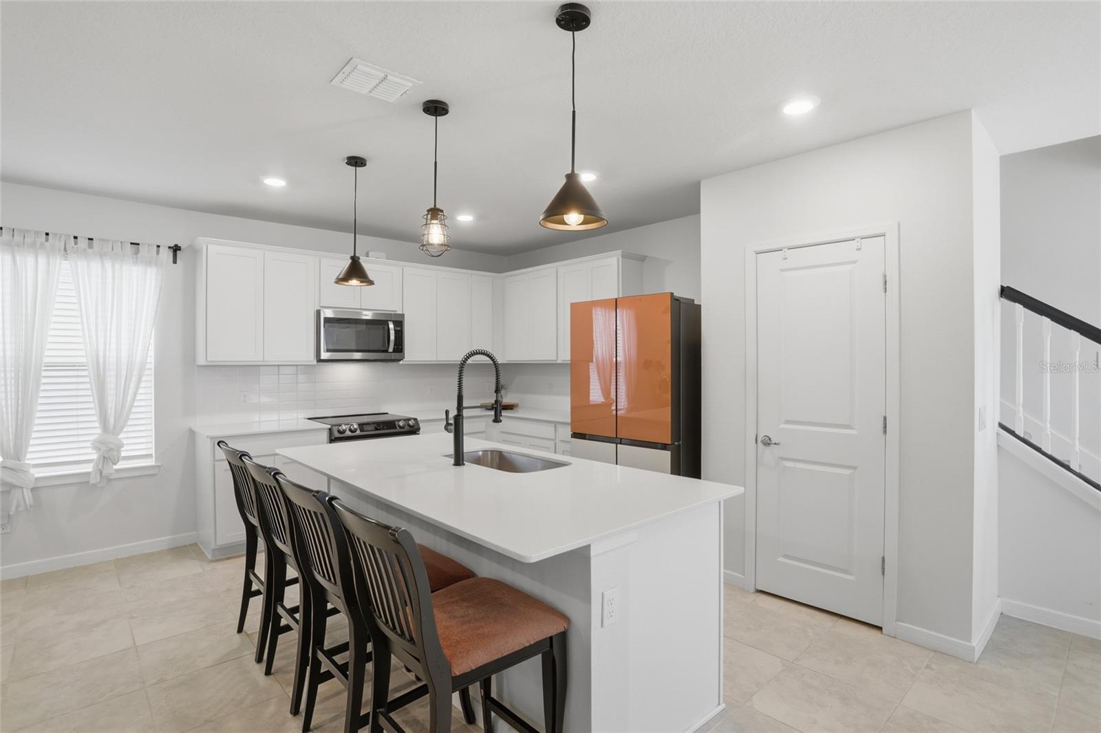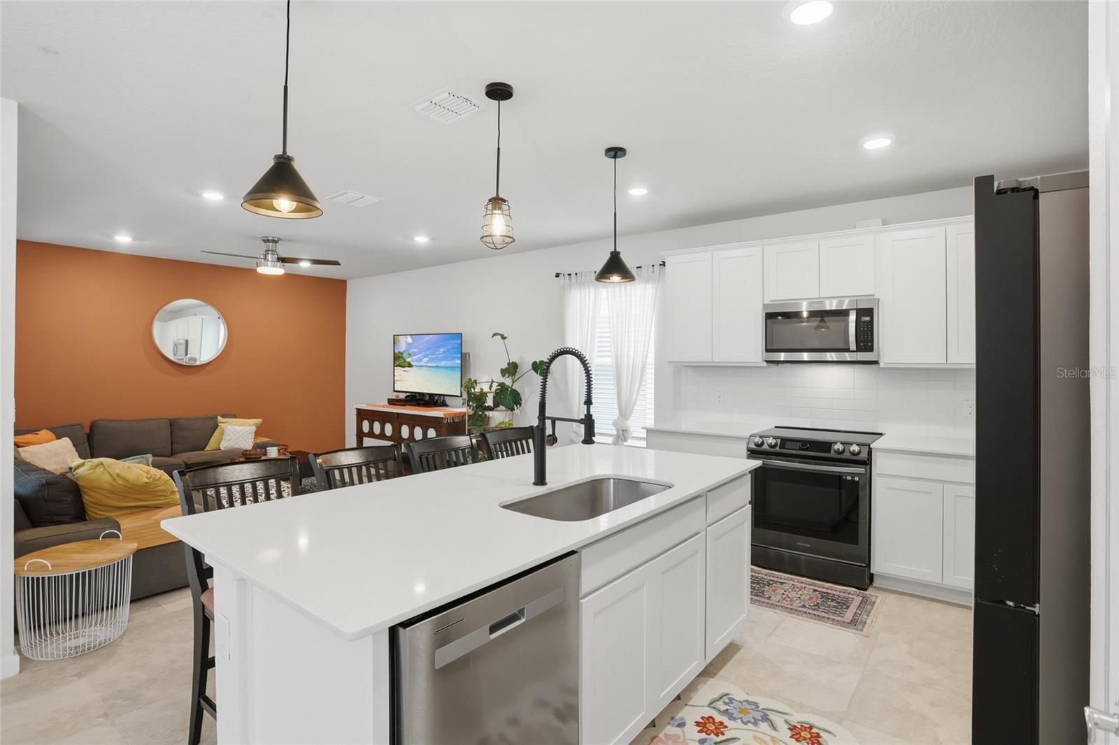 Welcome to this beautifully upgraded 4-bedroom, 3-bathroom home located on a desirable corner lot in St. Cloud! Just steps from the neighborhood pool, this home combines modern style, thoughtful upgrades, and everyday convenience. Inside, you'll find quartz countertops throughout the home, a spacious open layout, and walk-in closets in every bedroom, including a large walk-in closet in the primary suite. The kitchen features upgraded Samsung Bespoke appliances including the refrigerator and oven, creating a sleek and modern centerpiece for the home. The primary bathroom offers a spa-like feel with heavy glass shower doors, while the Whirlpool washer and dryer are included for added convenience. All windows come equipped with blinds, making this home truly move-in ready. Enjoy Florida living year-round on the screened-in porch, and appreciate practical upgrades like gutters, an extended two-car garage, and a Ring security system with cameras already installed. The 3/4 glass paneled front door provides beautiful natural light and welcoming curb appeal. The low HOA includes fiber optic internet and cable, offering exceptional value while keeping you connected. Located in a growing area of St. Cloud, this home offers comfort, style, and convenience all in one. Schedule your private showing today!
